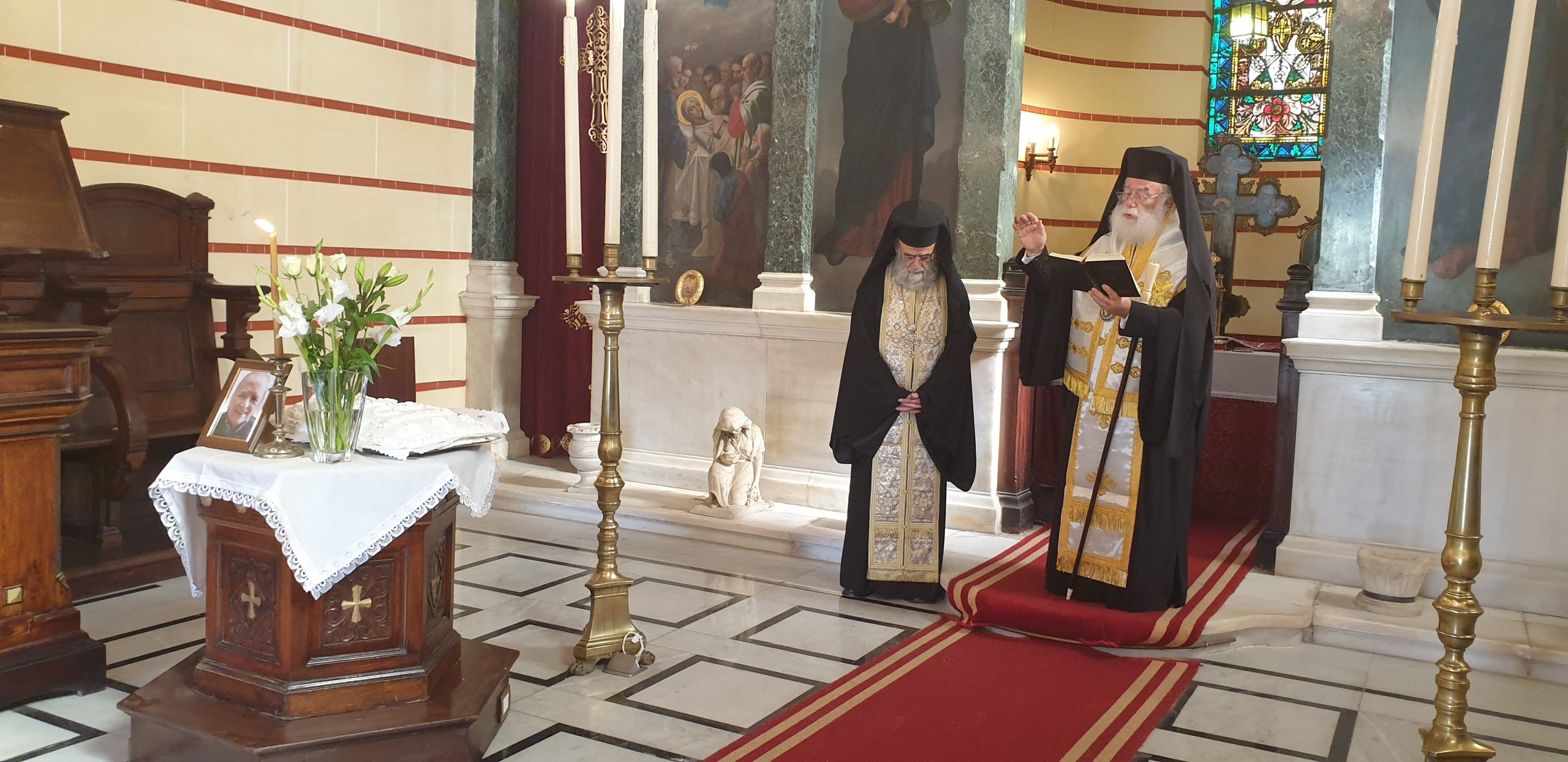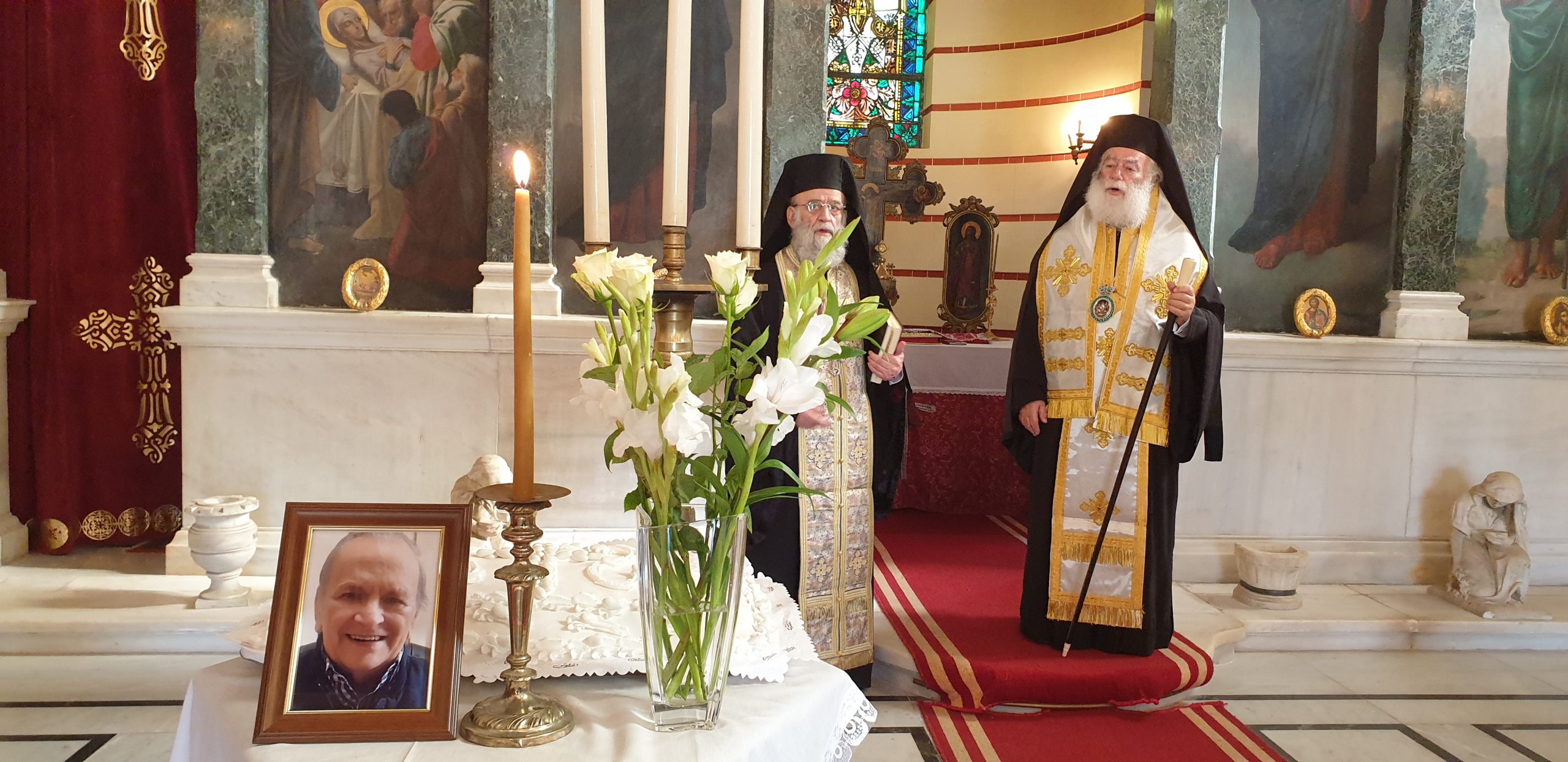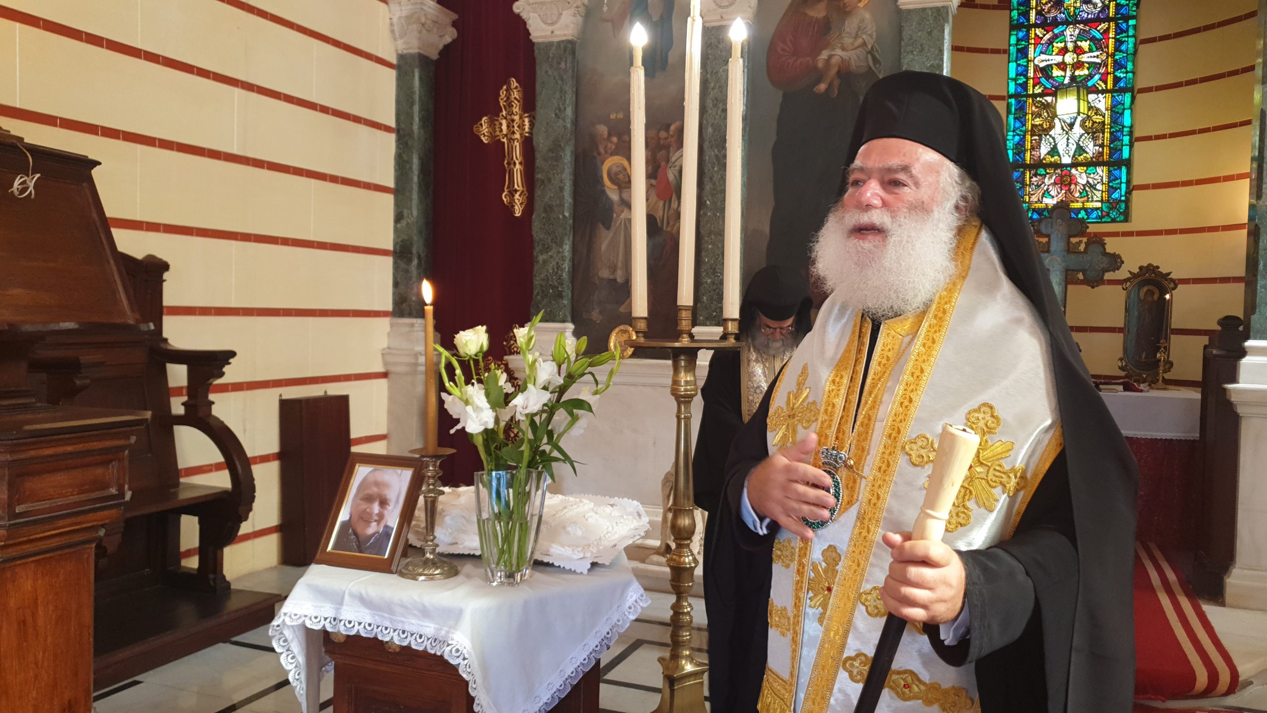 Σε κλίμα συγκίνησης, ο Αλεξανδρινός Προκαθήμενος μίλησε για τη μεγάλη αγάπη του αξέχαστου Γεωργίου Σιόκα για την παροικία, αλλά και για την αγάπη του για το Πατριαρχείο Αλεξανδρείας και ειδικότερα για τον Άγιο Σάββα, όπου πάντοτε εκείνος προσέφερε τα λουλούδια που στόλιζαν τον σεπτό Επιτάφιο του ιστορικού μοναστηριού, κάθε Μ. Παρασκευή, τα οποία άνθη ο Πατριάρχης ευχήθηκε πάντοτε να τον ακολουθούν σε αυτό το μεγάλο του ταξίδι…