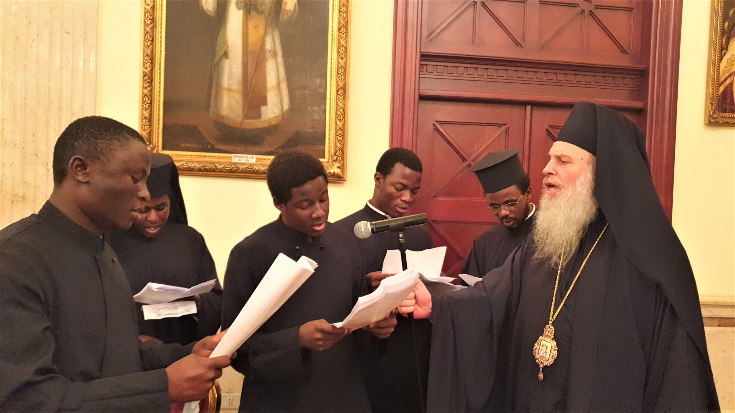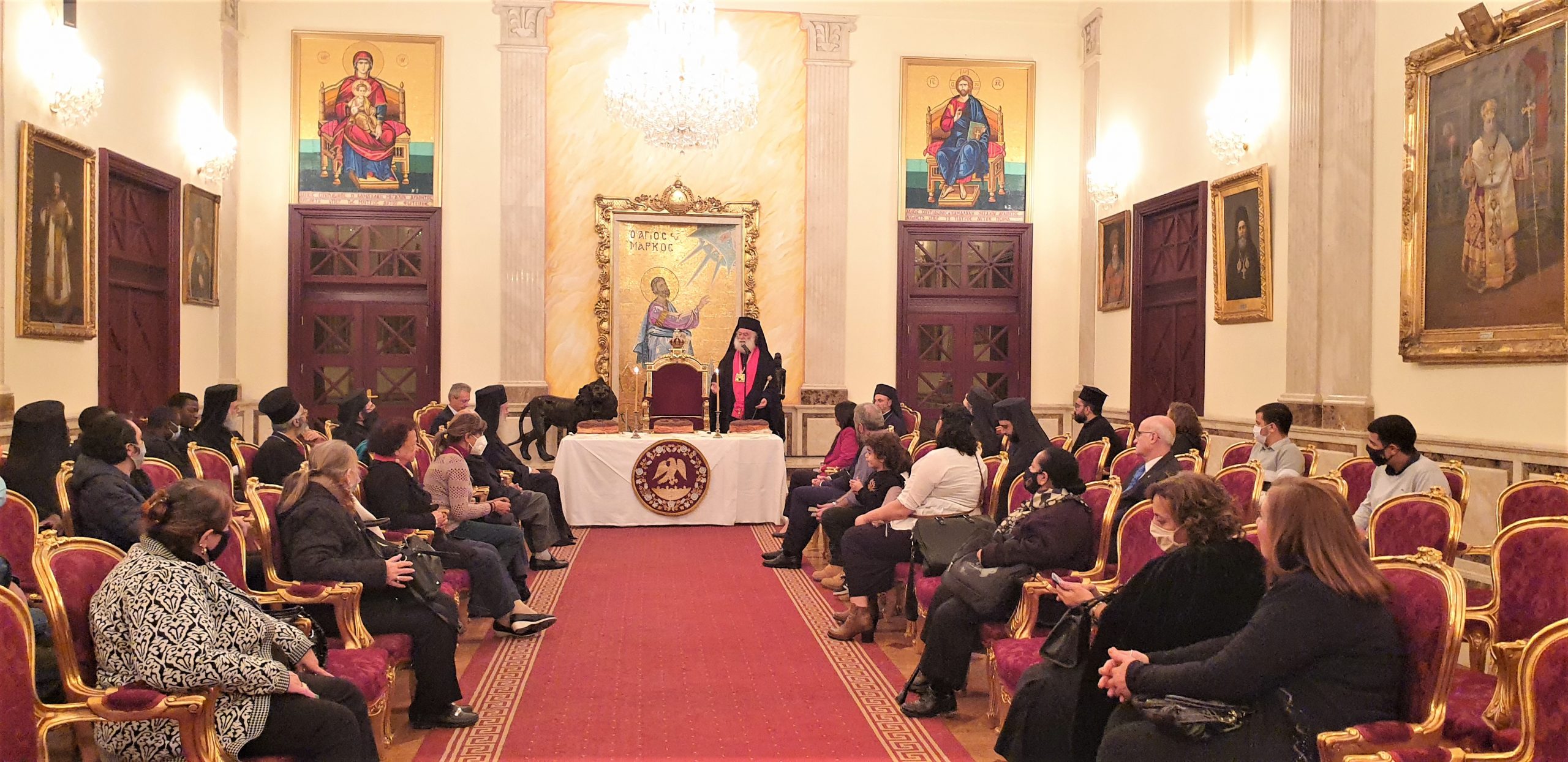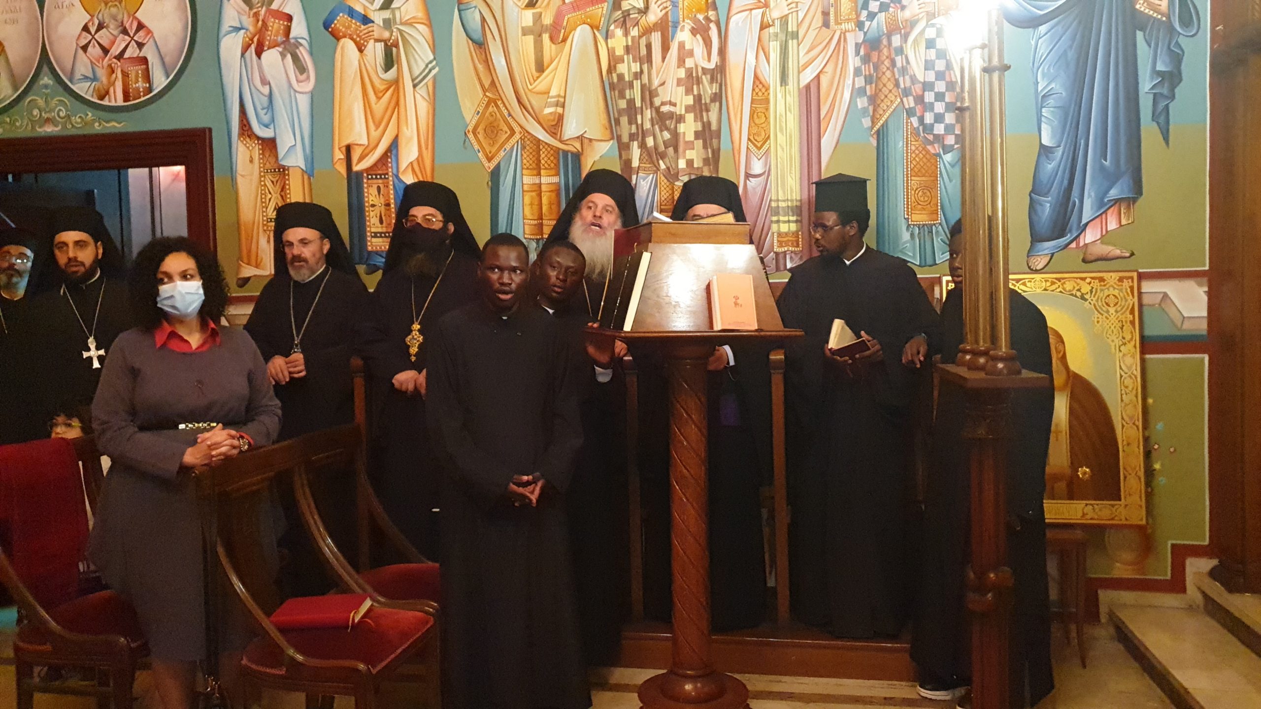 Με ύμνους αλλά και πρωτοχρονιάτικες μελωδίες στα ελληνικά, αραβικά, αγγλικά, σουαχίλι και αφρικάνικα, οι ιερείς και οι ιεράρχες του Πατριαρχείου Αλεξανδρείας, από κοινού με τους αφρικανούς ιεροσπουδαστές, ευχήθηκαν στον Προκαθήμενο της Ορθόδοξης Εκκλησίας της Αφρικής κ.κ. Θεόδωρο Β΄, για το νέο έτος 2021, στην έδρα του Δευτερόθρονου Πατριαρχείου της Ορθοδοξίας, στην Αλεξάνδρεια , κατά την παραμονή της Πρωτοχρονιάς για την έλευση του νέου έτους.