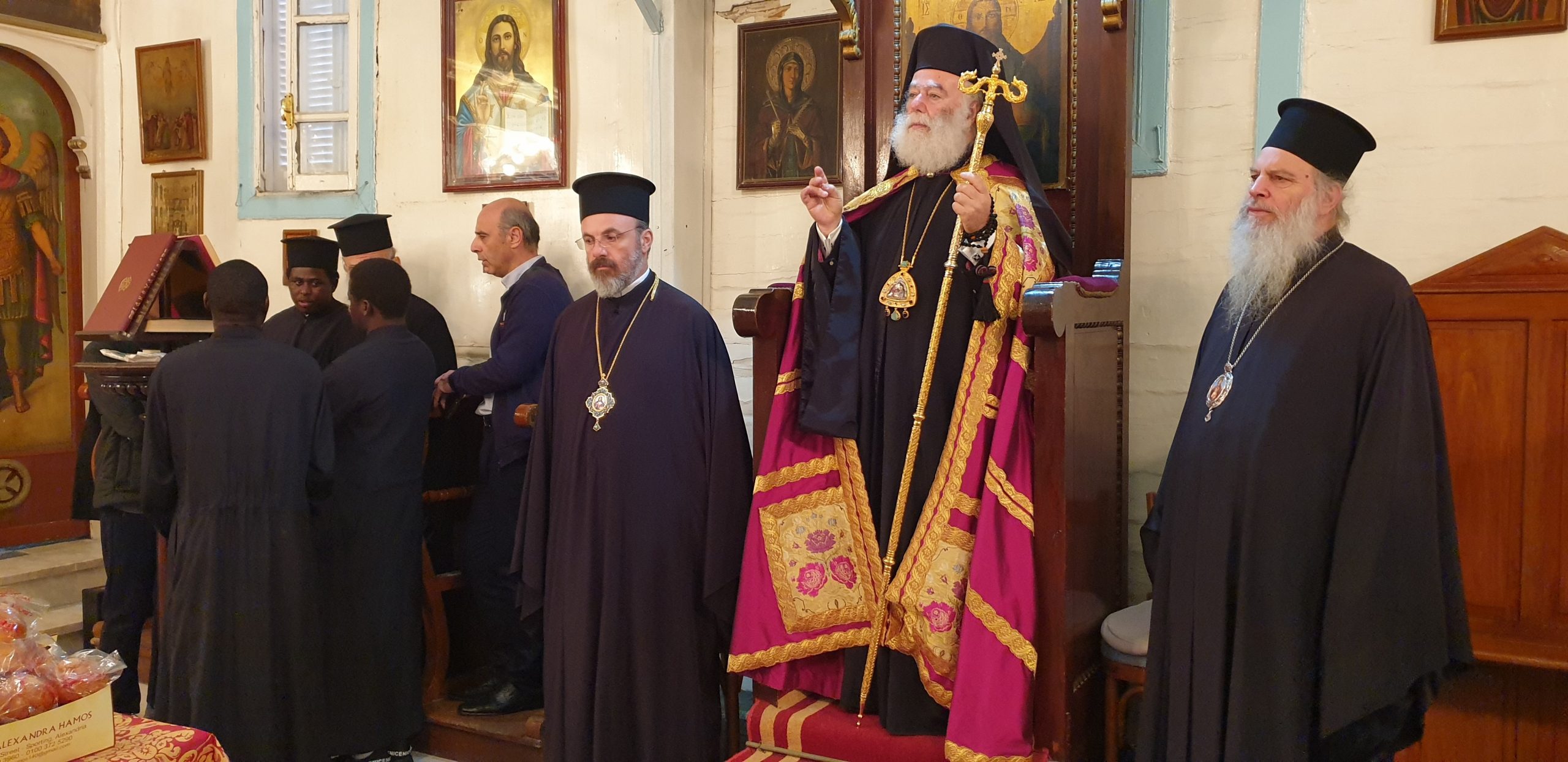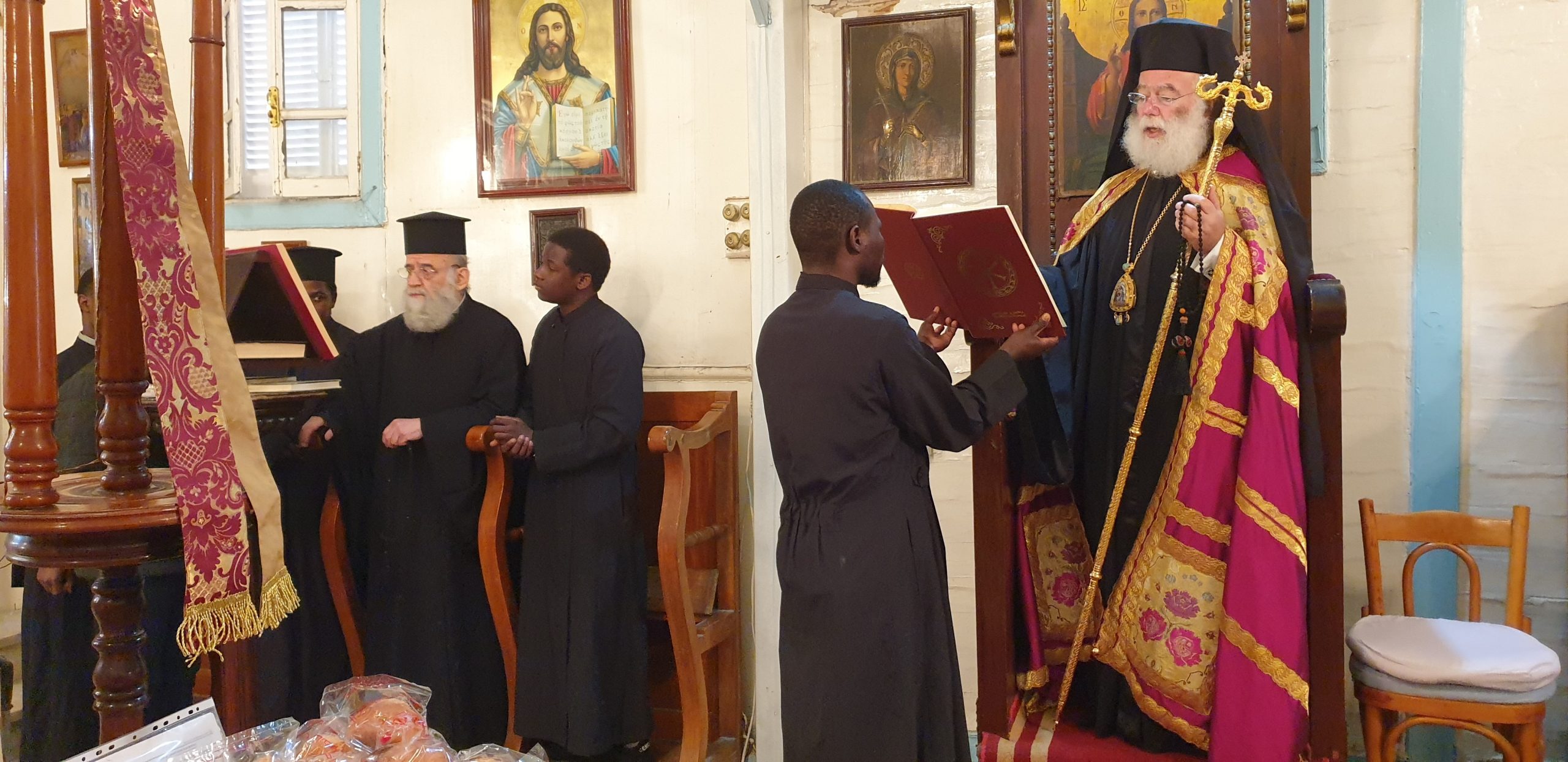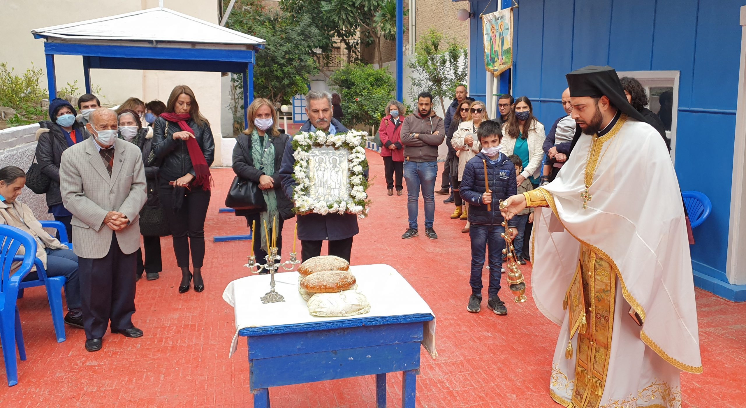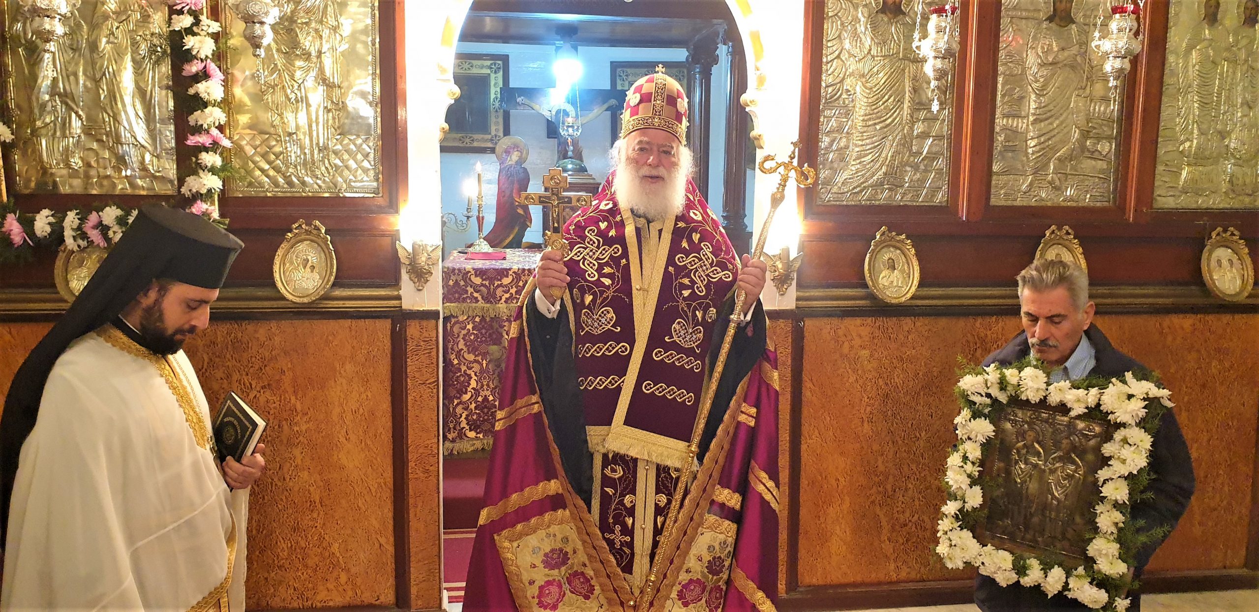 Εξάλλου, παρουσία του Πατριαρχικού Επιτρόπου Αλεξανδρείας Μητροπολίτου Ναυκράτιδος κ. Νάρκισσου και του Επισκόπου Ταμιάθεως κ. Γερμανού, εκφράζοντας την προσωπική του ευγνωμοσύνης στους δύο θαυματουργούς Αγίους, ο Πατριάρχης Θεόδωρος προσέφερε το πετραχήλι του στο ναό.