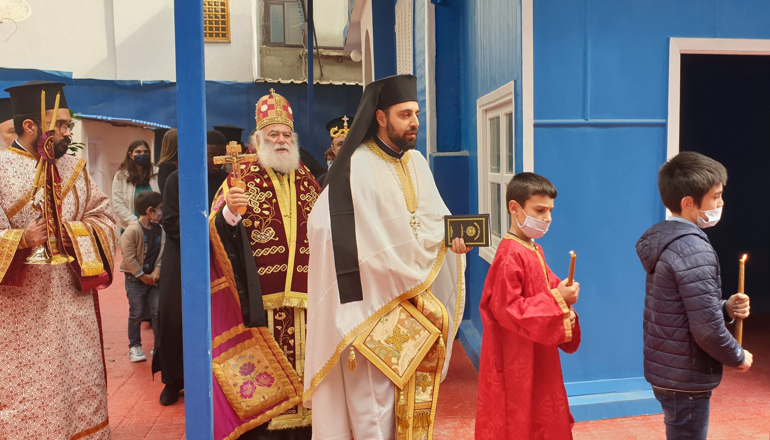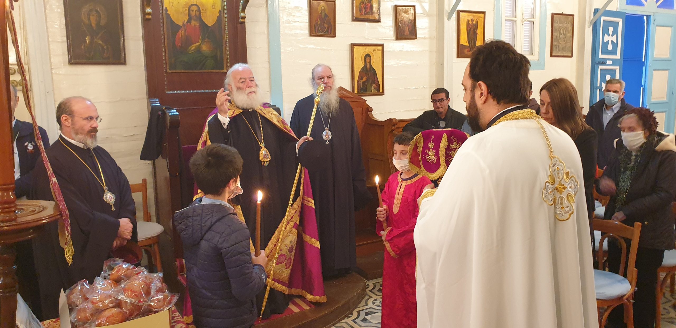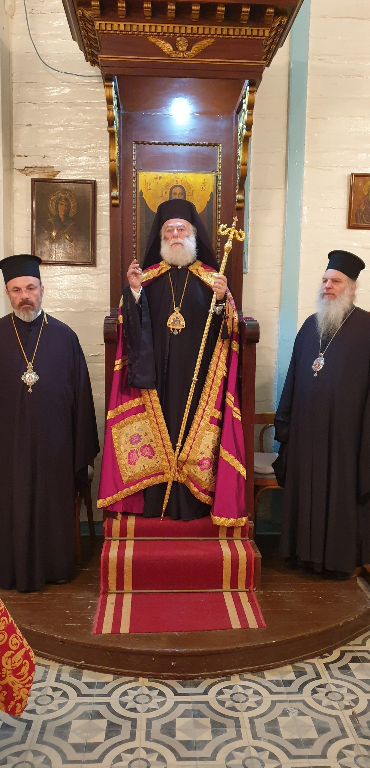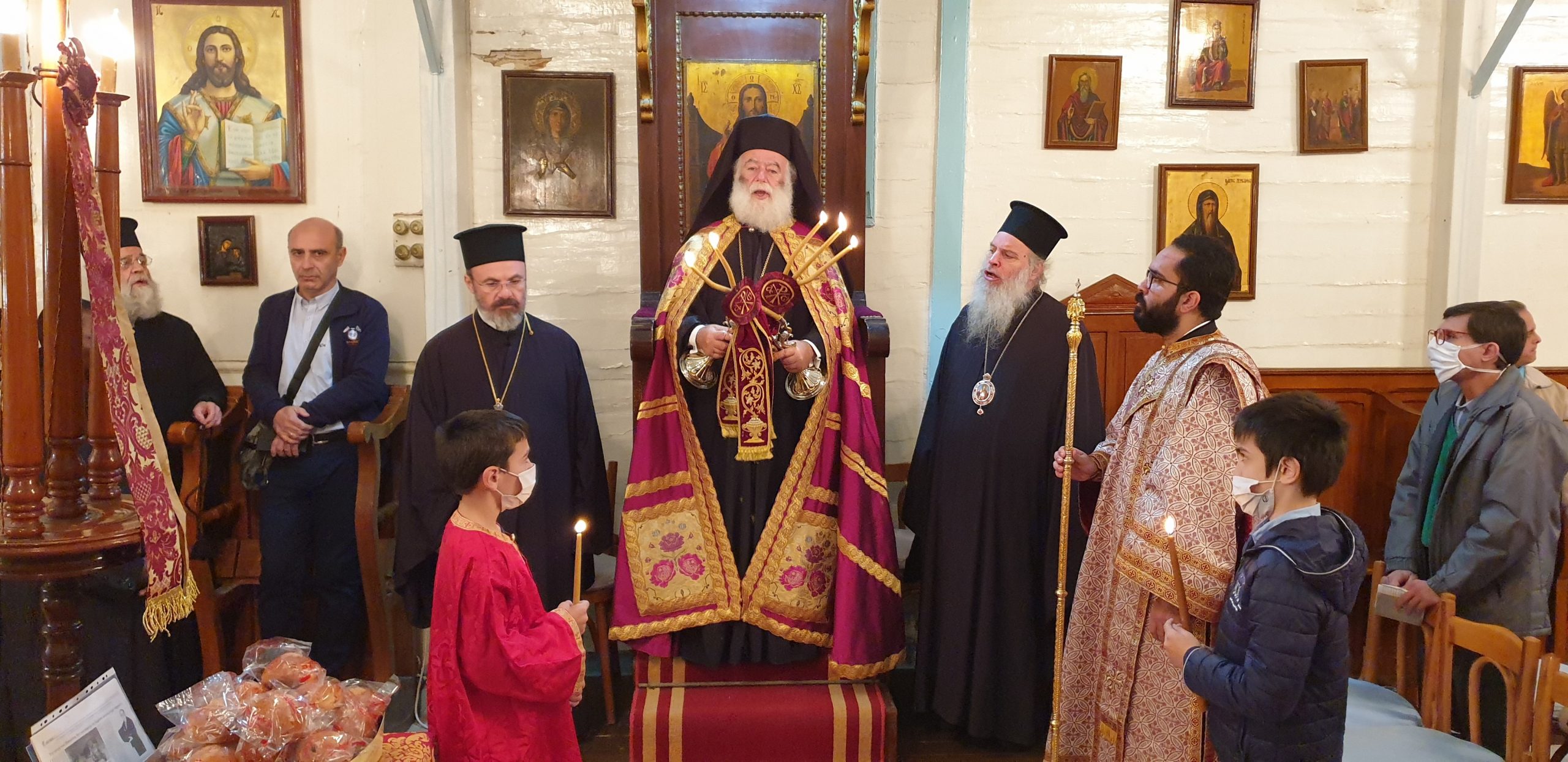 Εξάλλου, παρουσία του Πατριαρχικού Επιτρόπου Αλεξανδρείας Μητροπολίτου Ναυκράτιδος κ. Νάρκισσου και του Επισκόπου Ταμιάθεως κ. Γερμανού, εκφράζοντας την προσωπική του ευγνωμοσύνης στους δύο θαυματουργούς Αγίους, ο Πατριάρχης Θεόδωρος προσέφερε το πετραχήλι του στο ναό.