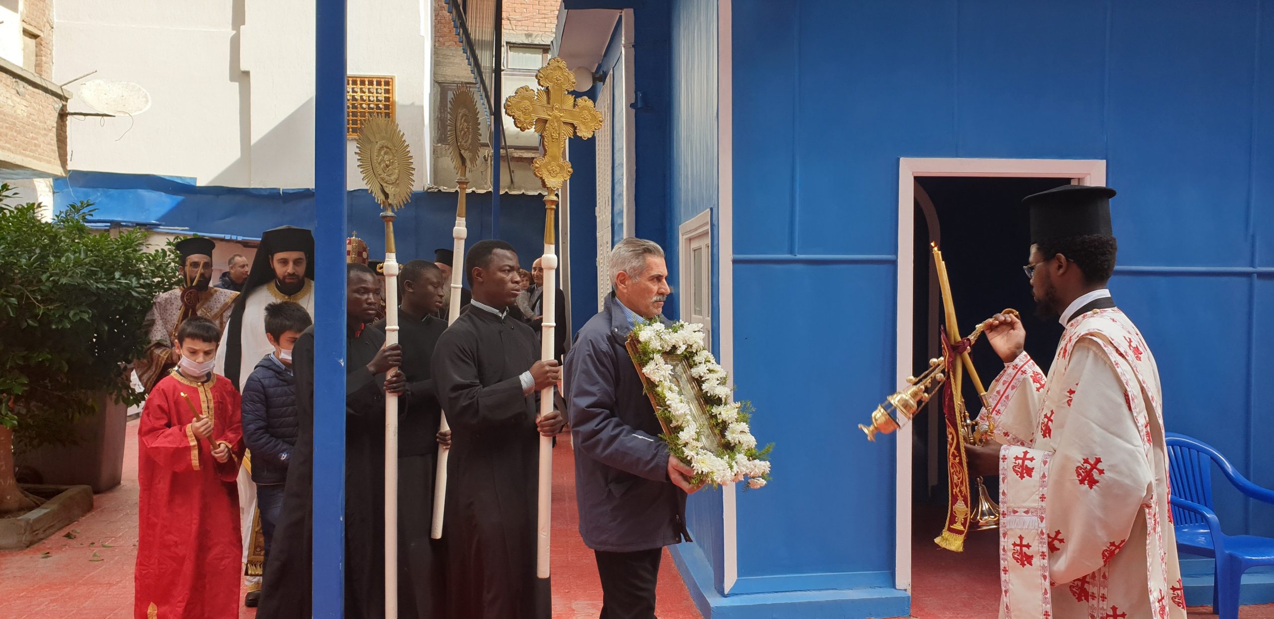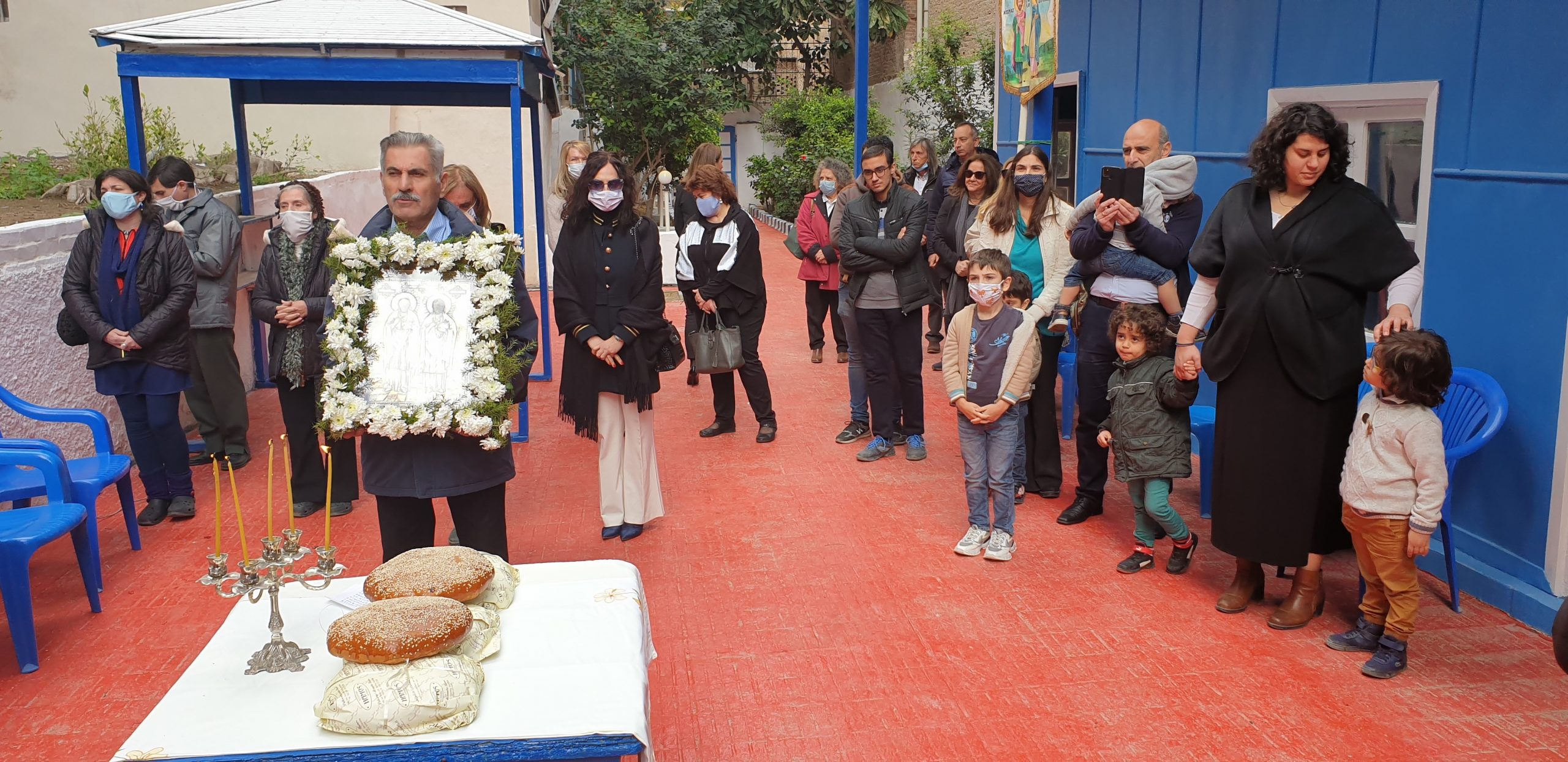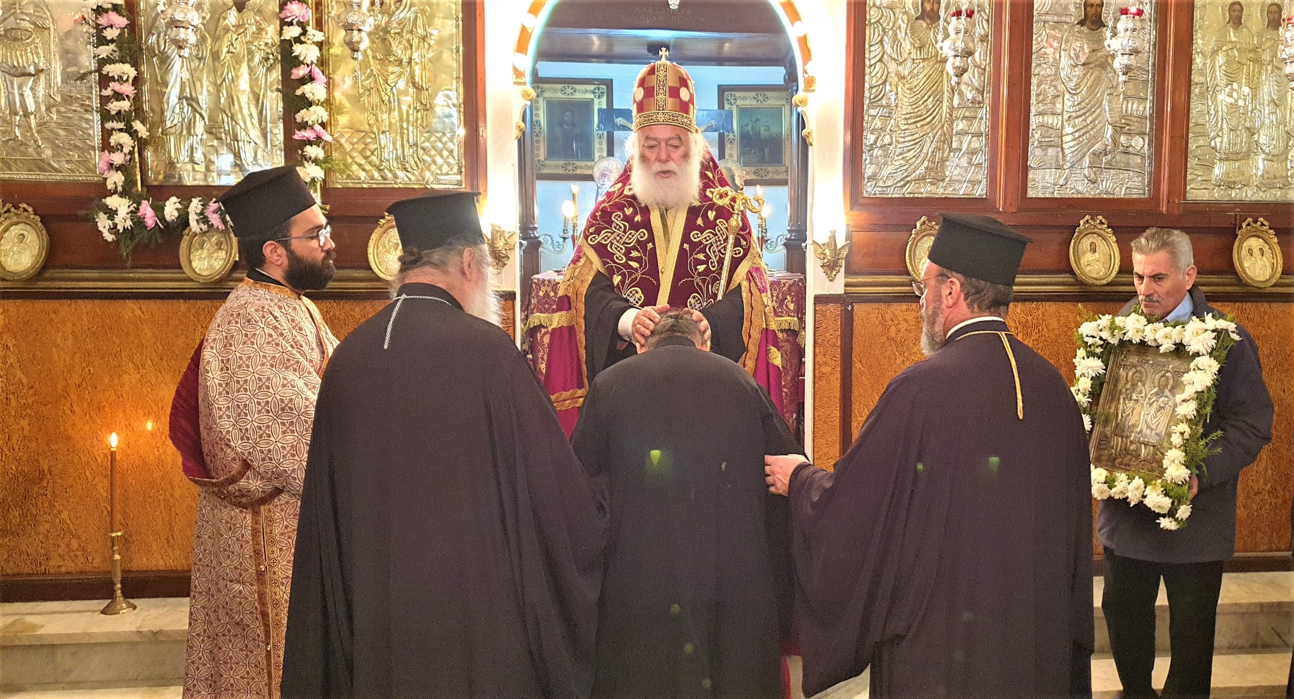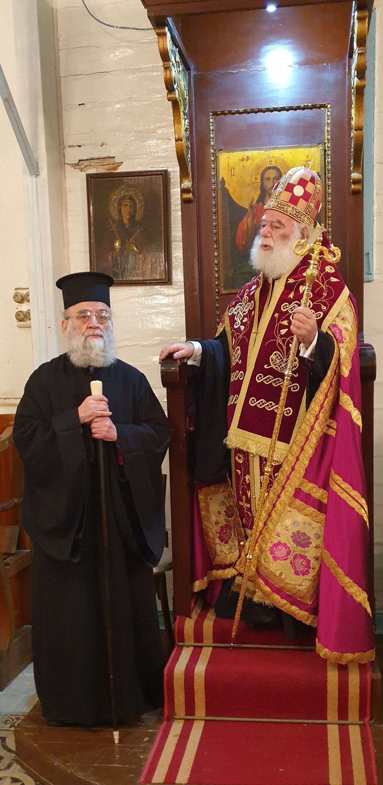 Εξάλλου, παρουσία του Πατριαρχικού Επιτρόπου Αλεξανδρείας Μητροπολίτου Ναυκράτιδος κ. Νάρκισσου και του Επισκόπου Ταμιάθεως κ. Γερμανού, εκφράζοντας την προσωπική του ευγνωμοσύνης στους δύο θαυματουργούς Αγίους, ο Πατριάρχης Θεόδωρος προσέφερε το πετραχήλι του στο ναό.