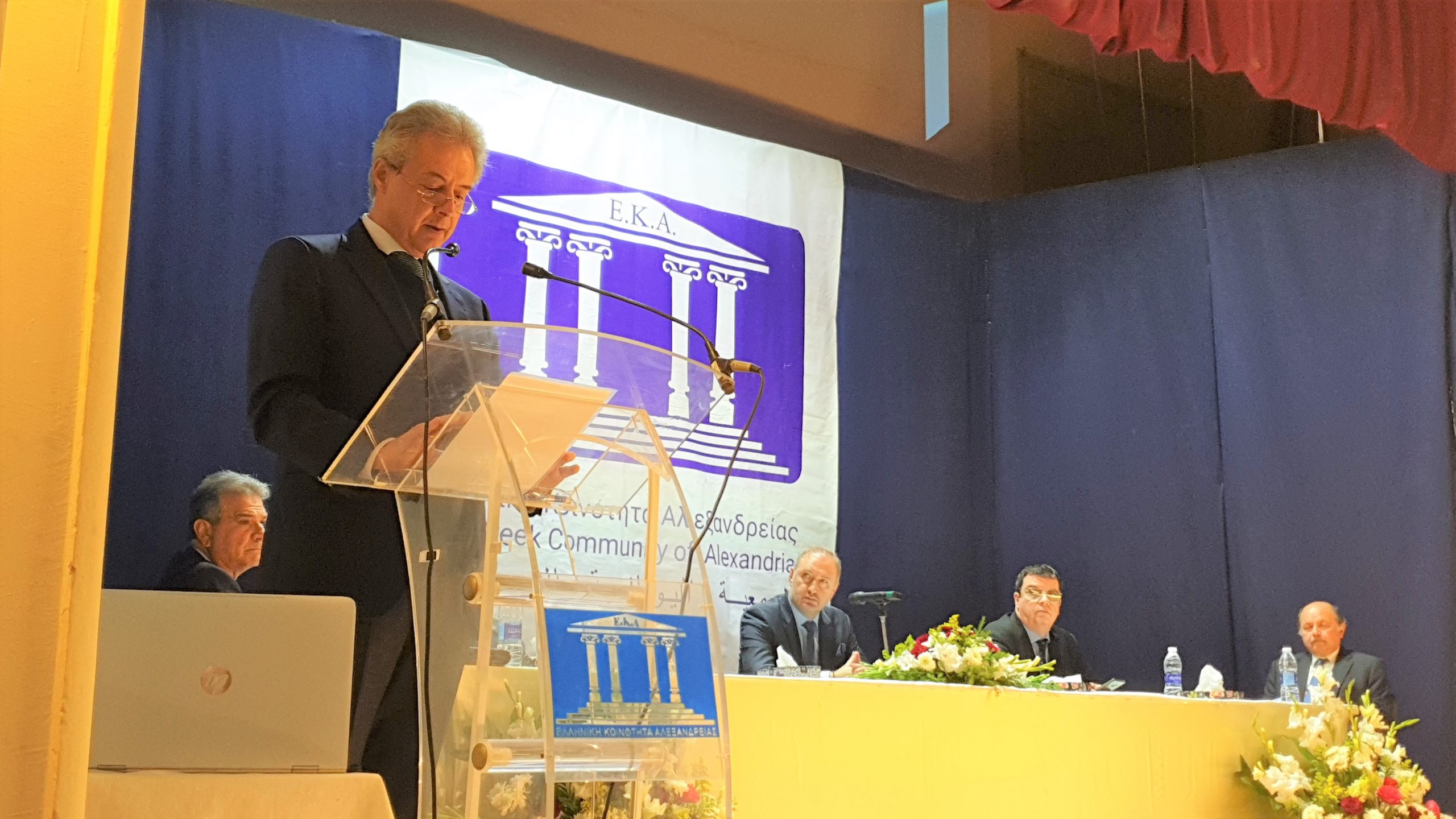 Σας ευχαριστώ πολύ για την πρόσκληση να απευθύνω χαιρετισμό στην Ετήσια Γενική Συνέλευση της Ελληνικής Κοινότητας Αλεξανδρείας, ένα σημαντικό γεγονός, τόσο για τα μέλη της, όσο και για τους φίλους και υποστηρικτές που παρακολουθούν το πολυσχιδές έργο της. Θα ήθελα να σας διαβεβαιώσω ότι στους προαναφερθέντες συγκαταλέγω και τον εαυτό μου. Η Κοινότητά σας αποτελεί σημείο αναφοράς για τον Ελληνισμό και παρά τη σταδιακή συρρίκνωσή της, σε πείσμα των καιρών, παραμένει στις επάλξεις.