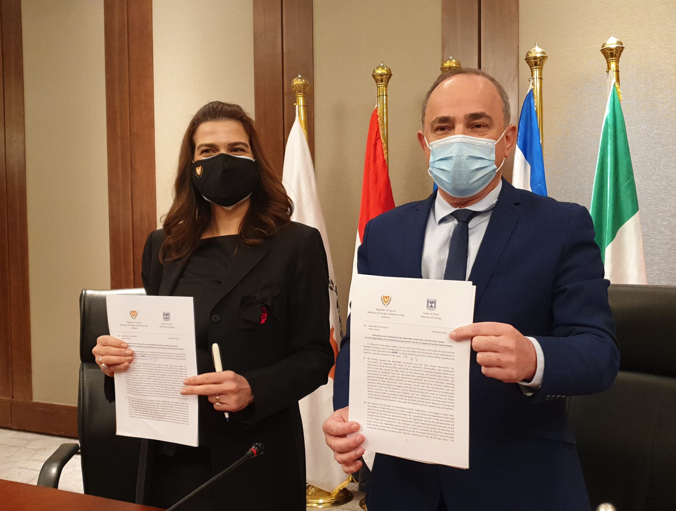 Τέλος, μετά από εννέα χρόνια συζητήσεων, υπεγράφη σήμερα στο Κάιρο και αυτό, η επιστολή από την Υπουργό κα Πηλείδου και τον Ισραηλινό ομόλογό της Γιούβαν για το θέμα του κοιτάσματος Αφροδίτη και Ισάι. Η Υπουργός ανέφερε ότι η σημασία του θέματος αυτού για την Κύπρο και το Ισραήλ είναι πολύ μεγάλη, καθώς επιβεβαιώνει την πάρα πολύ καλή συνεργασία που έχουν οι δύο χώρες, τη βούληση για την εμβάθυνση της συνεργασίας αυτής τόσο στα ενεργειακά θέματα όσο και σε άλλα θέματα, όπως επίσης επιλύει ένα θέμα το οποίο εδώ και αρκετά χρόνια ήταν ένα θέμα συζήτησης. Επομένως, ανοίγει τον δρόμο για να προχωρήσουμε πλέον σε μία πρακτική λύση η οποία να ανοίγει τον δρόμο ακόμη περισσότερο για την αξιοποίηση του φυσικού πλούτου της Κύπρου.