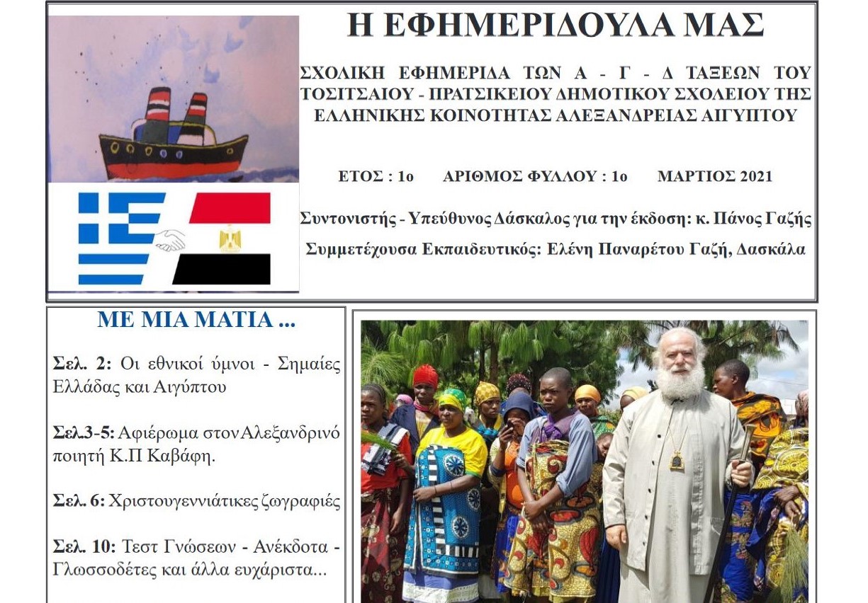 Στο πρώτο φύλλο της “Εφημεριδούλας” τους, της δημοσιογραφικής πρωτοβουλίας με τους πιο μικρούς σε ηλικία δημοσιογράφους σε όλον τον Αιγυπτιώτη Ελληνισμό – οι μαθητές του Τοσίτσαιου – Πρατσίκειου προκαλούν έκπληξη με τις εύστοχες ερωτήσεις τους: «Μακαριώτατε, όταν ήσασταν παιδί, τί θέλατε να γίνετε όταν μεγαλώσετε;», «Ήσασταν καλός μαθητής;», «Θέλατε να γίνετε Πατριάρχης;», «Τί δουλειά κάνετε ως Πατριάρχης;» και άλλες ιδιαίτερα αποκαλυπτικές ερωτήσεις, με τον Μακαριώτατο Πατριάρχη Αλεξανδρείας με μοιράζεται με τα παιδιά τις σκέψεις του και ένα μέρος από τη ζωή του.