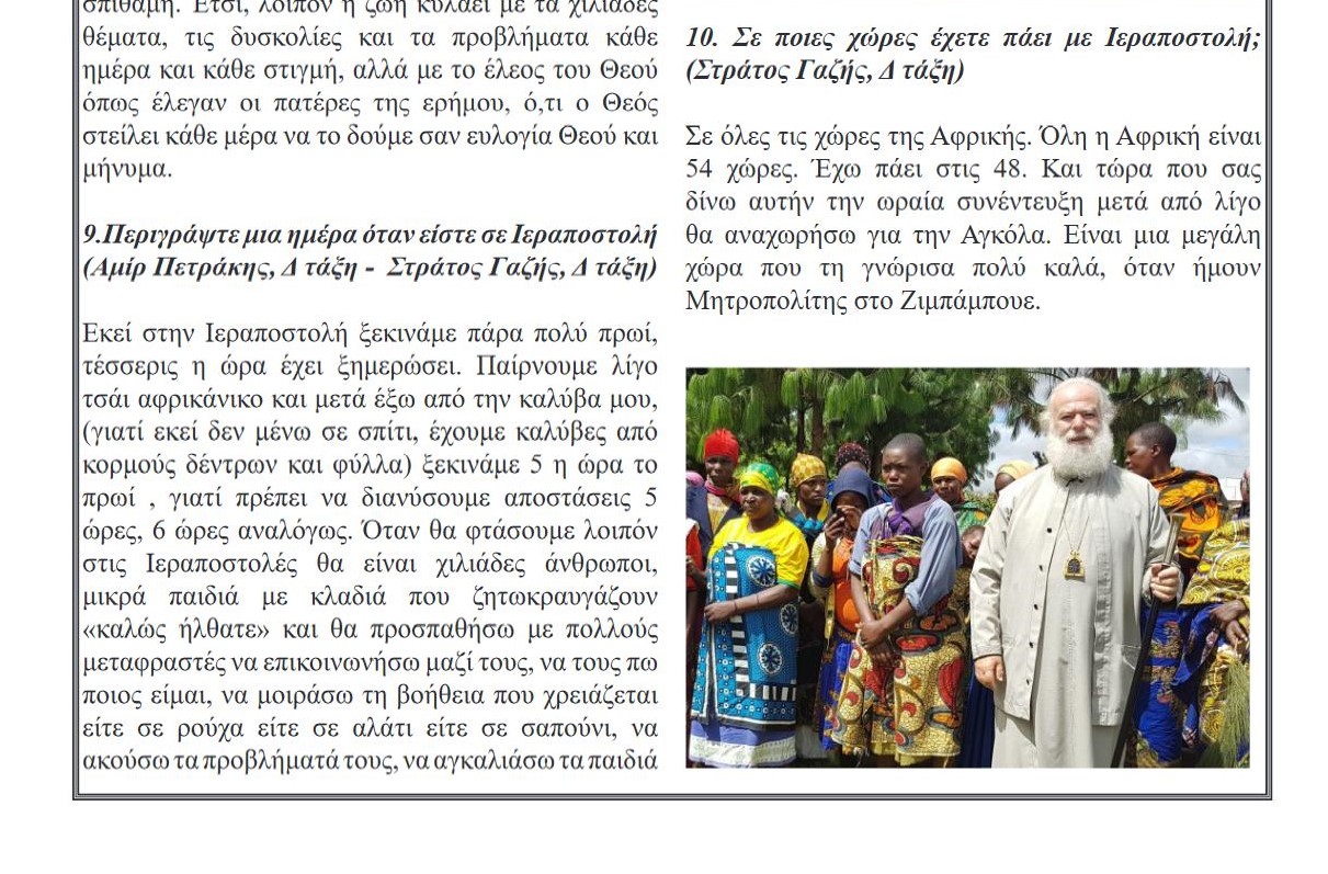 ΕΡΩΤΗΣΗ (Στράτος Γαζής, Δ τάξη): Σε ποιες χώρες έχετε πάει με Ιεραποστολή;