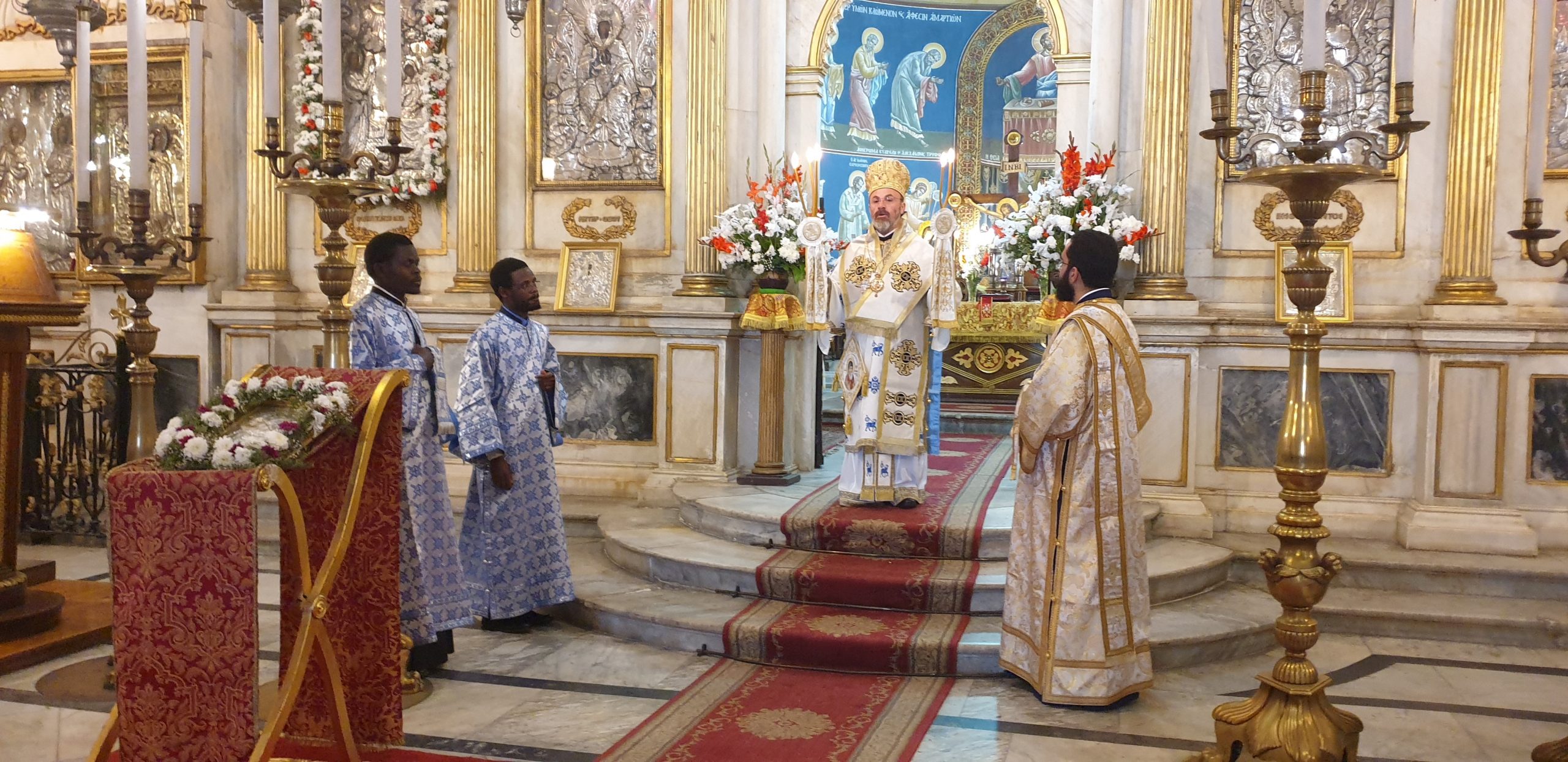 Ορθοδοξία, εκ μέρους της οποίας, μετέφερε τις πατρικές ευχές του Μακαριωτάτου Πατριάρχου Αλεξανδρείας και πάσης Αφρικής κ.κ. Θεοδώρου, παρουσία του Επισκόπου Ταμιάθεως κ. Γερμανού και του ιερού κλήρου.