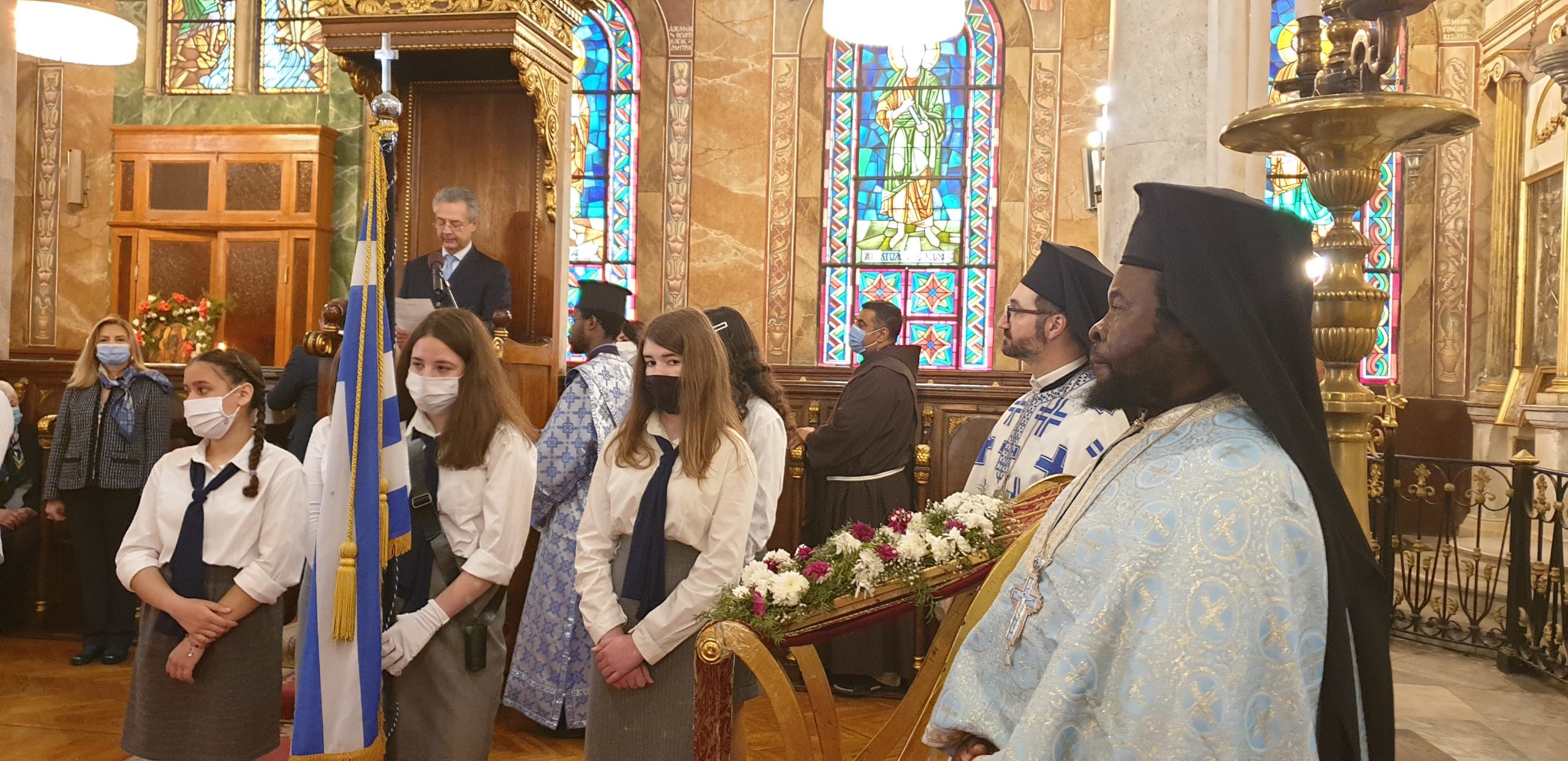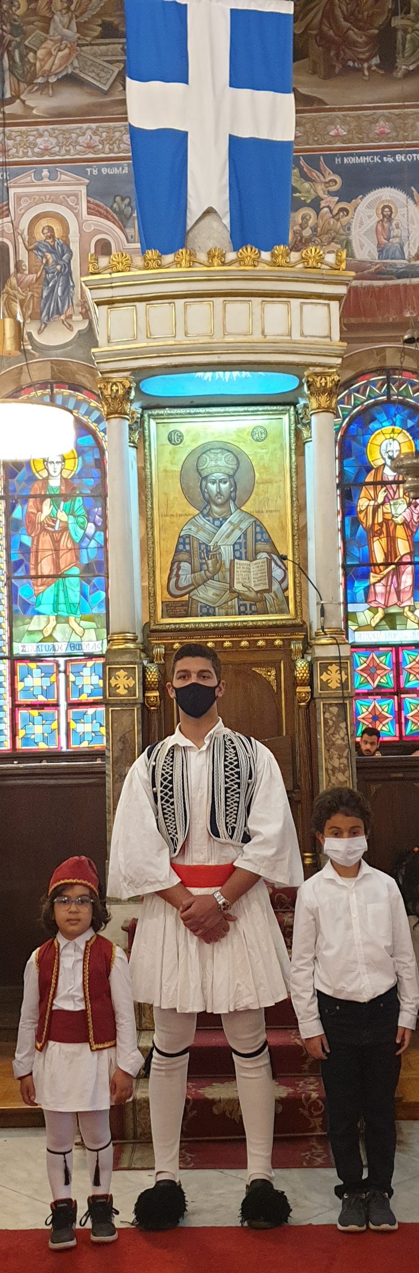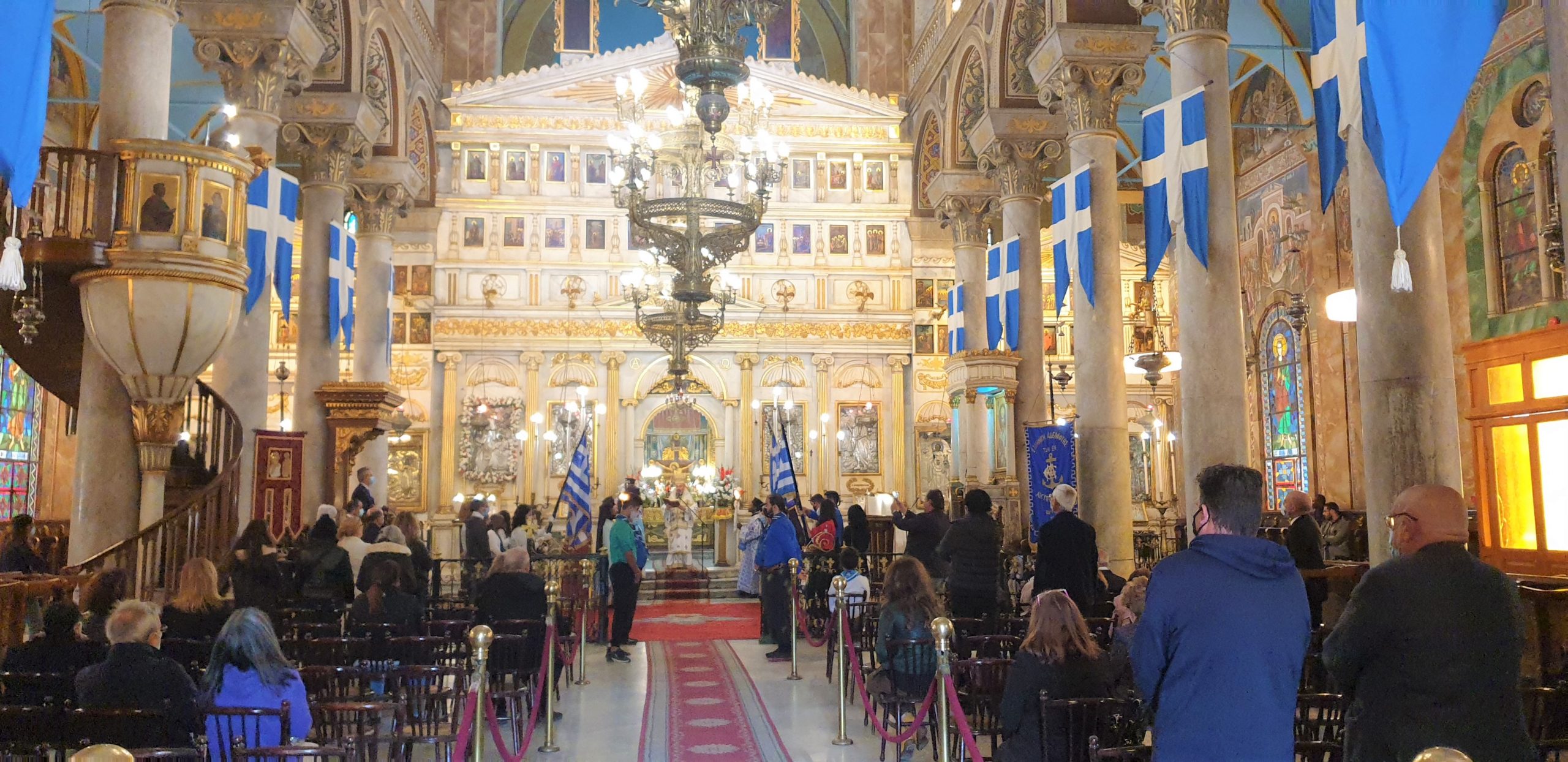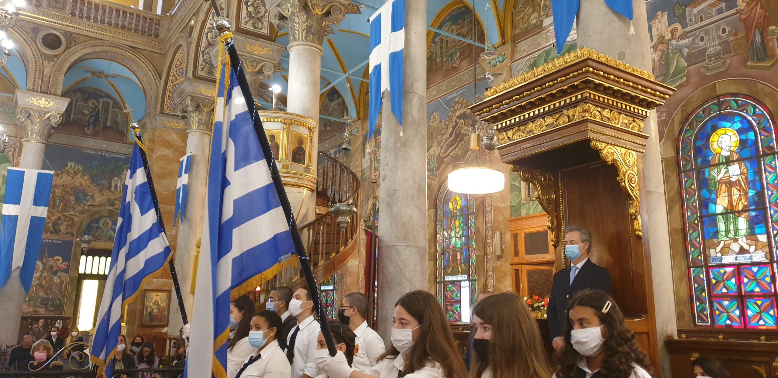 Αλλά και όλη η παροικία, με τους μαθητές και τους προσκόπους να σηκώνουν ευλαβικά την γαλανόλευκη μέσα και έξω από τον περικαλλή ναό.