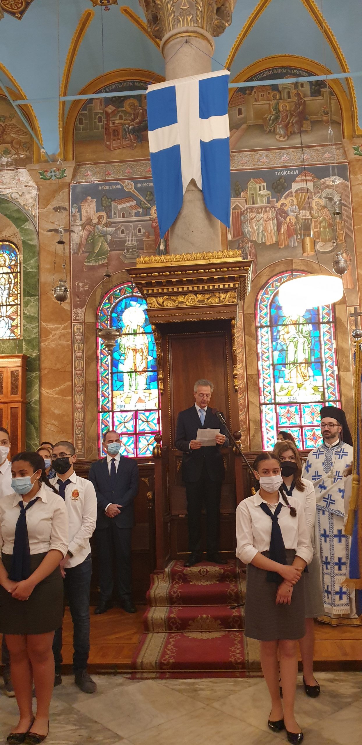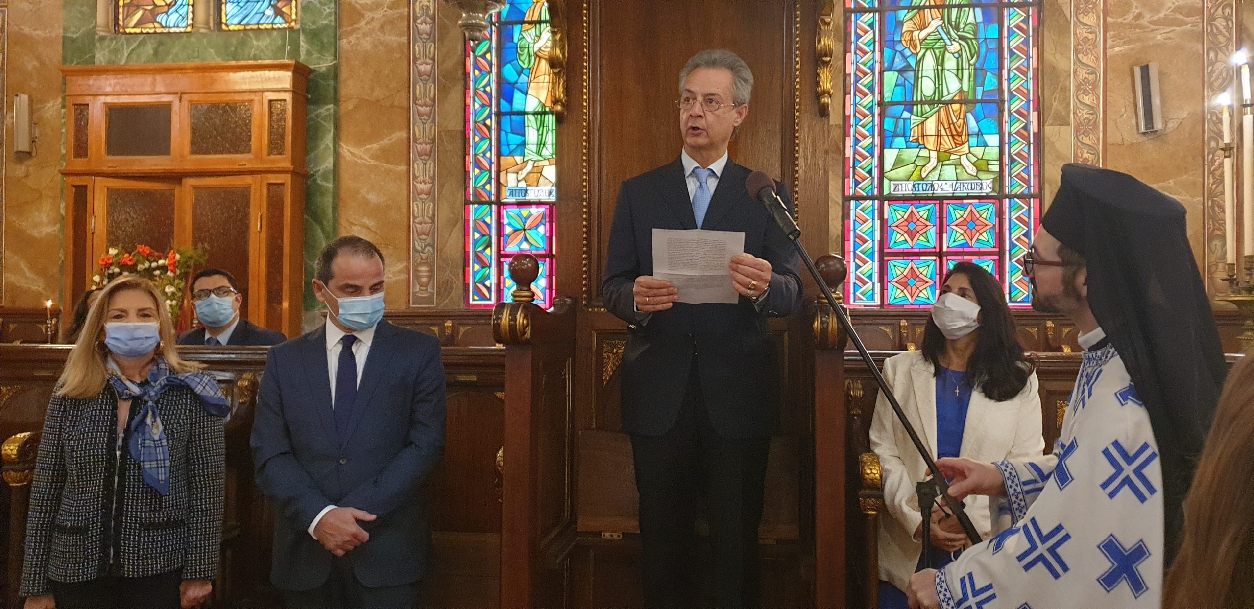 Αιγυπτιώτης Ελληνισμός, με την πρεσβυγενή Ελληνική Κοινότητα Αλεξανδρείας να δίνει το δυναμικό παρών, την οποία εκπροσώπησαν ο Α΄ Αντιπρόεδρος της ΕΚΑ κ. Ανδρέας Βαδειάδης, ο Γενικός Γραμματέας κ. Δημήτρης Κάβουρας και ο Κοινοτικός Επίτροπος και πρώην Αντιπρόεδρος κ. Νικόλας Κόπελος.