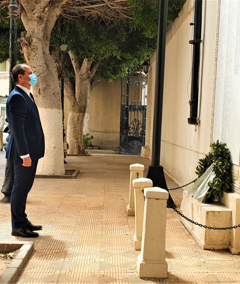 Χαρακτηριστική η στιγμή της ανάκρουσης των δύο Εθνικών Ύμνων, της Ελλάδας και της Αιγύπτου, που σιγόψαλαν οι παρεβρισκόμενοι αλλά και η κατάθεση στεφάνων στο μνημείο πεσόντων του ναού από τον Γ. Πρόξενο κ. Αθανάσιο Κοτσιώνη και τον Α΄ Αντιπρόεδρο της ΕΚΑ κ. Ανδρέα Βαφειάδη.