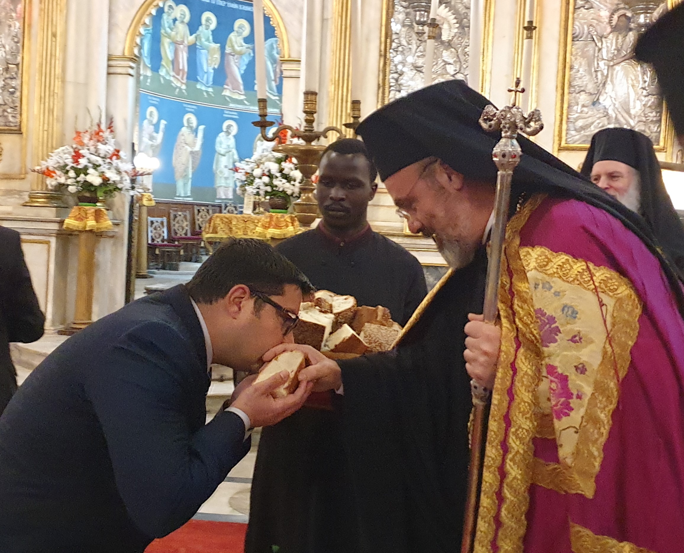 Της ακολουθίας προέστη ο Πατριαρχικός Επίτροπος Αλεξανδρείας Μητροπολίτης Ναυκράτιδος κ. Νάρκισσος ο οποίος μετέφερε τις πατρικές ευχές του Πατριάρχου Αλεξανδρείας και πάσης Αφρικής κ.κ. Θεοδώρου, παρουσία του Επισκόπου Ταμιάθεως κ. Γερμανού και του Ιερού κλήρου.