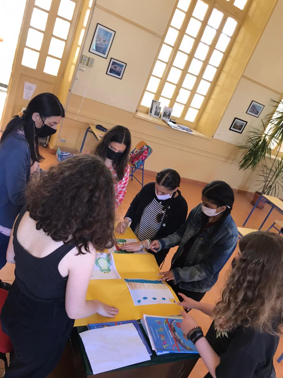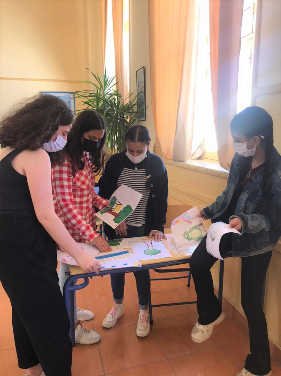 Στη συνέχεια, οι μαθήτριες της Γ΄ Γυμνασίου στα πλαίσια του πολιτιστικού προγράμματος «παραμύθια απ’ όλο τον κόσμο» με την κα Σπηλιωτοπούλου, ζωγράφισαν εικόνες εμπνευσμένες από τη φύση.