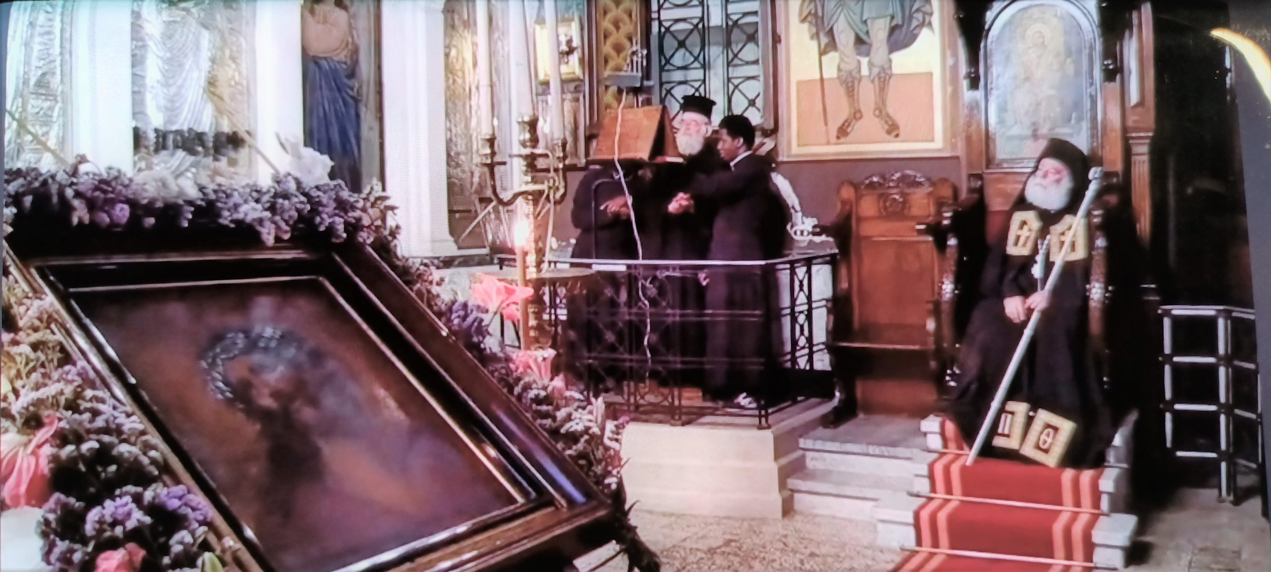 Επίσης ο Πατριάρχης Αλεξανδρείας ευχαρίστησε τον π. Παύλο Ιωσηφίδη που κόσμισε το αναλόγιο, τον εφημέριο π. Ελπιδοφόρο και τον κ. Απόστολο Γυφτογεωργίου, που με τον «Φάρο της Ομογένειας» μετέδωσε την ακολουθία μέσω Facebook.