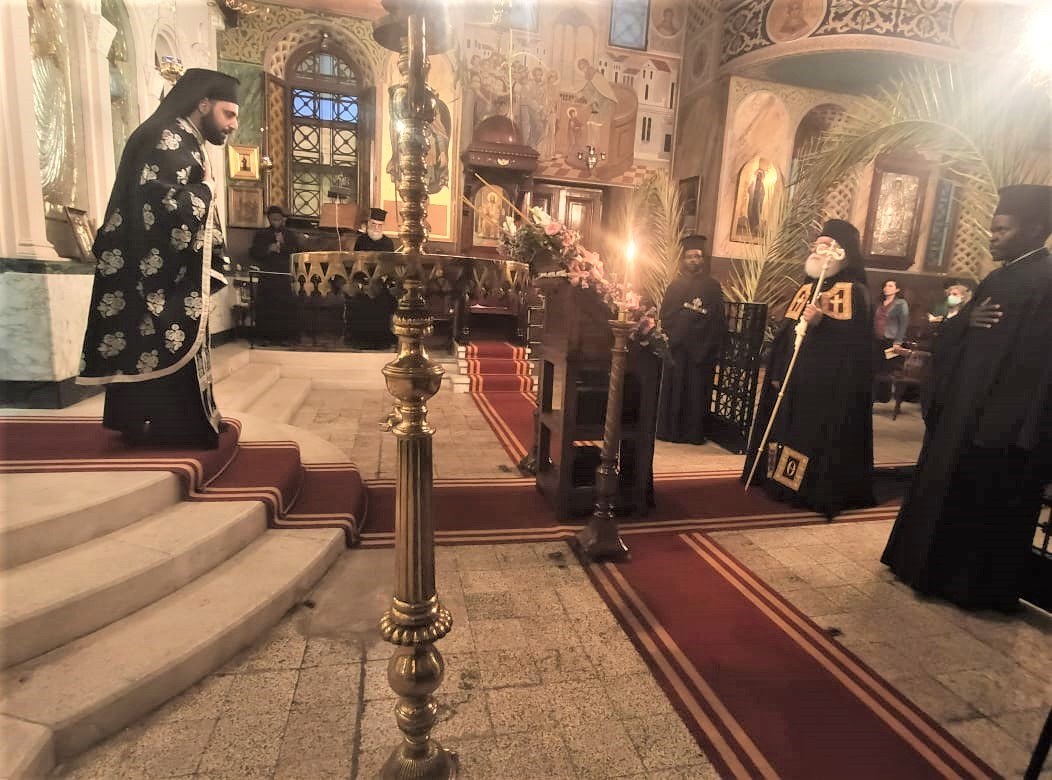 Σε κατανυκτική ατμόσφαιρα έζησαν την πρώτη μέρα του Θείου Πάθους όσοι παρακολούθησαν από κοντά την ακολουθία του Νυμφίου, την Κυριακή των Βαΐων εσπέρας, που ετέλεσε ο Πατριάρχης Αλεξανδρείας και πάσης Αφρικής κ.κ. Θεόδωρος, στην ιστορική εκκλησία των Παμμεγίστων Πατριαρχών Αλεξανδρείας.