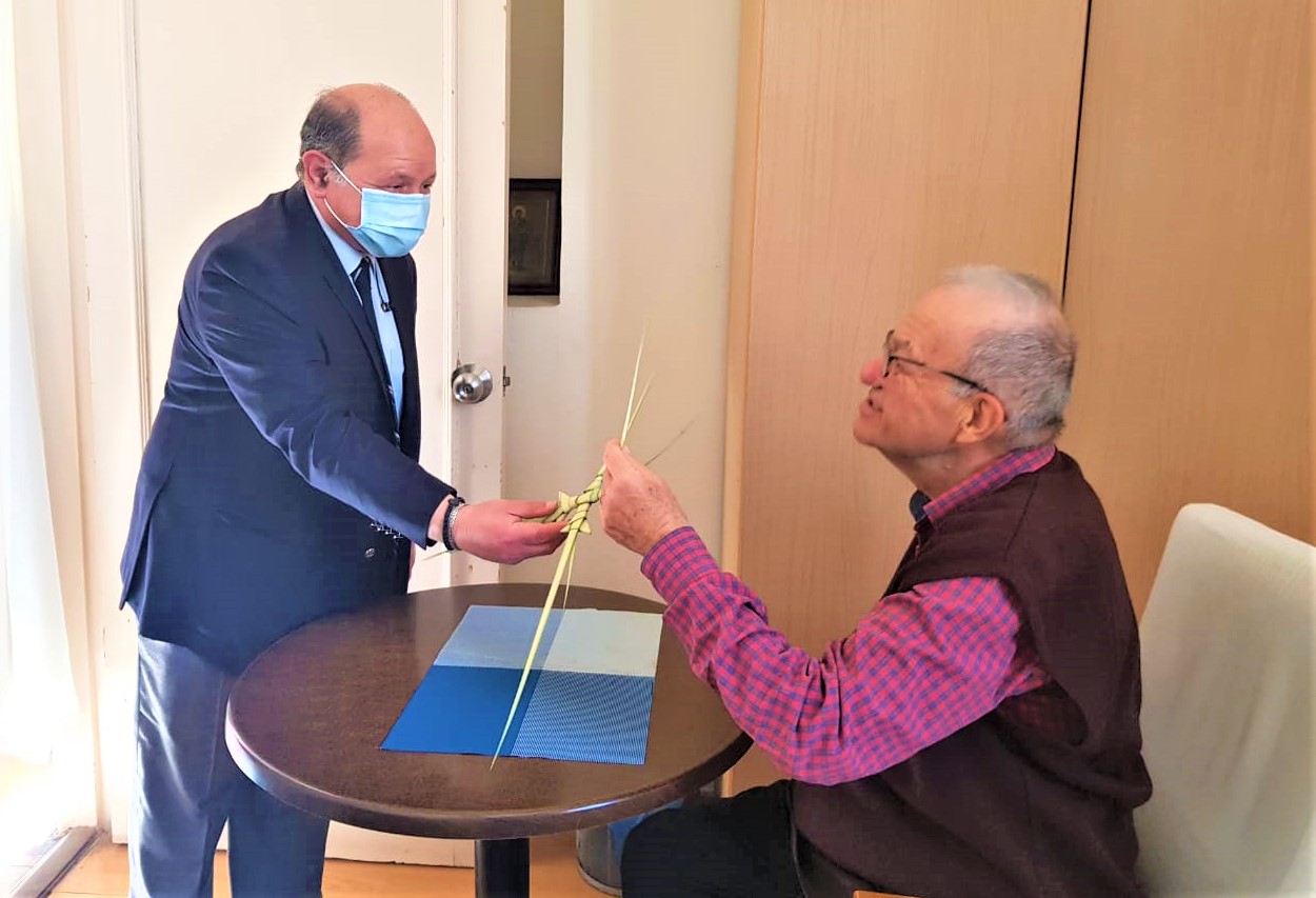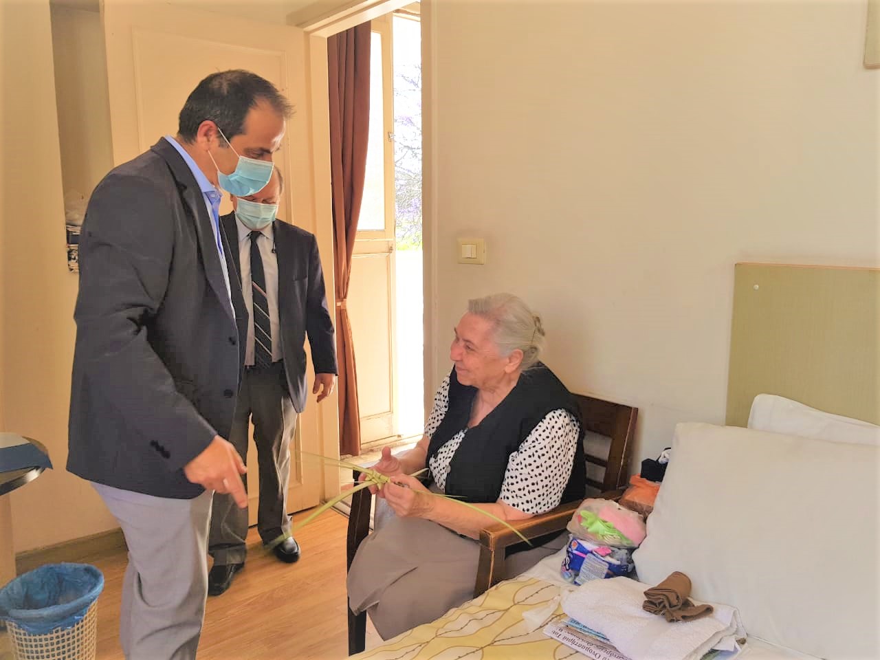 Τις πιο εγκάρδιες ευχές αλλά και τα ευλογημένα βάγια από τη μεγάλη σημερινή εορτή της Κυριακής προ του Πάσχα, μετέφεραν στους είκοσι τροφίμους του πρότυπου Οίκου Ευγηρίας της ΕΚΑ «ΜΑΝΝΑ», ο Α΄ Αντιπρόεδρος της Ελληνικής Κοινότητας Αλεξανδρείας κ. Ανδρέας Βαφειάδης και ο Κοινοτικός Επίτροπος της ΕΚΑ και πρώην Αντιπρόεδρος κ. Νικόλας Κόπελος.