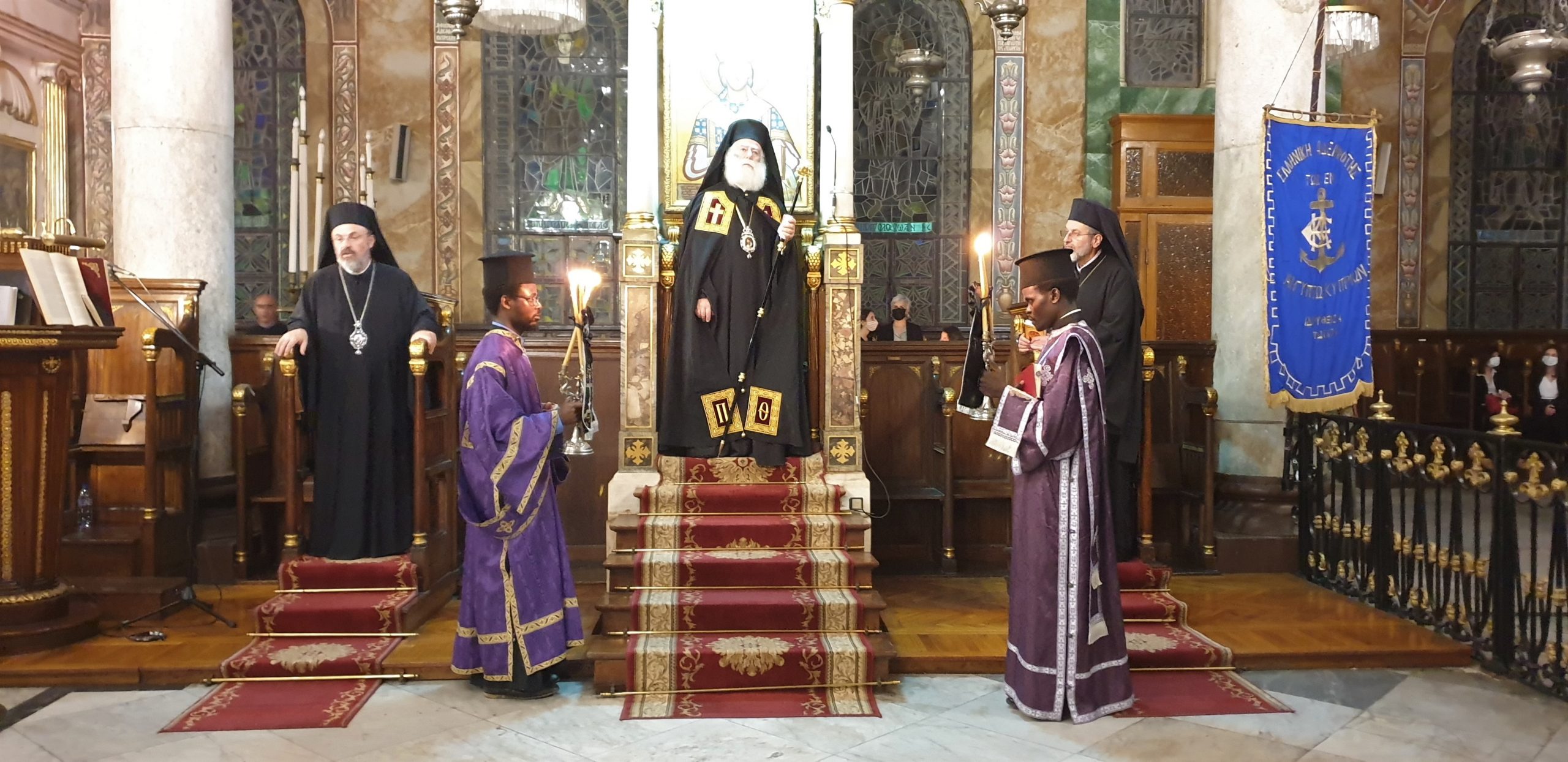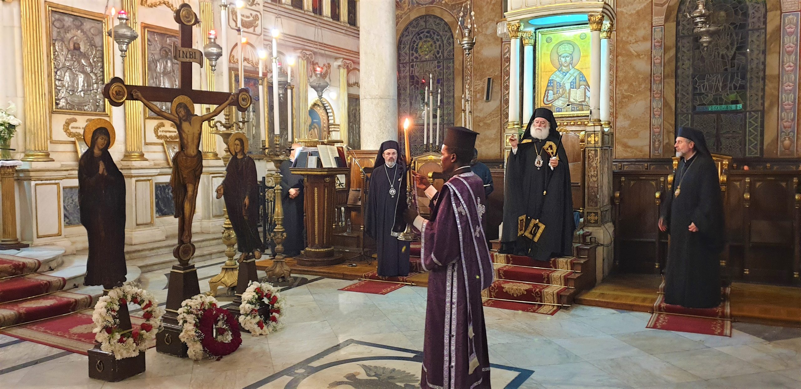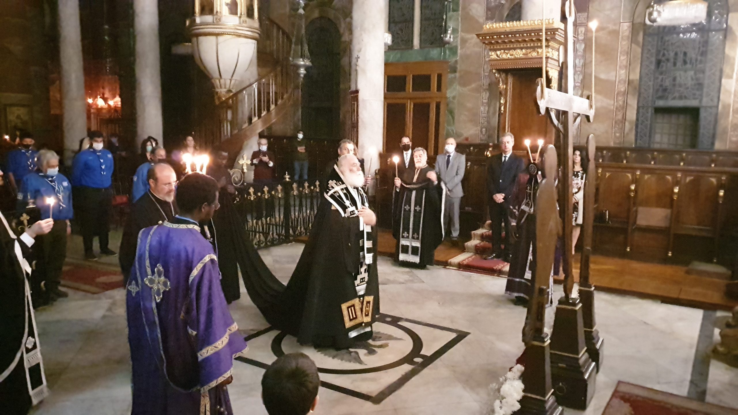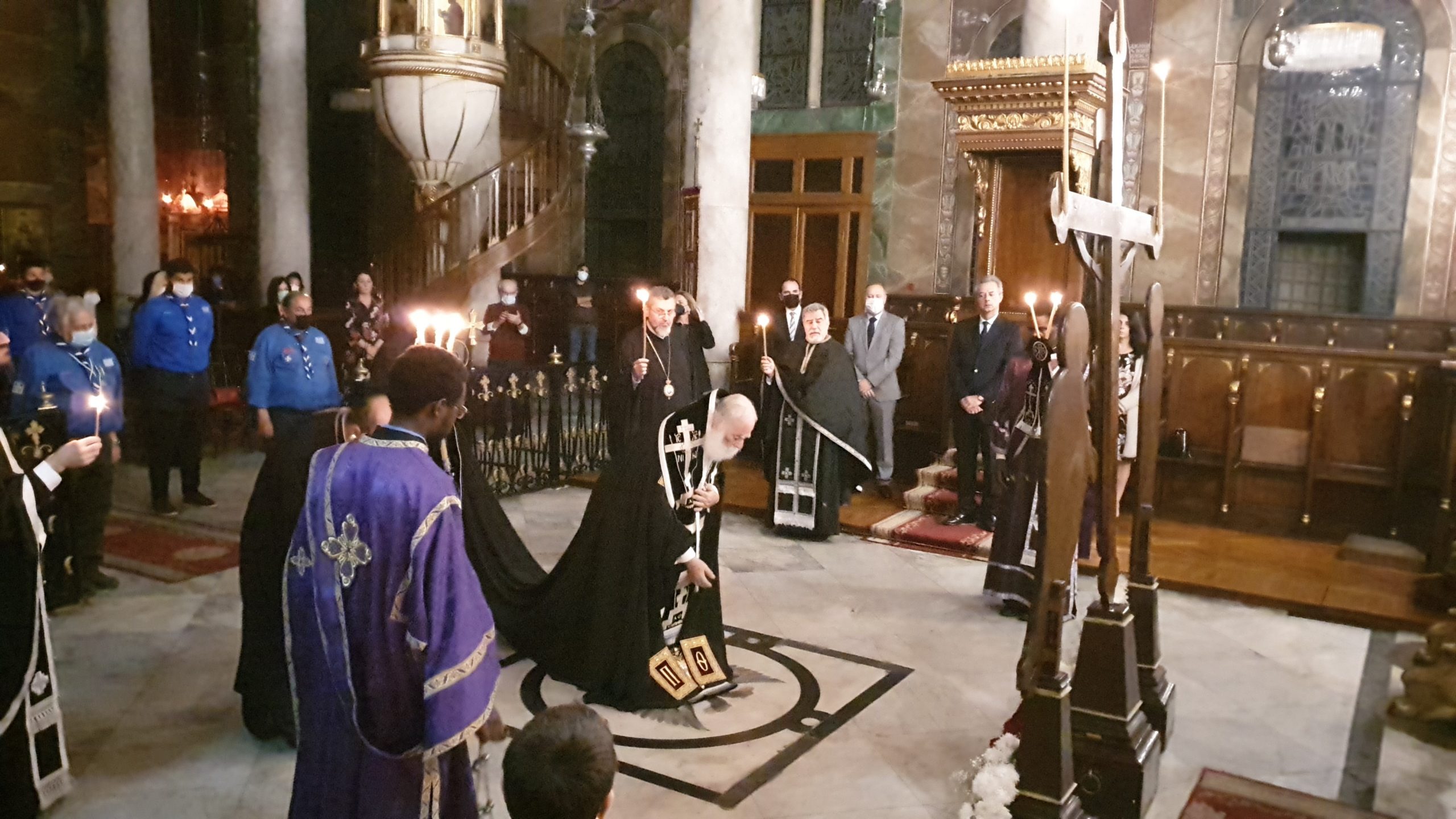 Υπό των φως των κεριών, σε μία απόλυτη σιγή, η φωνή του Προκαθημένου της Ορθόδοξης Εκκλησίας της Αφρικής γέμιζε ασφυκτικά την εκκλησία, με τον Πατριάρχη να πλαισιώνεται από τον Πατριαρχικό Επίτροπο Αλεξανδρείας Μητροπολίτη Ναυκράτιδος Νάρκισσο και τον Επίσκοπο Βαβυλώνος Θεόδωρο αλλά και τον ιερό κλήρο.
