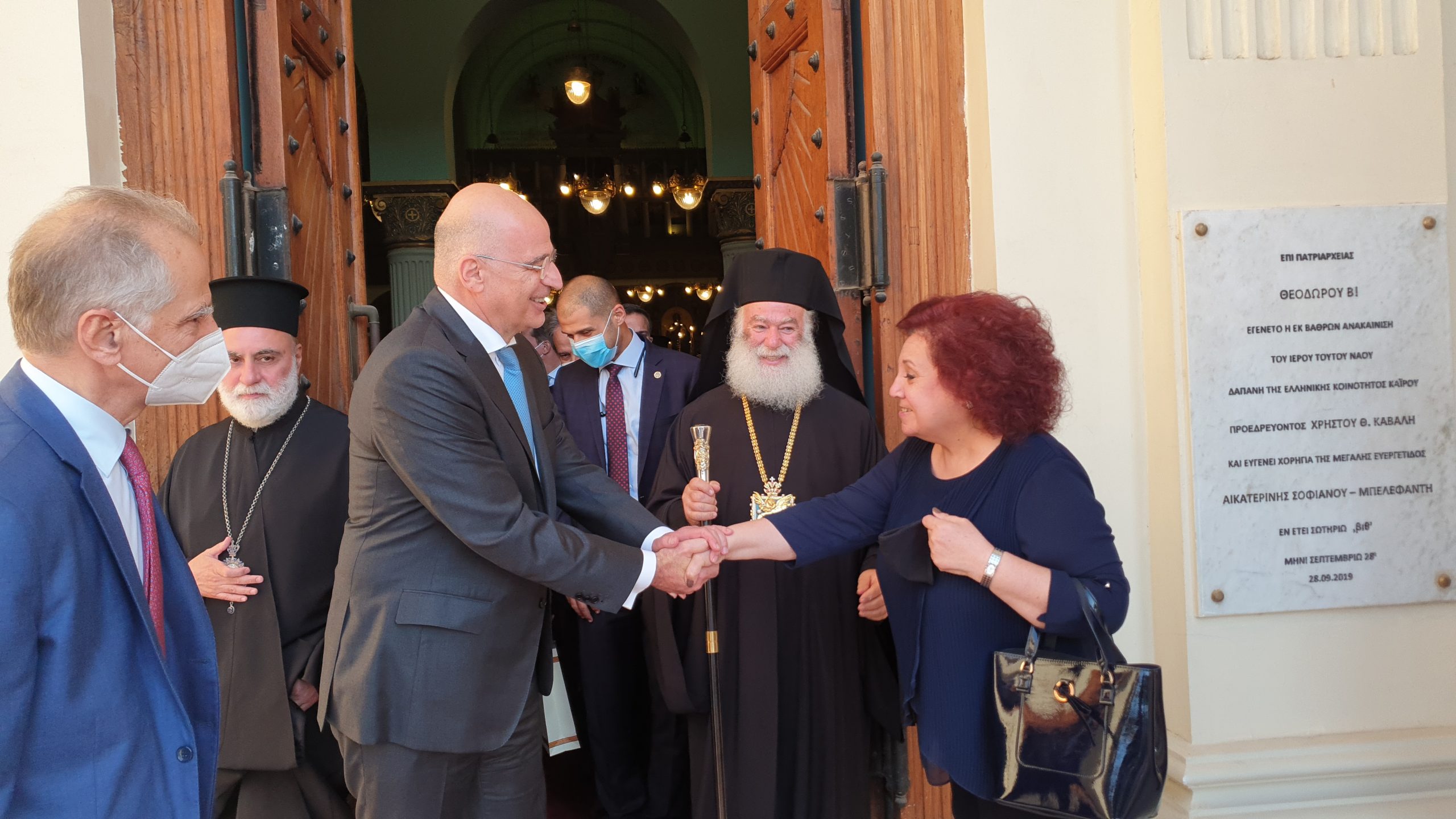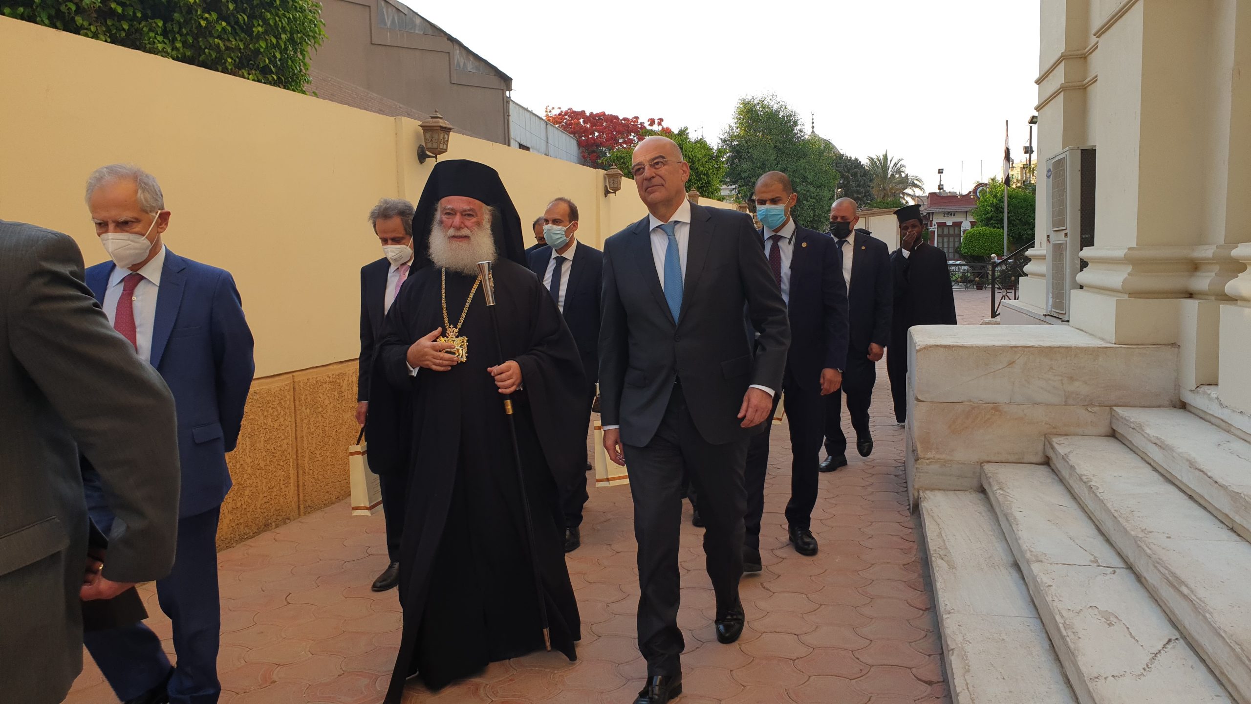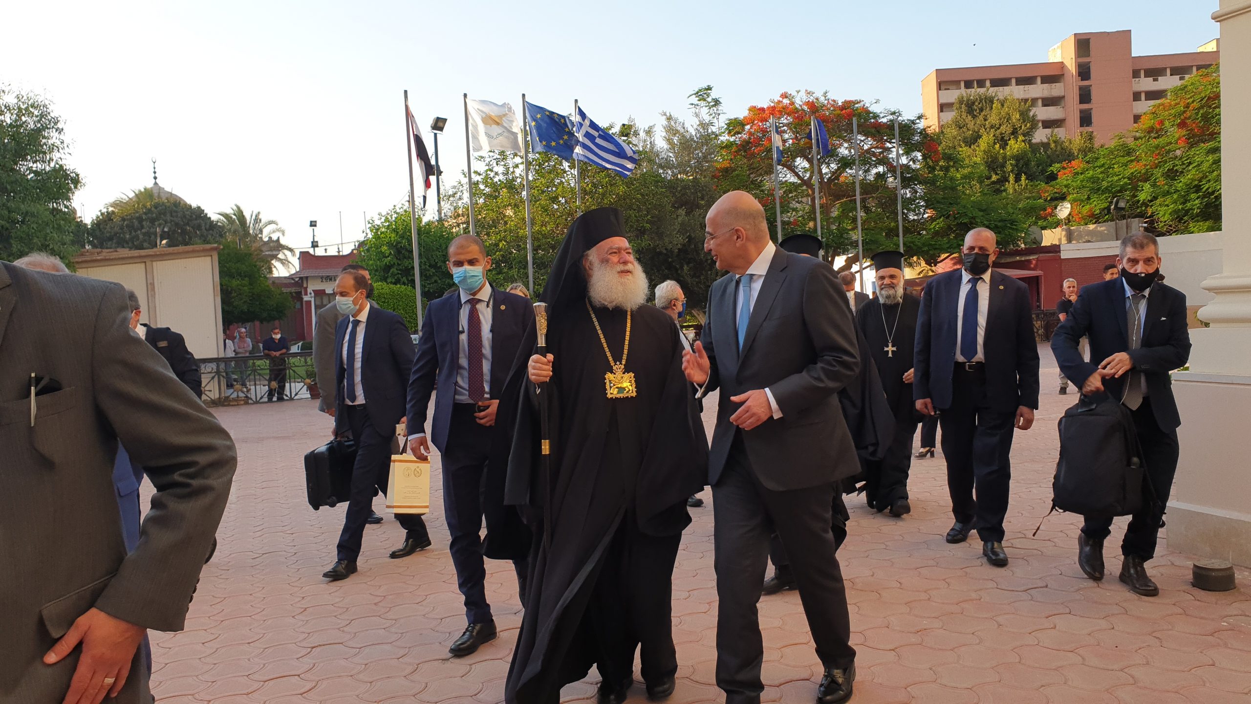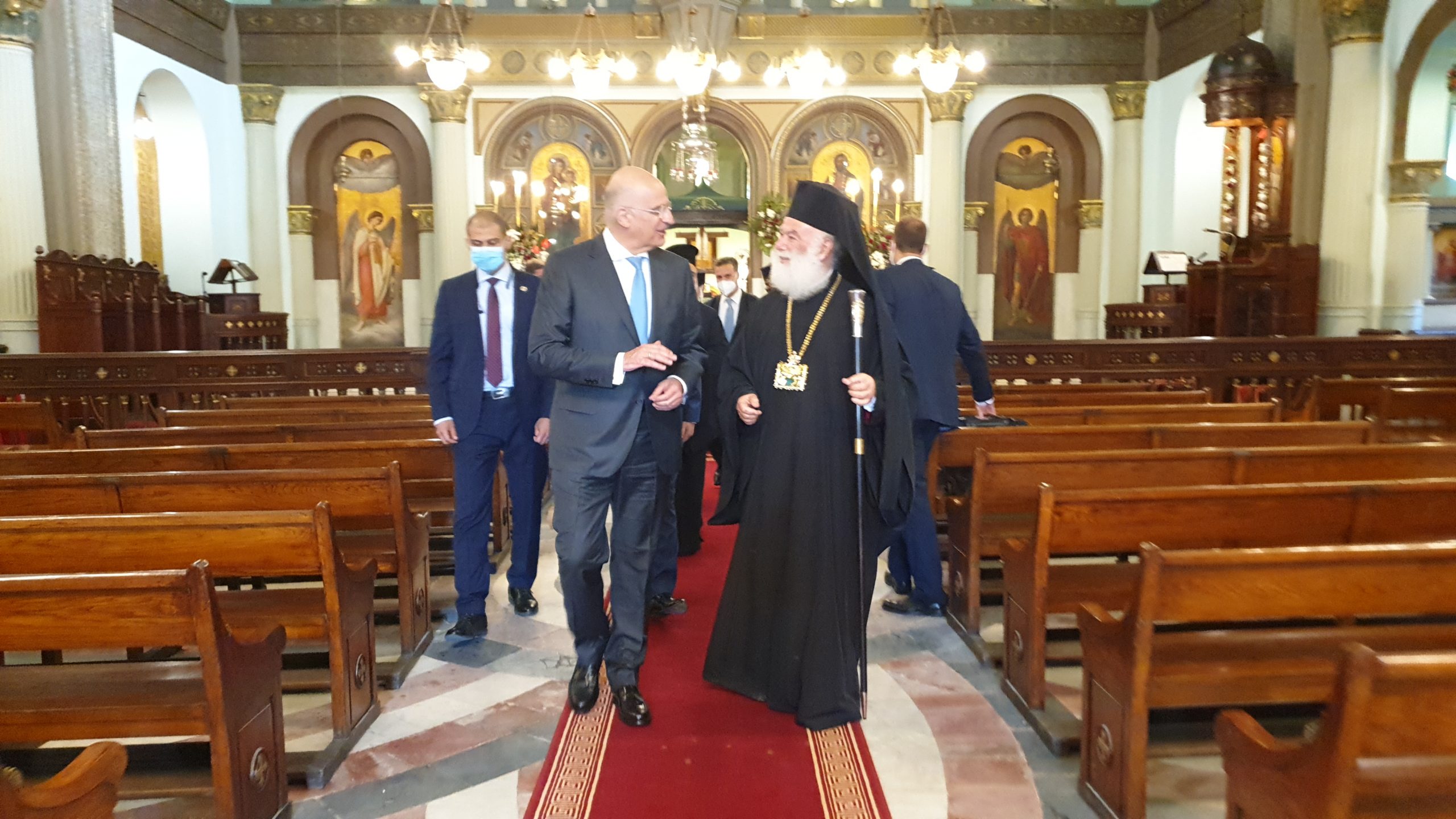 Σε μία σημαδιακή μέρα για τον Καϊρινό Ελληνισμό, όπου τιμάται η μνήμη των πολιούχων της Ελληνικής Κοινότητας Καΐρου, Αγίων Κωνσταντίνου και Ελένης, ο Υπουργός Εξωτερικών κ. Νίκος Δένδιας έγινε θερμά δεκτός από τον Πατριάρχη Αλεξανδρείας και πάσης Αφρικής κ.κ. Θεόδωρο, σε αυτόν ακριβώς τον ελληνικό επιβλητικό ναό που βρίσκεται στο κέντρο της αιγυπτιακής πρωτεύουσας και έχει διαδραματίσει σπουδαίο ρόλο στην ιστορία του Αιγυπτιώτη Ελληνισμού.