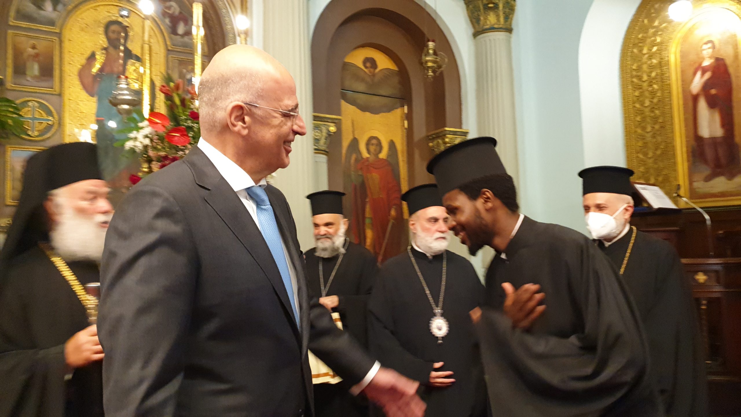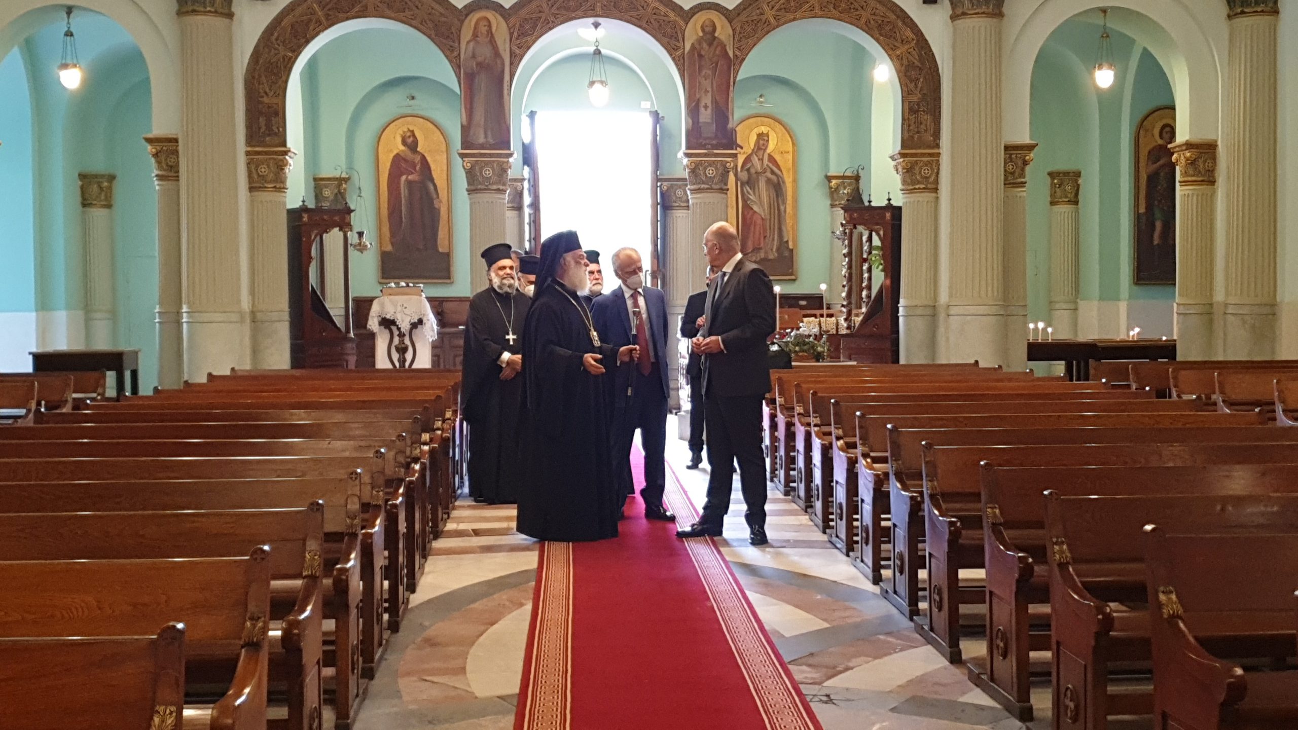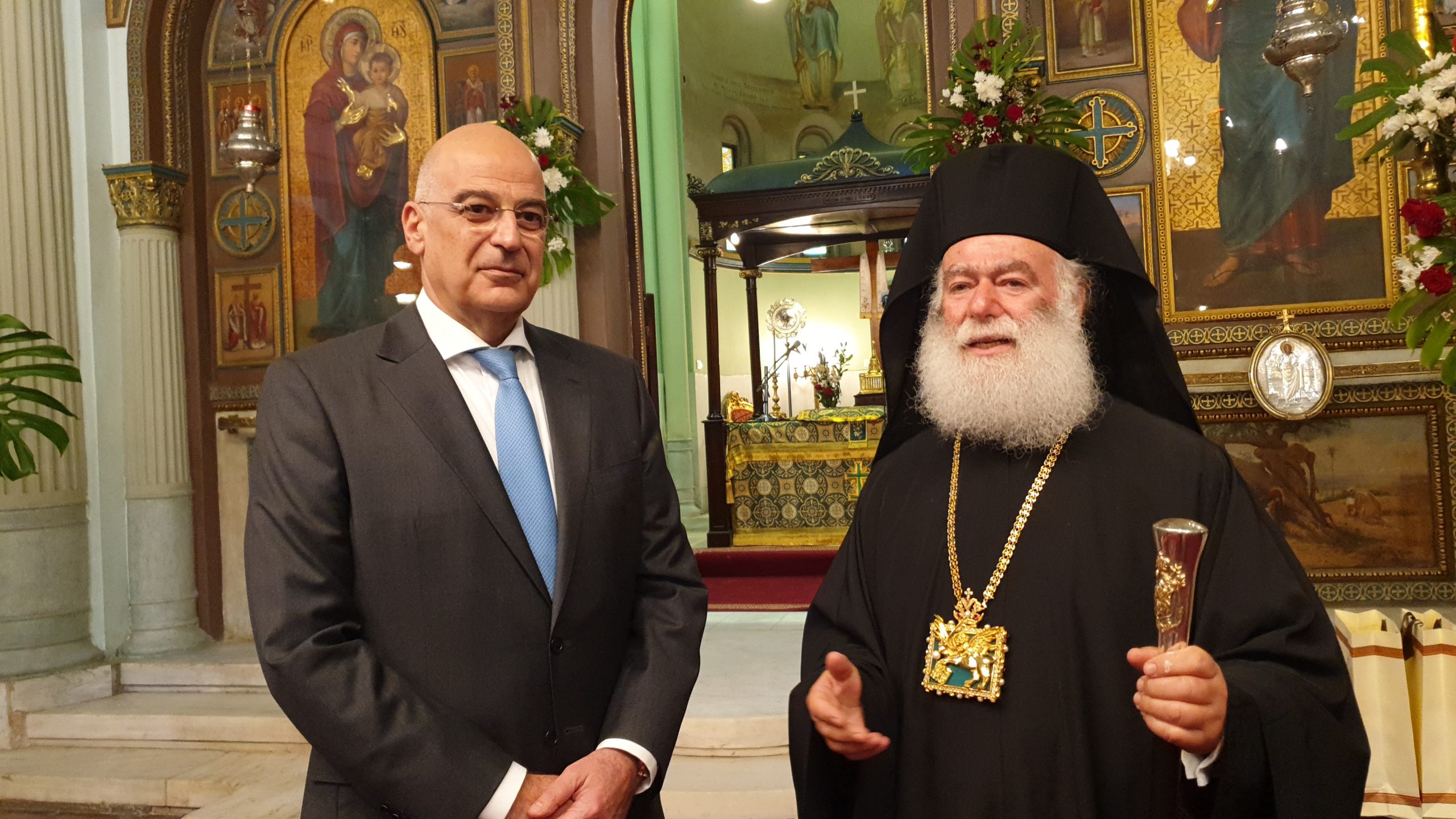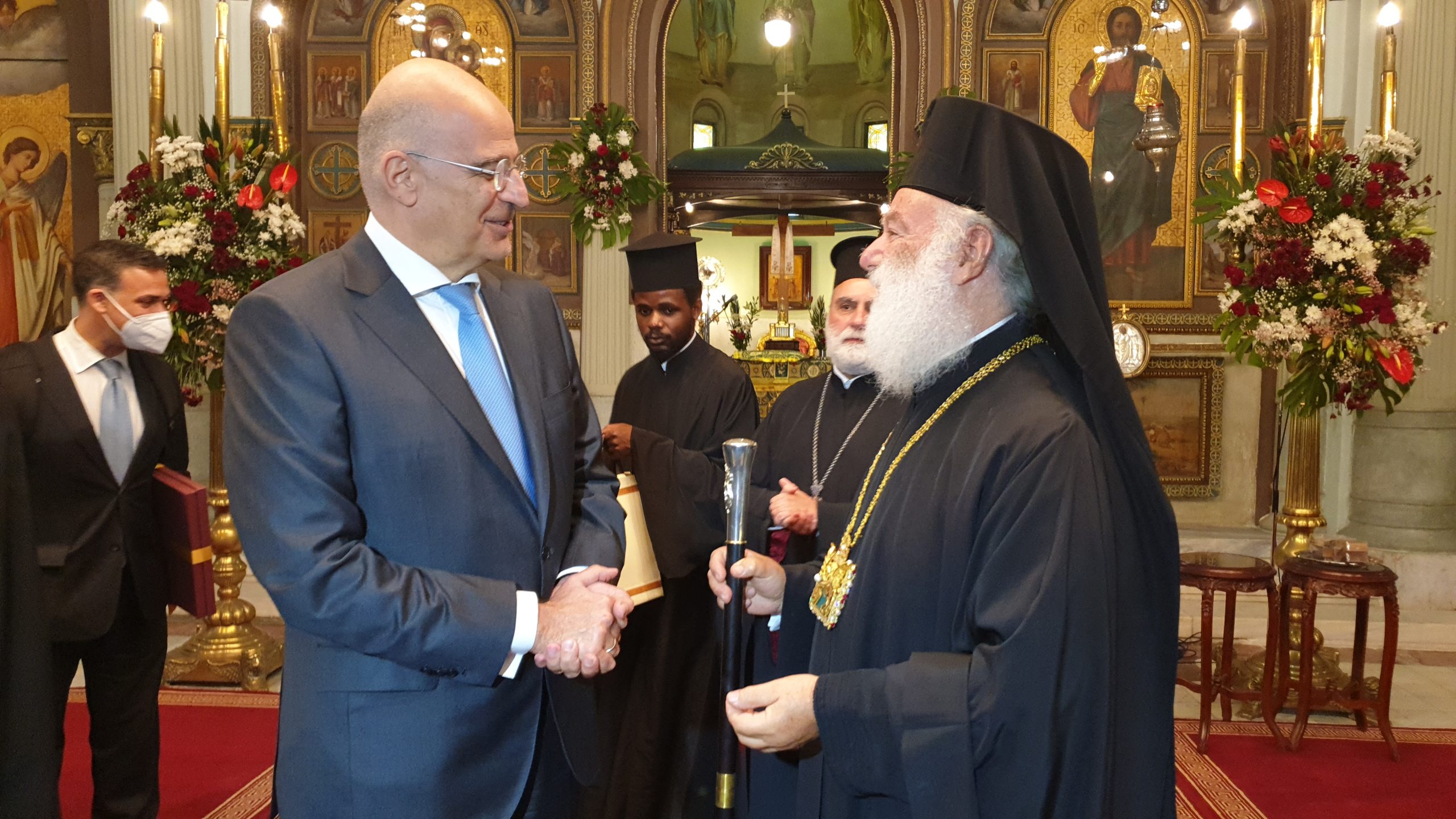 Σε μία σημαδιακή μέρα για τον Καϊρινό Ελληνισμό, όπου τιμάται η μνήμη των πολιούχων της Ελληνικής Κοινότητας Καΐρου, Αγίων Κωνσταντίνου και Ελένης, ο Υπουργός Εξωτερικών κ. Νίκος Δένδιας έγινε θερμά δεκτός από τον Πατριάρχη Αλεξανδρείας και πάσης Αφρικής κ.κ. Θεόδωρο, σε αυτόν ακριβώς τον ελληνικό επιβλητικό ναό που βρίσκεται στο κέντρο της αιγυπτιακής πρωτεύουσας και έχει διαδραματίσει σπουδαίο ρόλο στην ιστορία του Αιγυπτιώτη Ελληνισμού.