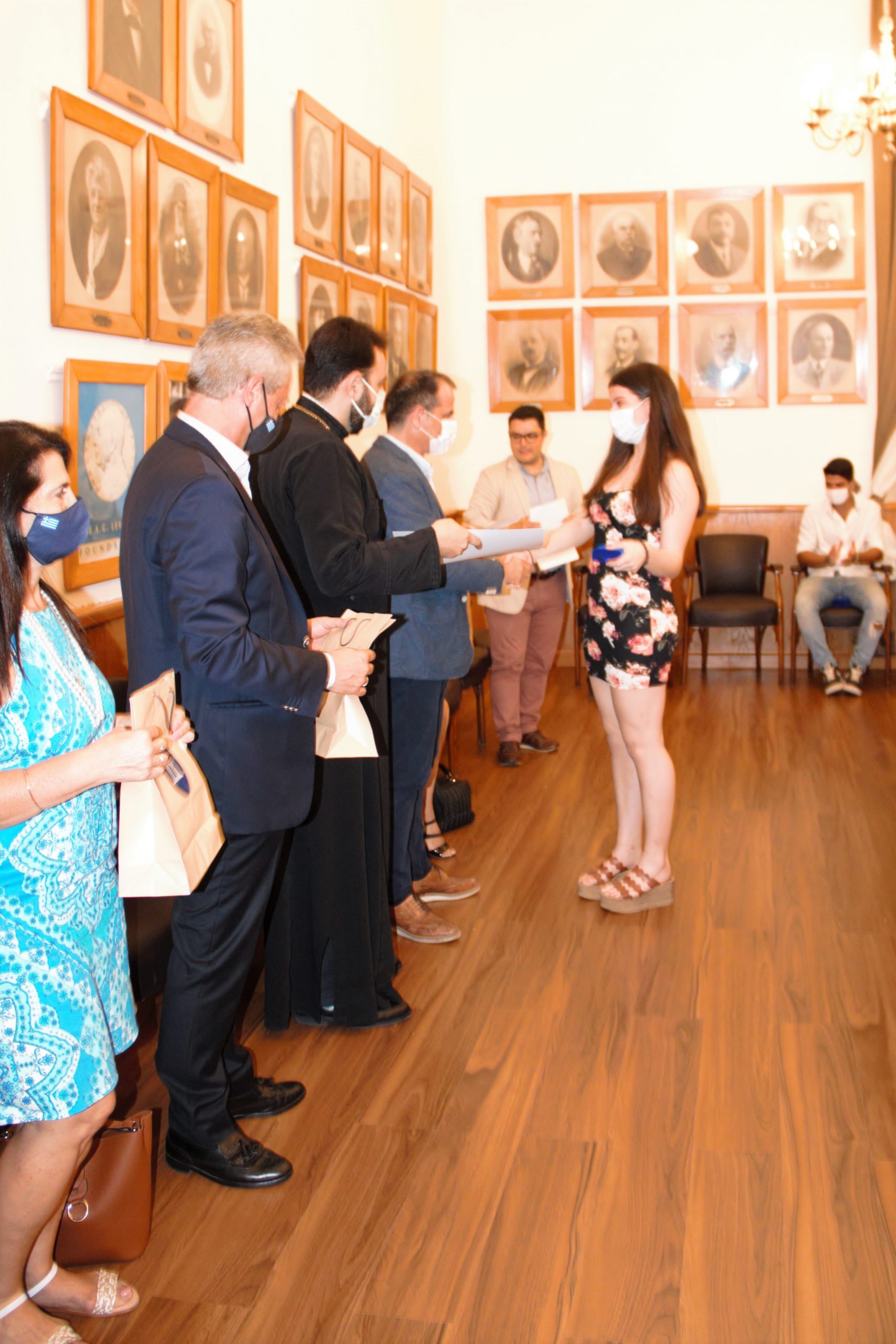 Τέλος, η Ελληνική Κοινότητα Αλεξανδρείας παρέδωσε αναμνηστικά σε όλους τους Αποφοίτους αλλά και ειδικά δώρα μαζί με χρηματικό ποσό σε όσους πήραν βραβεία αριστείας.