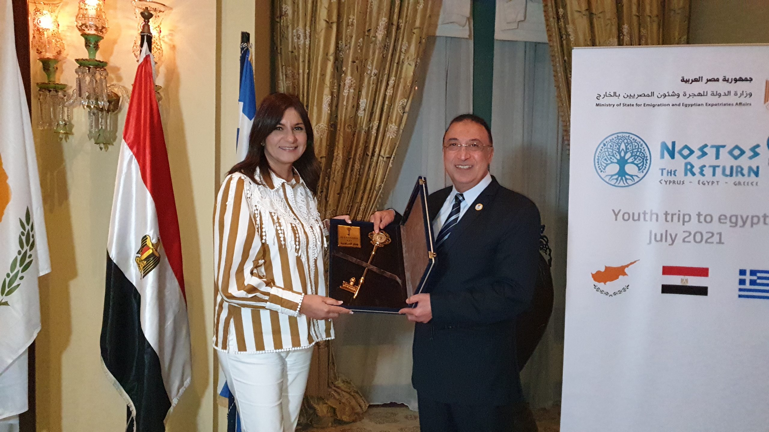 «Είναι πολύ όμορφο να ξεκινάμε την 4η φάση του «ΝΟΣΤΟΣ» με 15 νέους από την Αίγυπτο, την Κύπρο και την Ελλάδα, όπως αποφασίσαμε με τον Επίτροπο της Κυπριακής Προεδρίας για τους Αποδήμους, Φώτη Φωτίου, και τον Υφυπουργό Εξωτερικών της Ελλάδας, Κώστα Βλάση, για το ταξίδι αυτό της νέας απόδημης γενιάς των τριών χωρών μας, για να μάθουν από κοντά την κοινή μας ιστορία και για το τι έχουμε κάνει στην πάροδο του χρόνου», είπε χαρακτηριστικά η αρμόδια για τους Αποδήμους Αιγυπτία Υπουργός.