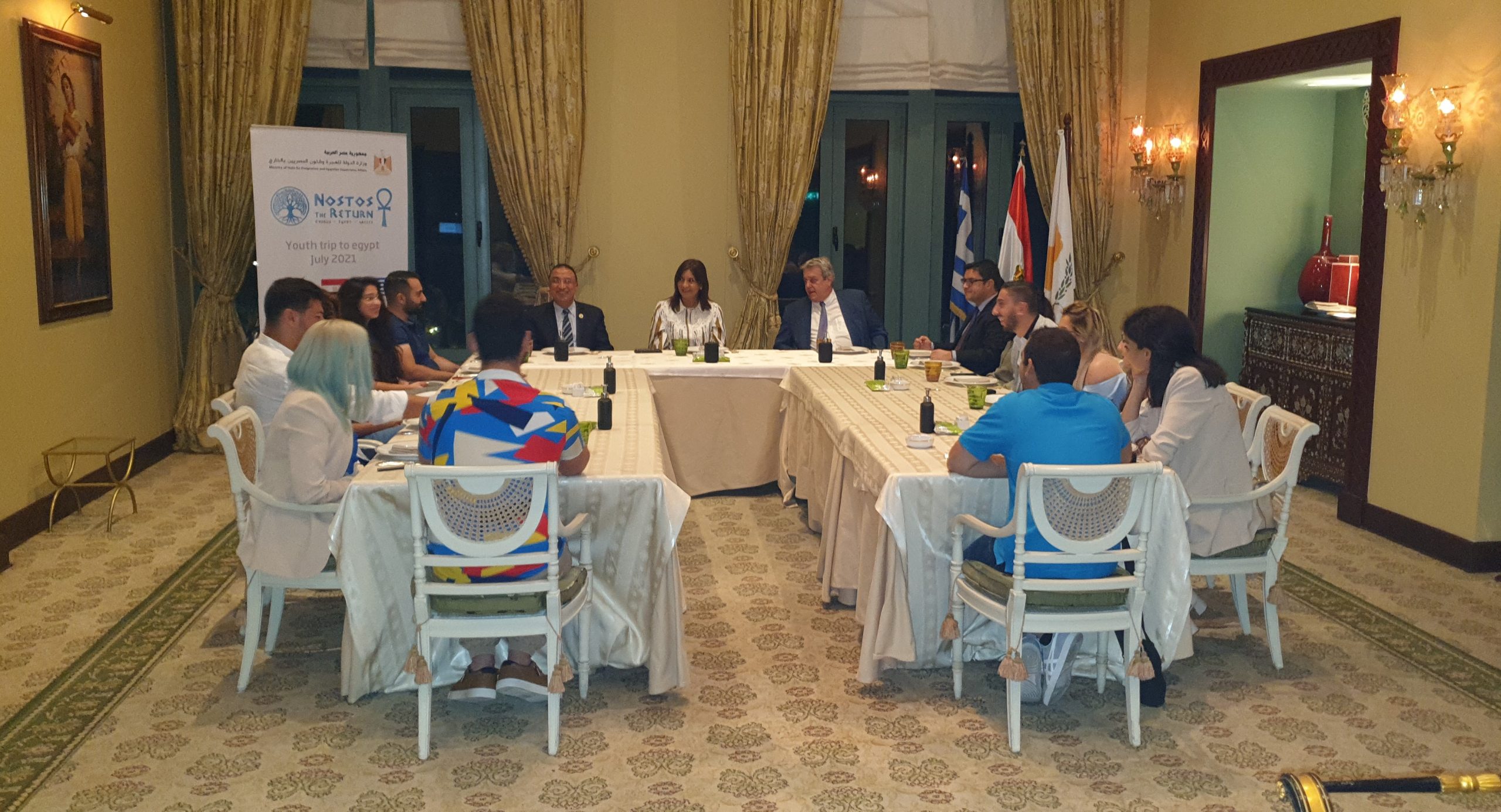 Αμέσως μετά, με την τιμητική παρουσία του Κυβερνήτη της Αλεξάνδρειας Μοχάμεντ Ελ Σερίφ και του Αιγύπτιου επιχειρηματία με ελληνικές ρίζες από την Ιμπραημία της Αλεξάνδρειας (από την περιοχή του Καμ Σεζάρ), Έρικ Αδάμ, ο οποίος στηρίζει οικονομικά καθοριστικά όλο αυτό το πρόγραμμα, ξεκίνησε και η συζήτηση που είχε η Υπουργός Διασποράς με τους 15 νέους από τις τρεις χώρες, για τους οποίους τής ζητήσαμε να μας πει κατά τη γνώμη της για το ποιες είναι οι ομοιότητές τους, με την απάντησή της, άμεση: «Είναι περίπου ίδιοι… Μιλάνε πολύ, είναι γεμάτοι από ενέργεια και χαρά. Και μού έκανε εντύπωση το πνεύμα τους και το ενδιαφέρον τους για να ενημερωθούν για την κοινή μας ιστορία», είπε χαρακτηριστικά η Υπουργός Διασποράς της Αιγύπτου.
