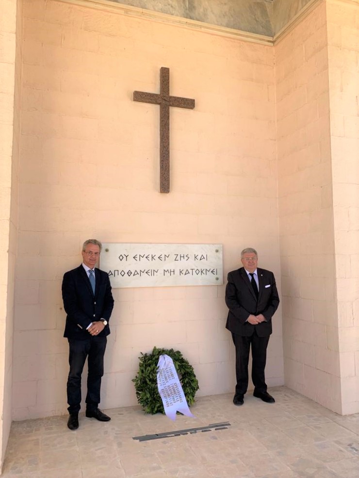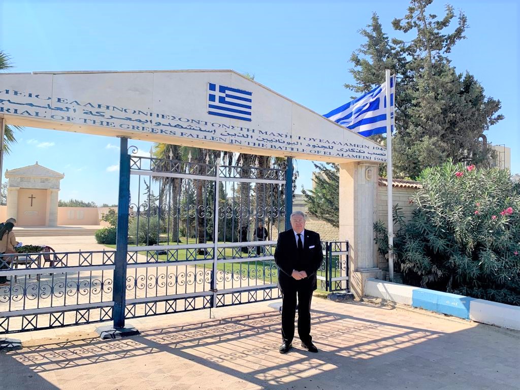 Με μία επίσκεψη έντονου συμβολικού χαρακτήρα στο Ελληνικό Μνημείο των νεκρών Ηρώων του Ελ Αλαμέιν, ξεκίνησε την επίσκεψή του στην Αίγυπτο ο Γενικός Γραμματέας Απόδημου Ελληνισμού και Δημόσιας Διπλωματίας του Υπουργείου Εξωτερικών κ. Ιωάννης Χρυσουλάκης.