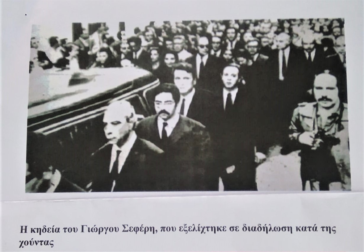 Σημαντική αναφορά έγινε στον νομπελίστα ποιητή Γ. Σεφέρη και στη στάση που εκείνος κράτησε απέναντι στο καθεστώς της χούντας, με ιδιαίτερη μνεία στο έργο του «Άρνηση», το ποίημα του Σεφέρη που μελοποιήθηκε από τον Μίκη Θεοδωράκη.
