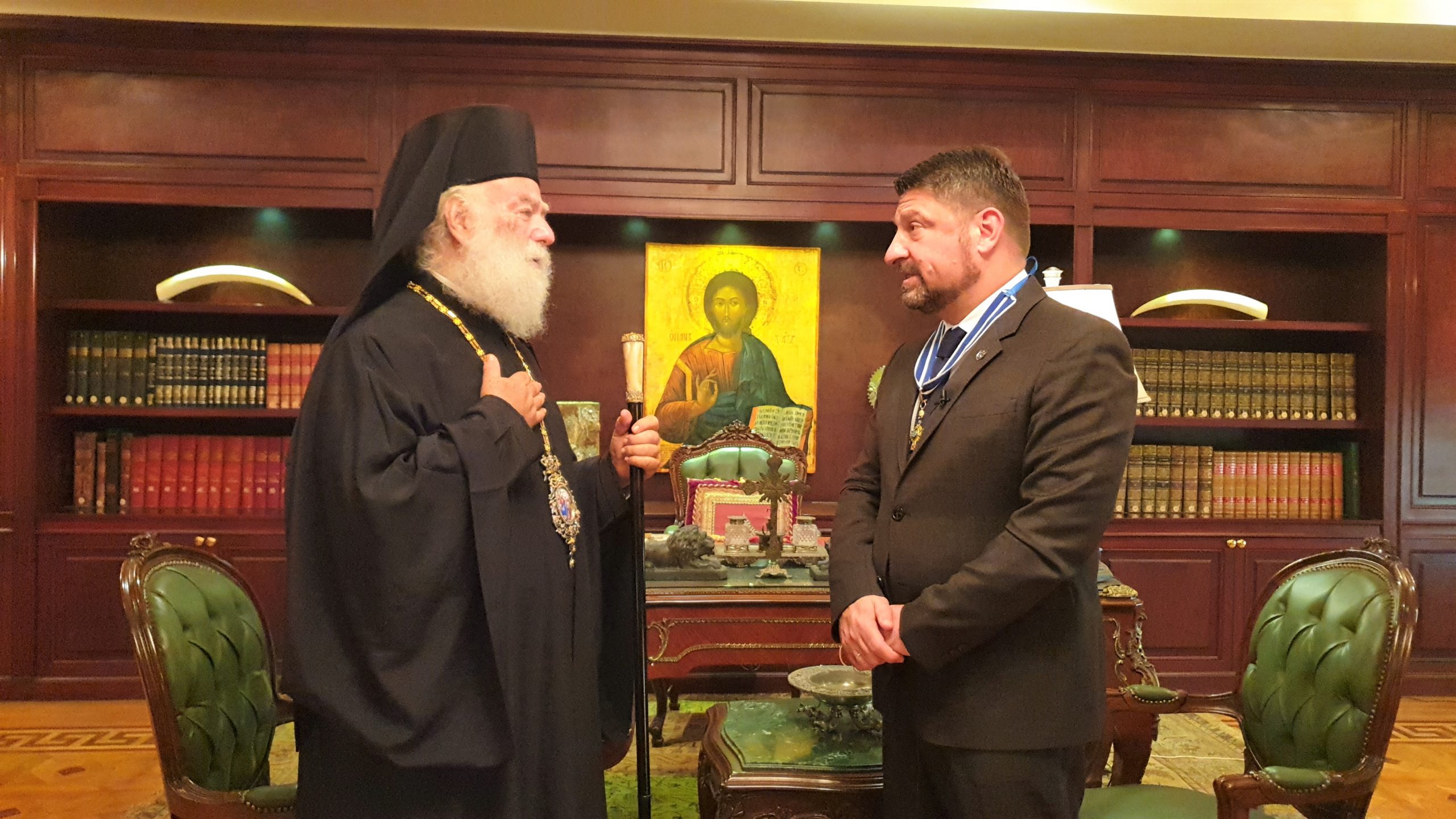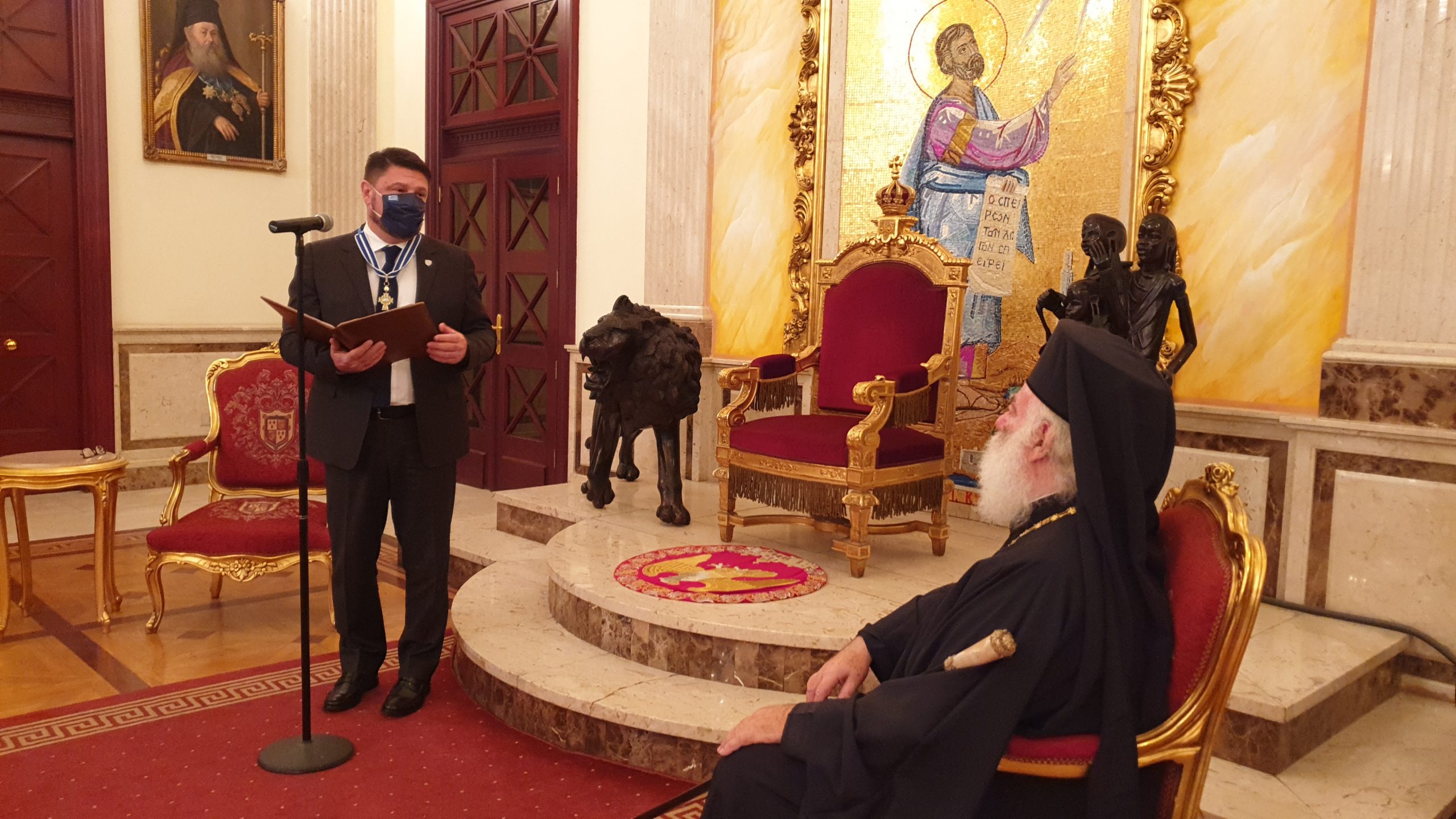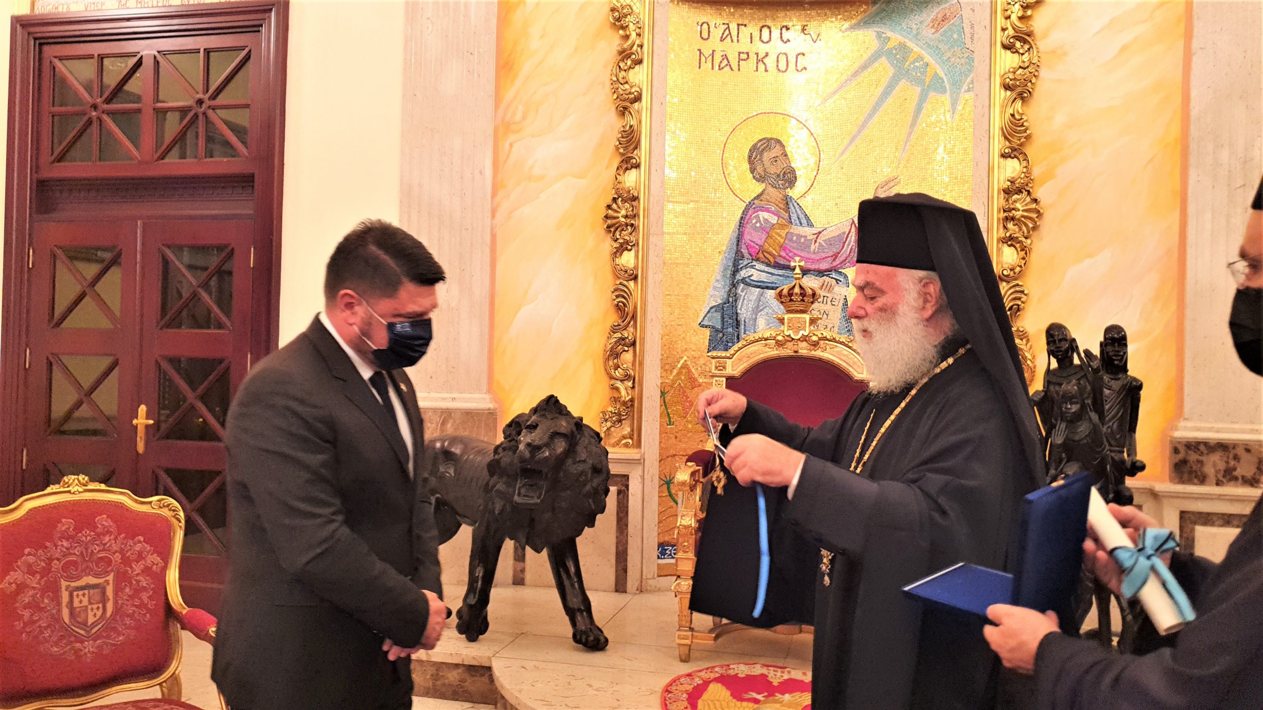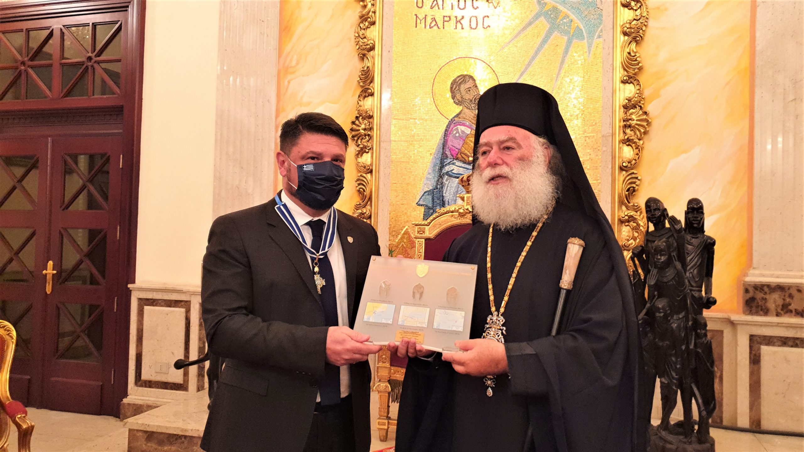 Μία ξεχωριστή τιμητική διάκριση επεφύλαξε ο Πατριάρχης Αλεξανδρείας και πάσης Αφρικής κ.κ. Θεόδωρος στον Υφυπουργό Εθνικής Άμυνας, Νίκο Χαρδαλιά, προσφέροντάς του τον Σταυρό του Αποστόλου και Ευαγγελιστού Μάρκου, εκφράζοντας σε κλίμα συγκίνησης την προσωπική του ευγνωμοσύνη, αλλά και όλης της Ορθόδοξης Εκκλησίας της Αφρικής, για τους αγώνες του για τον άνθρωπο που κατέβαλε εναντίον του κορονοϊού και των πολλών θεομηνιών που έπληξαν την Ελλάδα τους τελευταίους 26 μήνες.