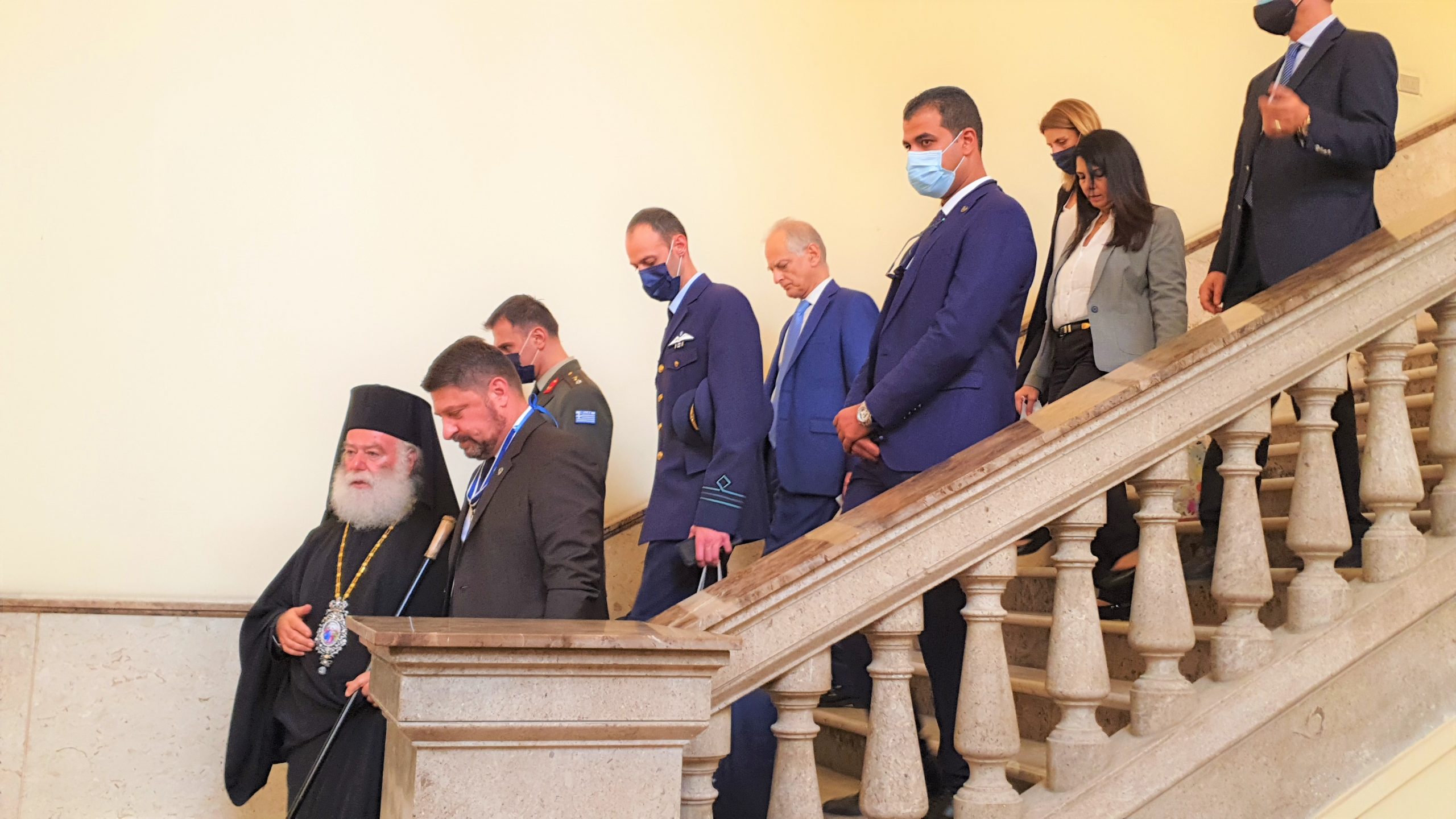 Με τον κ. Χαρδαλιά να αφιερώνει αυτήν την κορυφαία τιμητική διάκριση «σε όλους αυτούς τους ανθρώπους από τα Σώματα Ασφαλείας, από τις Ένοπλες Δυνάμεις, από την Πολιτική Προστασία, που με την καθοδήγηση του Πρωθυπουργού Κυριάκου Μητσοτάκη, πάλεψαν στις δύσκολες καταστάσεις που αντιμετώπισε η χώρα μας, λόγω του αόρατου εχθρού της πανδημίας αλλά και τις θεομηνίες που ήταν τόσες πολλές σε τόσο σύντομο χρονικό διάστημα», όπως τόνισε από την πλευρά του ο Υφυπουργός Εθνικής Άμυνας, διαβεβαιώνοντας τον Προκαθήμενο του Δευτερόθρονου Πατριαρχείου ότι η παρουσία του στην Αλεξάνδρεια «αποδεικνύει τον μεγάλο σεβασμό, την αμέριστη συμπαράσταση και τα αισθήματα ειλικρινούς αγάπης που τρέφουν προς το Πατριαρχείο Αλεξανδρείας, ο Πρωθυπουργός Κυριάκος Μητσοτάκης, η Ελληνική Πολιτεία και σύσσωμος ο Ελληνικός λαός για το Παλαίφατο Πατριαρχείο και το ποίμνιό του καθώς επίσης και για την ιστορικότατη Ελληνική Κοινότητα Αλεξανδρείας που αποτελεί αναπόσπαστο κομμάτι της φίλης Αιγυπτιακής κοινωνίας».