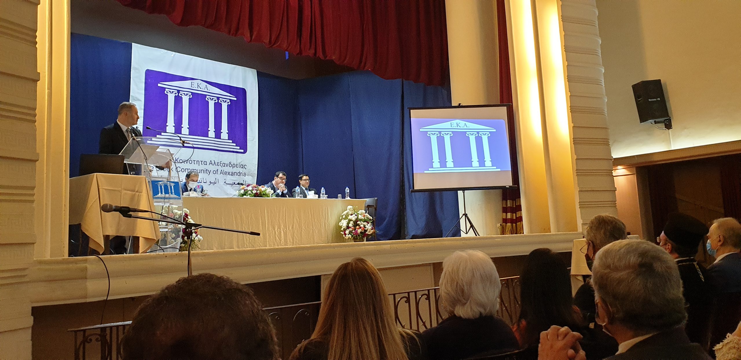Στην ομιλία του, ο Πρόεδρος της ΕΚΑ τόνισε ότι «η Κοινότητά μας είναι ένας ζωντανός και δυναμικός οργανισμός. Η δύναμή μας είναι τα μέλη μας, το ανθρώπινο δυναμικό της Αλεξανδρινής παροικίας μας, των συμπαροίκων μας που συνέδεσαν την φυσική τους παρουσία με την ιστορική διαδρομή και πορεία του Ελληνισμού στην Αίγυπτο, μιας πορείας που δεν έχει αναφορές μόνο στο παρελθόν, αλλά που παλεύει σήμερα και μάχεται σε ενεστώτα χρόνο, εδώ και τώρα με το βλέμμα στο μέλλον».