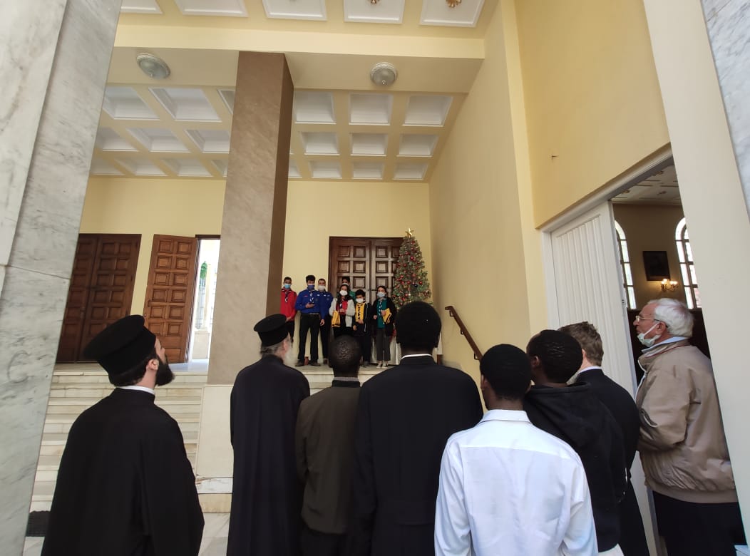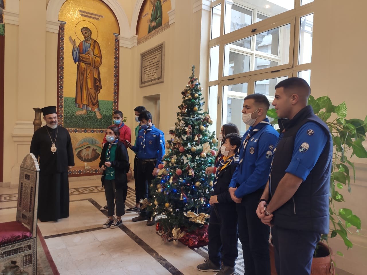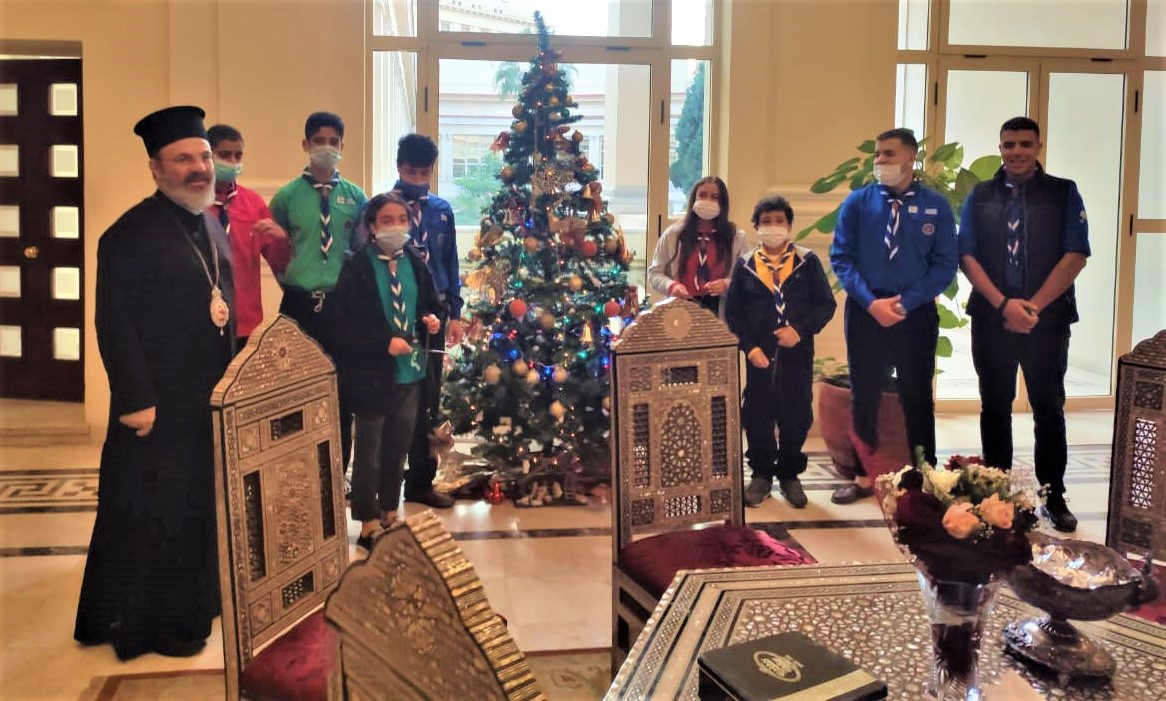 Στη συνέχεια, οι Έλληνες Πρόσκοποι της Αλεξάνδρειας έψαλλαν τα κάλαντα στο Πατριαρχείο Αλεξανδρείας, όπου τους υποδέχτηκε θερμά ο Πατριαρχικός Επίτροπος Μητροπολίτης Ναυκράτιδος κ. Νάρκισσος.
