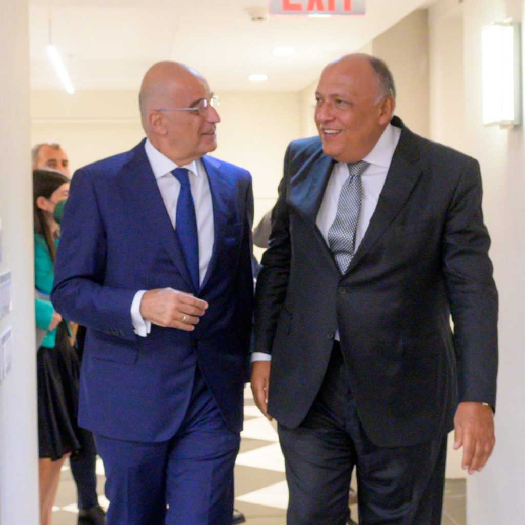 Στην κυριολεξία μπαράζ επαφών είχε στις 20 Σεπτεμβρίου, ο υπουργός Εξωτερικών Νίκος Δένδιας στη Νέα Υόρκη, στο περιθώριο της 77ης Γενικής Συνέλευσης του ΟΗΕ. Σ αυτές τις συναντήσεις επιβεβαιώθηκαν για μια ακόμη φορά οι  στρατηγικές σχέσεις μεταξύ της Ελλάδας και της Αιγύπτου, μετά τις επαφές του υπουργού Εξωτερικών Νίκου Δένδια με τον Αιγύπτιο ομόλογό του Σάμεχ Σούκρι.