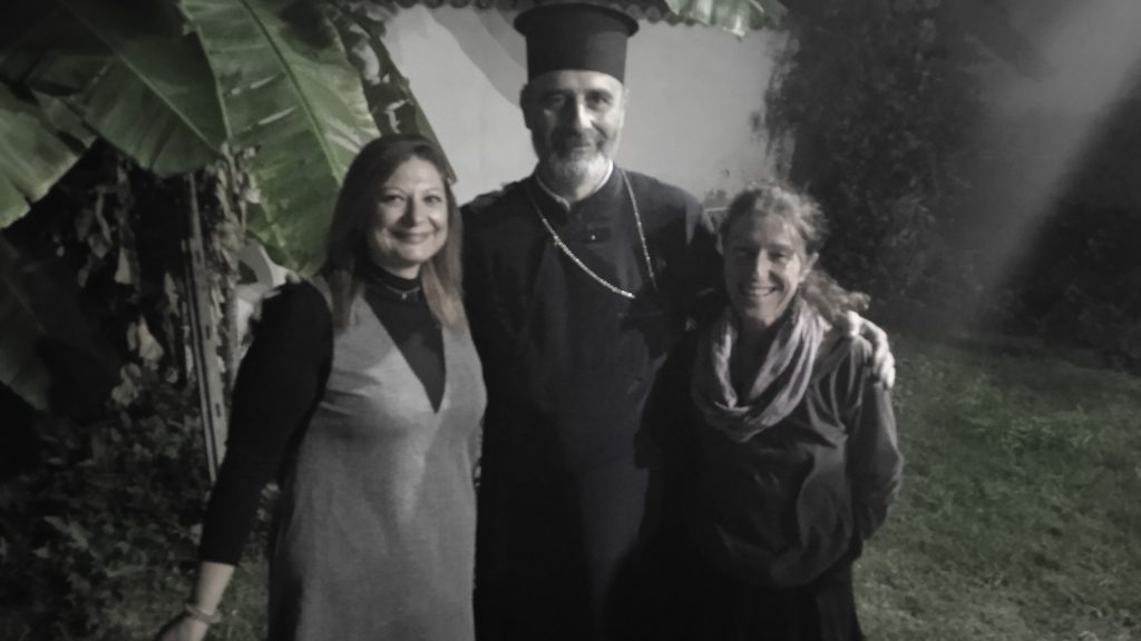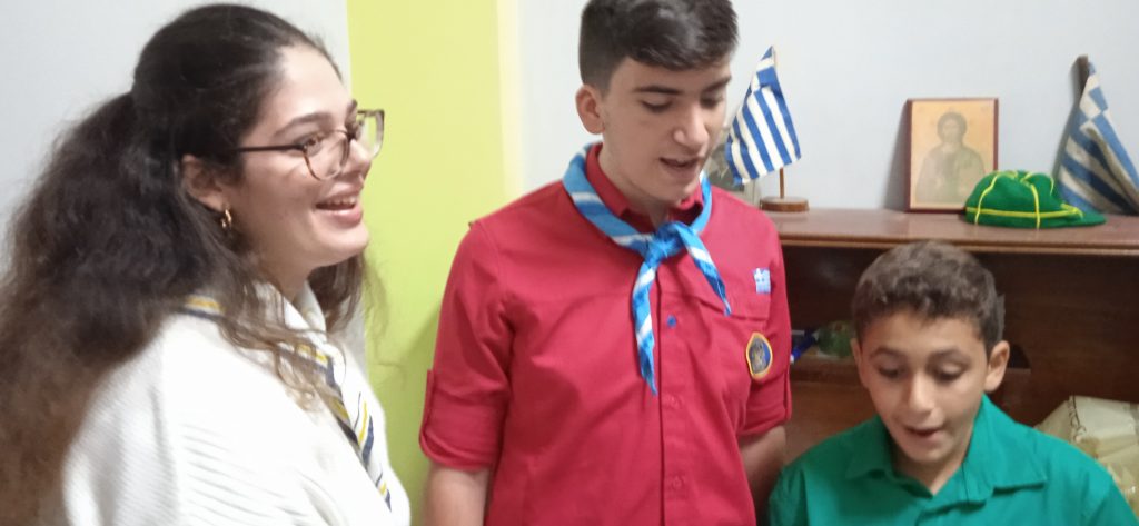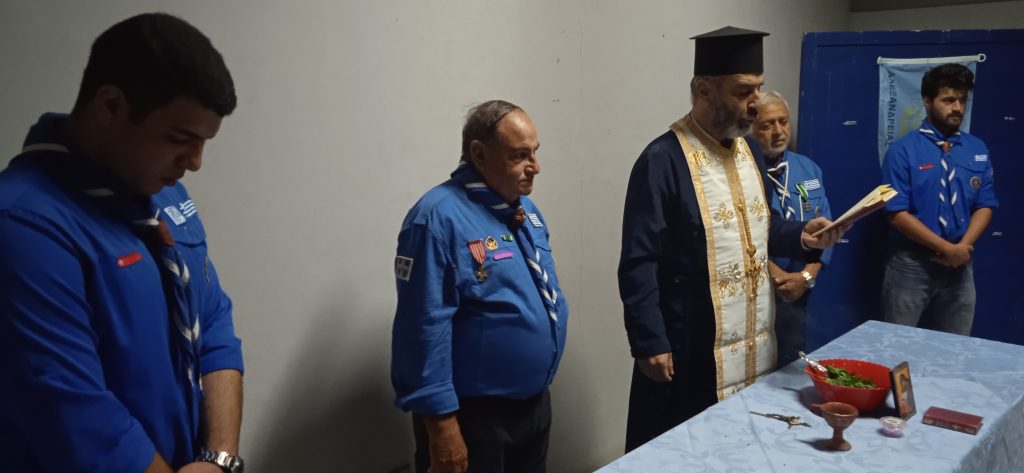 Ο Πρωτοπρεσβύτερος Πατήρ Πάνος Γαζής που ιερουργεί στην Αλεξάνδρεια, με την καθάρια και δυνατή φωνή του ευλογεί την έναρξη και ραντίζει με αγιόνερο σώματα και ψυχές, για να είναι η χρονιά επιτυχημένη. Οι φίλοι του Προσκοπισμού προσεύχονται μαζί του. Οι παλιές «καραβάνες» ο Έφορος Διοίκησης των Προσκόπων κ. Άρης Μαρκοζάνης και ο Αρχηγός κ. Τζόνι Μύρος, μαζί με τους νεότερους Γιώργο και Φίλιππο, πλαισιώνουν τον αγαπητό ιερέα με πρόσωπα ικανοποίησης για την επιτυχημένη συγκέντρωση.