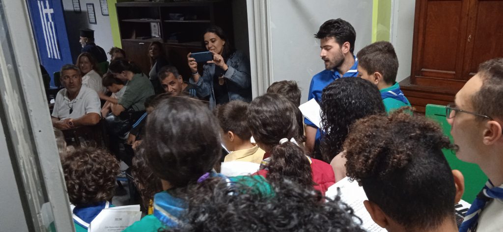 Κάποια στιγμή ο κ. Άρης Μαρκοζάνης παίρνει το λόγο και ευχαριστεί τους θεσμούς και τους φορείς που στηρίζουν τους Προσκόπους. Ευχαριστεί την ΕΚΑ, τον ΕΝΟΑ, μα κυρίως ευχαριστεί τον «μουσουργό» του αλεξανδρινού προσκοπισμού τον απανταχού παρών Ριάντ Γιούσεφ, που στο άκουσμα του ονόματός του, το χειροκρότημα ισχυρότατο, αποδίδει τα εύσημα όλων για την ανιδιοτελή προσφορά του. Αίφνης δίνεται το σύνθημα και η προσκοπική χορωδία δίνει το δικό της ρεσιτάλ, καθώς τα παιδιά με τις γλυκές νότες της εφηβείας, ενδυναμώνουν των ενηλίκων τις μνήμες από αλλοτινές δικές τους εποχές. Η ομορφιά σε όλο της το μεγαλείο!