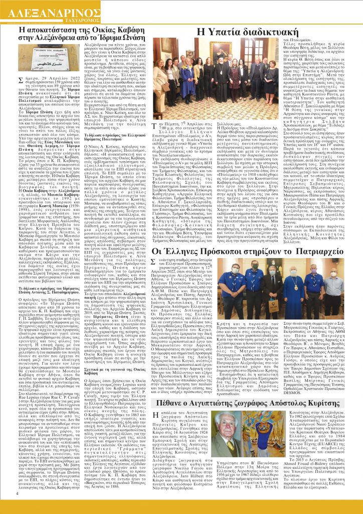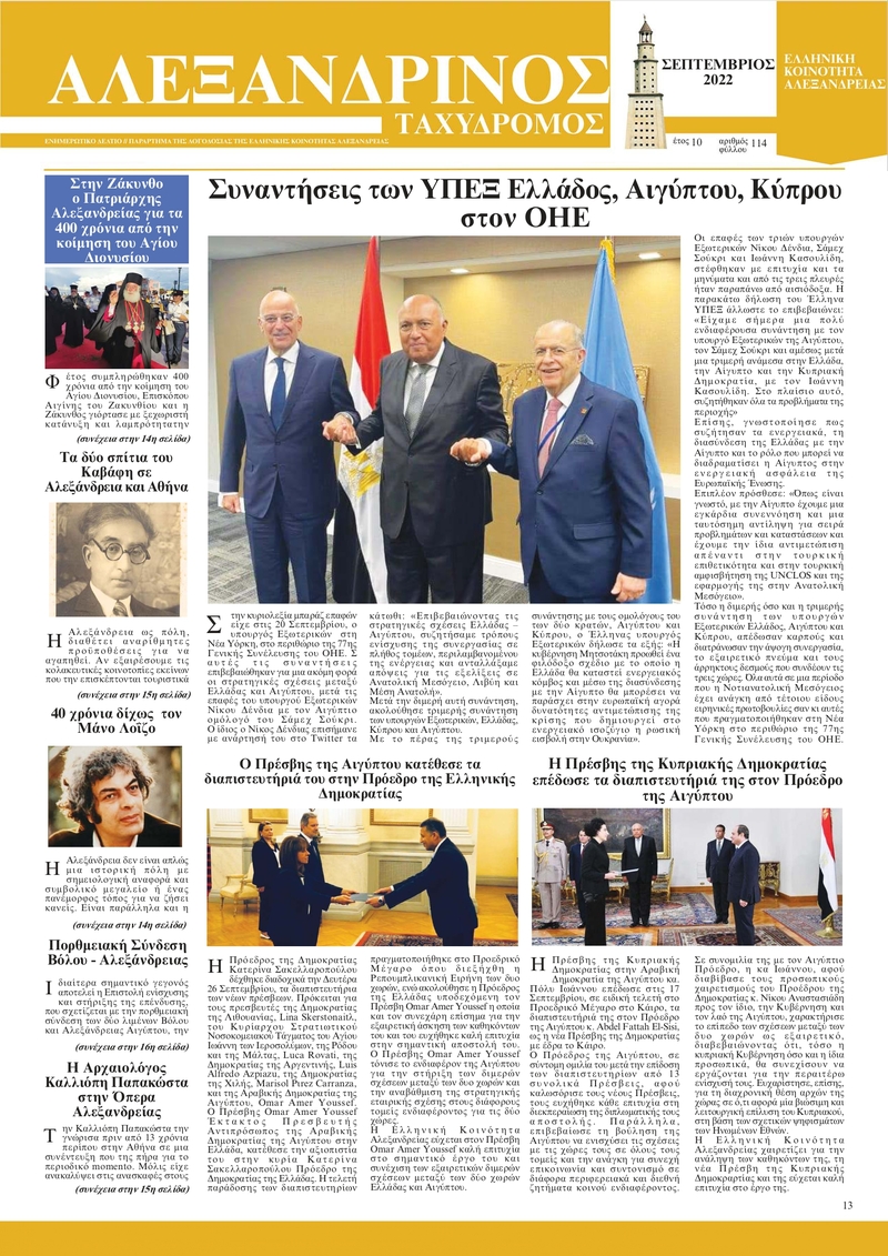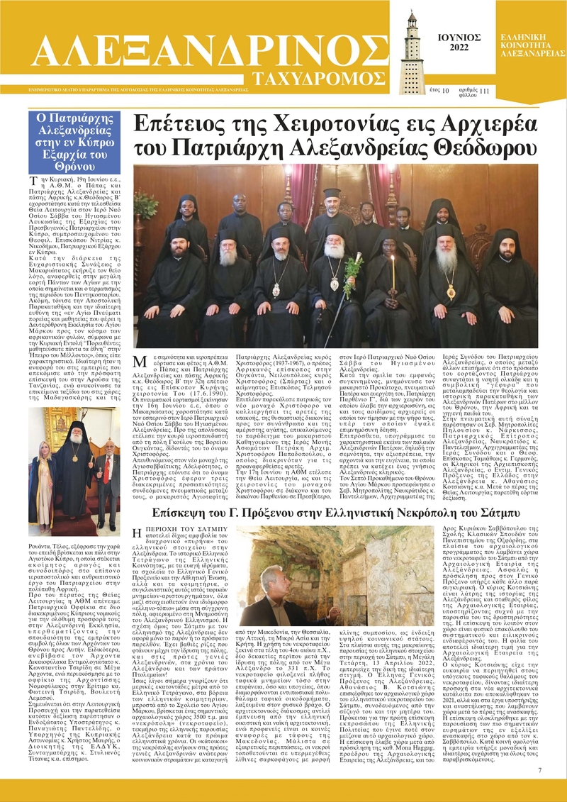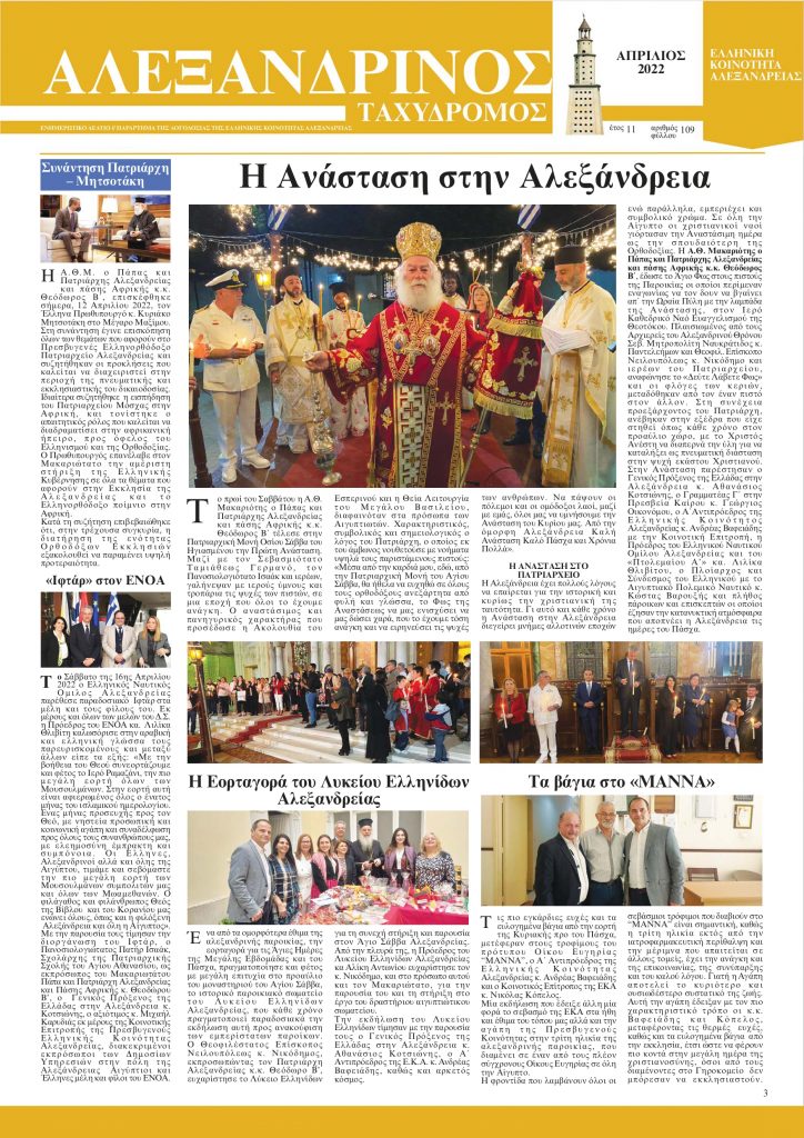 [Η εφημερίδα “Αλεξανδρινός Ταχυδρόμος” κυκλοφόρησε με επτά μήνες καθυστέρηση, εξαιτίας της τραγικής απώλειας του αρχισυντάκτη Νικόλαου Κάτσικα. Φροντίσαμε να δημιουργηθεί ένα έντυπο συμπεριλαμβανομένων των -7- τευχών, έτσι ώστε οι αναγνώστες να μπορούν να δουν καταγεγραμμένα τα σημαντικότερα γεγονότα ανά μήνα]