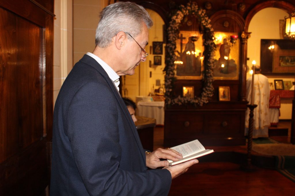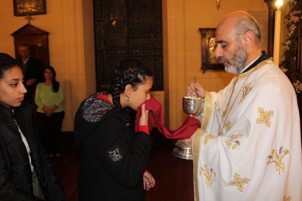 Στο Παρεκκλήσι τη Θεία Λειτουργία τέλεσε ο αγαπητός σε όλους Πρωτοπρεσβύτερος Πάνος Γαζής ο οποίος συνάμα είναι και δάσκαλος του Δημοτικού Σχολείου, ενώ έψαλλε ο Στράτος Γαζής, μαθητής Έκτης Τάξης. Στη Θεία Λειτουργία παρευρέθηκαν ο Γενικός Πρόξενος κ. Αθανάσιος Κοτσιώνης, μετά της συζύγου του Ιωάννας και όλοι οι εκπαιδευτικοί προεξαρχόντων των Διευθυντών τους κας. Πασχαλίνας Αγαπιάδου και κ. Κωνσταντίνου Ρήγα. Στο τέλος οι μαθητές κοινώνησαν και όλοι πήραν το αντίδωρο απ’ τα χέρια του Πατρός Πάνου.
