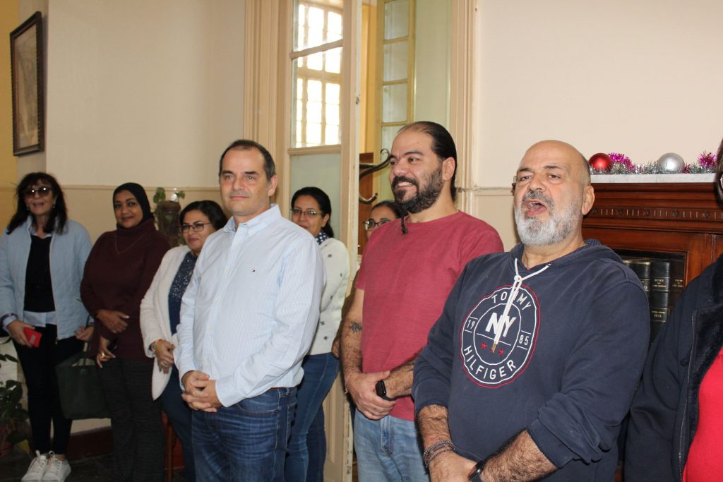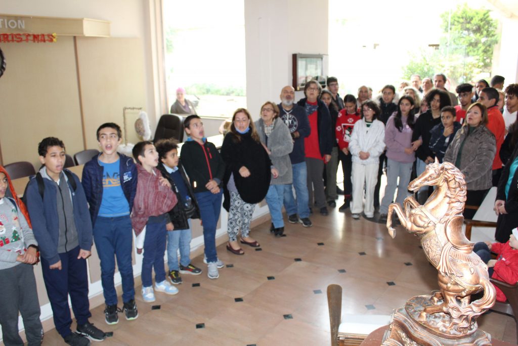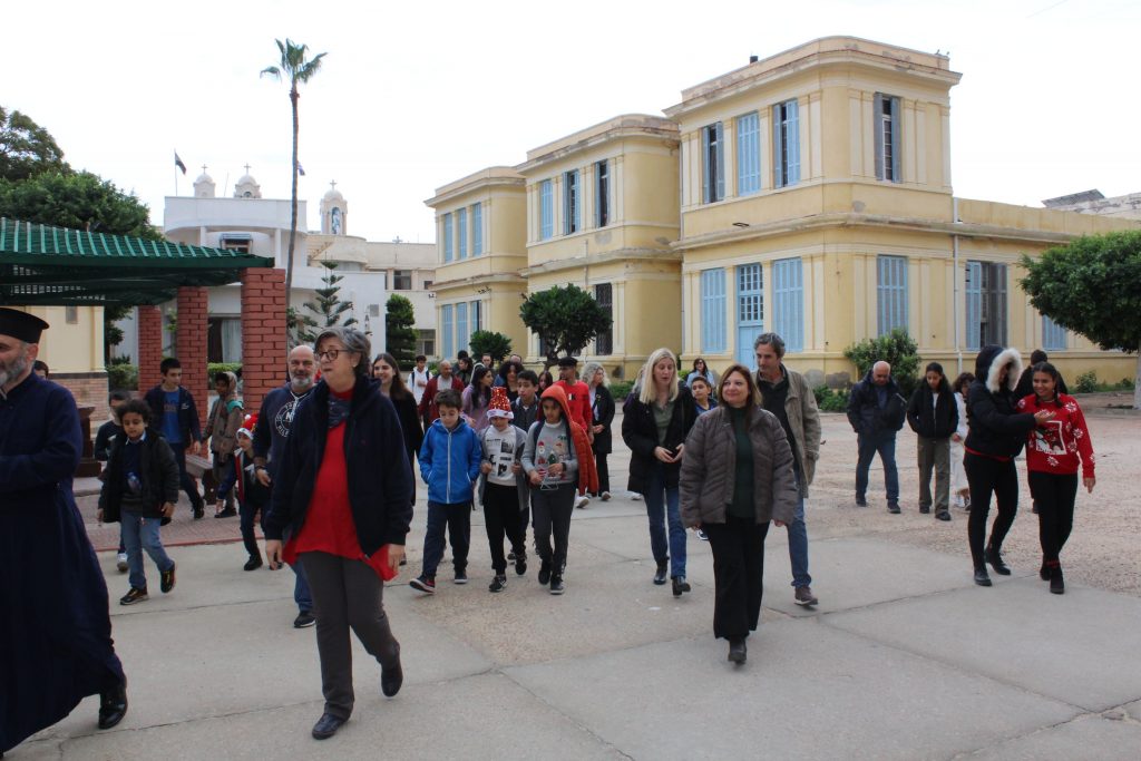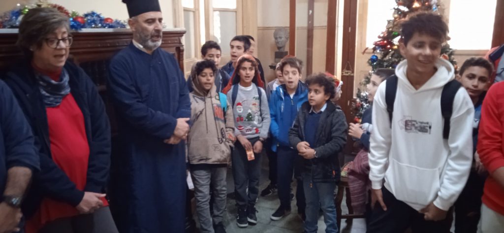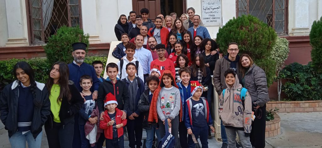Πριν τις διακοπές τους όμως, είχαν μια υποχρέωση εντός των χώρων της Ελληνικής Κοινότητας Αλεξανδρείας, στην οποία ανταπεξήλθαν με ιδιαίτερη προθυμία και μεράκι. Και αυτή ήταν να εκκλησιαστούν στο Παρεκκλήσιο της Αγίας Αικατερίνης, να επισκεφτούν το Γηροκομείο ΜΑΝΝΑ για να τραγουδήσουν τα κάλαντα στους σεβάσμιους τροφίμους του, στη συνέχεια να πράξουν το ίδιο στα Μαγειρεία, όπου εκεί εργάζονται οι άνθρωποι που ετοιμάζουν καθημερινά τα γεύματα για όσους σιτίζονται στην ΕΚΑ, ακολούθως να περάσουν από το Προξενείο, για να ευχηθούν χρόνια πολλά και να πουν άλλη μια φορά τα κάλαντά τους στον Γενικό Πρόξενο και το προσωπικό του Γενικού Προξενείου, μέχρι να καταλήξουν στα Γραφεία της Ελληνικής Κοινότητας Αλεξανδρείας για να ολοκληρώσουν την χριστουγεννιάτικη «περατζάδα» τους με ομορφιά, χάρη!