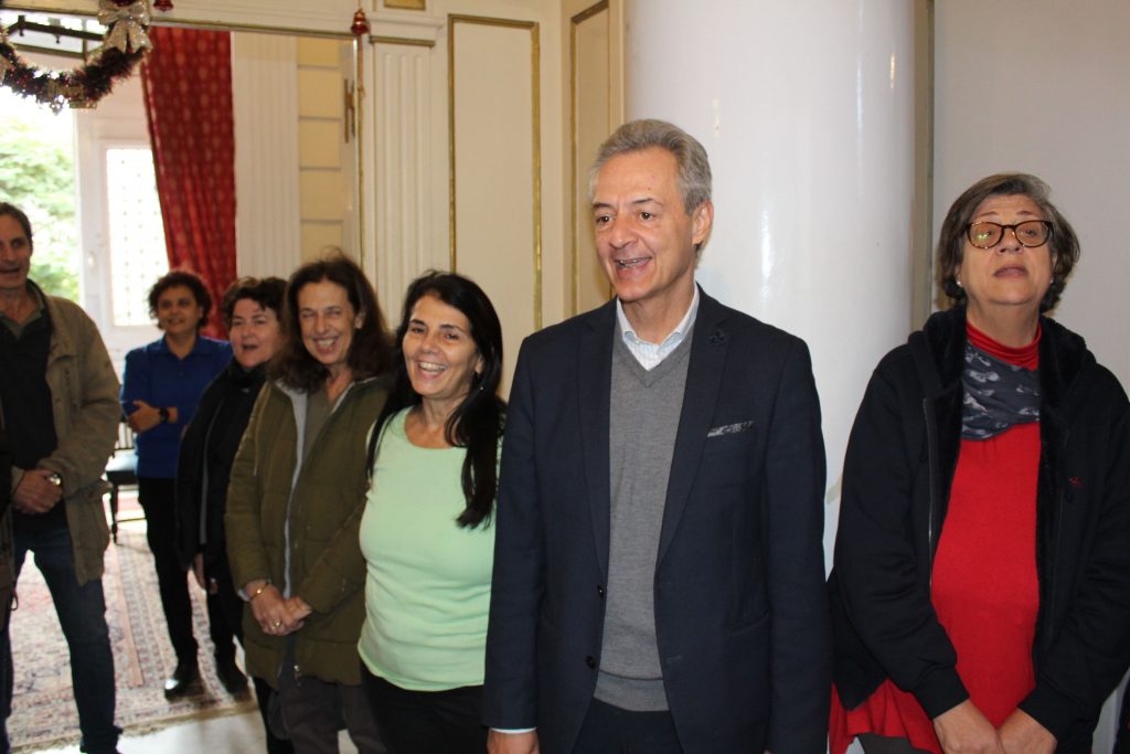 Εκεί ο Γενικός Πρόξενος κ. Αθανάσιος Κοτσιώνης άκουσε τους μαθητές των Σχολείων να τραγουδούν τα χριστουγεννιάτικα άσματά τους, απολαμβάνοντας με όλο το προσωπικό του Προξενείου τους καλλικέλαδους μαθητές των Σχολείων Πρατσίκειου – Τοσιτσαίου και Αβερώφειου της ΕΚΑ. Ο κ. Γενικός αντευχήθηκε σε όλους χρόνια πολλά με υγεία, μάθηση, επιτυχίες και καλή χρονιά! Η κα. Ιωάννα Κοτσιώνη προσέφερε κεράσματα στους μαθητές και η όμορφη ατμόσφαιρα έκλεισε με την εθιμοτυπική φωτογραφία στα σκαλιά του Προξενείου.