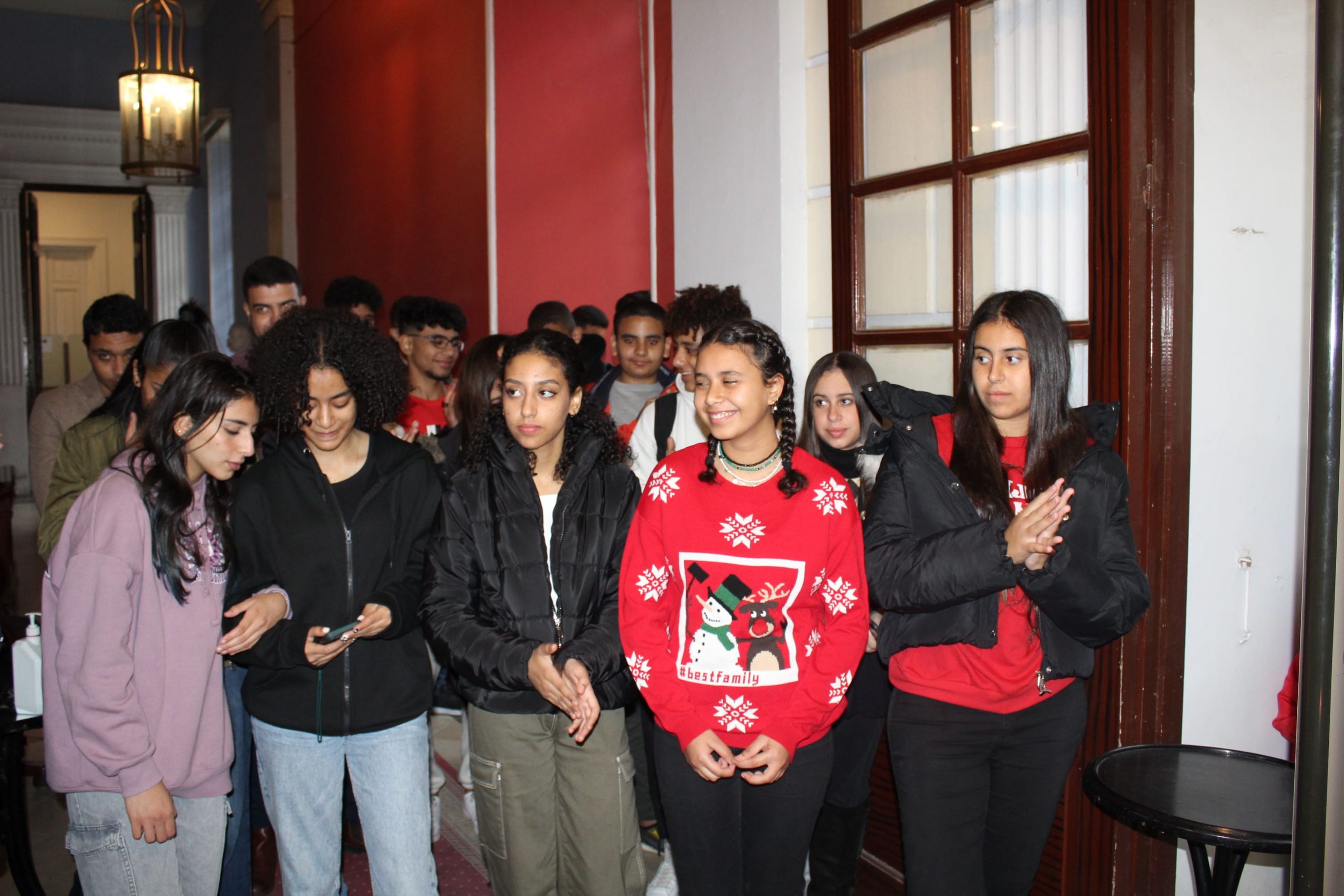 Πριν τις διακοπές τους όμως, είχαν μια υποχρέωση εντός των χώρων της Ελληνικής Κοινότητας Αλεξανδρείας, στην οποία ανταπεξήλθαν με ιδιαίτερη προθυμία και μεράκι. Και αυτή ήταν να εκκλησιαστούν στο Παρεκκλήσιο της Αγίας Αικατερίνης, να επισκεφτούν το Γηροκομείο ΜΑΝΝΑ για να τραγουδήσουν τα κάλαντα στους σεβάσμιους τροφίμους του, στη συνέχεια να πράξουν το ίδιο στα Μαγειρεία, όπου εκεί εργάζονται οι άνθρωποι που ετοιμάζουν καθημερινά τα γεύματα για όσους σιτίζονται στην ΕΚΑ, ακολούθως να περάσουν από το Προξενείο, για να ευχηθούν χρόνια πολλά και να πουν άλλη μια φορά τα κάλαντά τους στον Γενικό Πρόξενο και το προσωπικό του Γενικού Προξενείου, μέχρι να καταλήξουν στα Γραφεία της Ελληνικής Κοινότητας Αλεξανδρείας για να ολοκληρώσουν την χριστουγεννιάτικη «περατζάδα» τους με ομορφιά, χάρη!