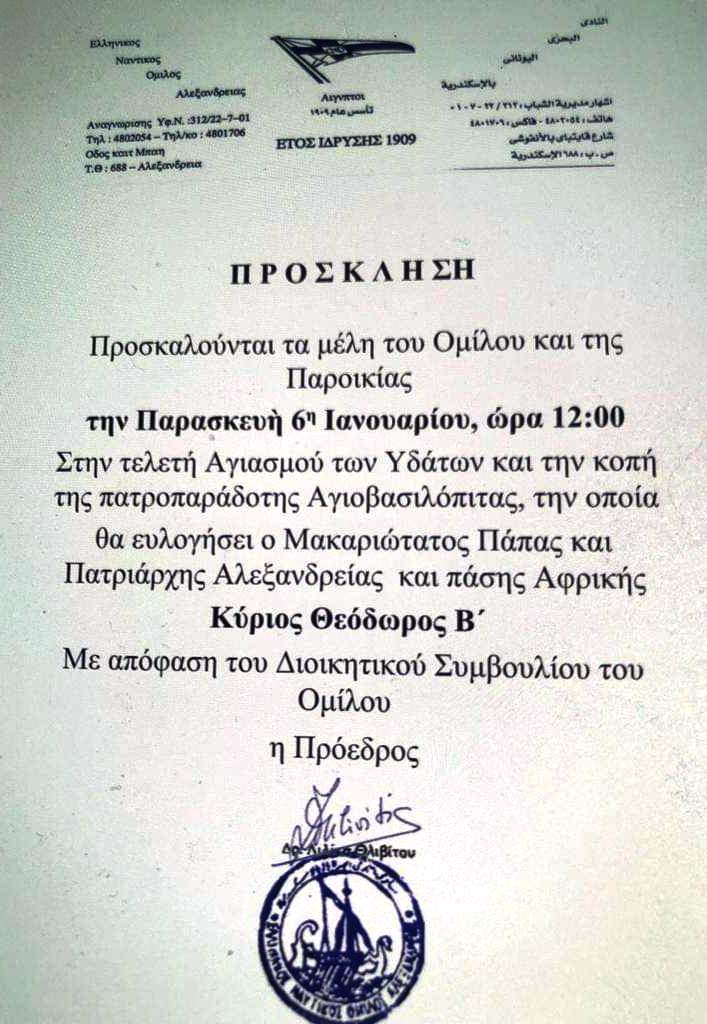 θα ευλογήσει ο Μακαριώτατος Πάπας και Πατριάρχης Αλεξανδρείας και πάσης Αφρικής
