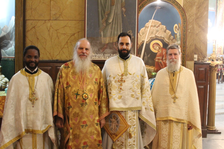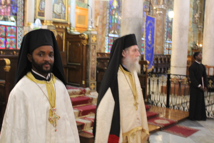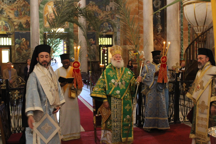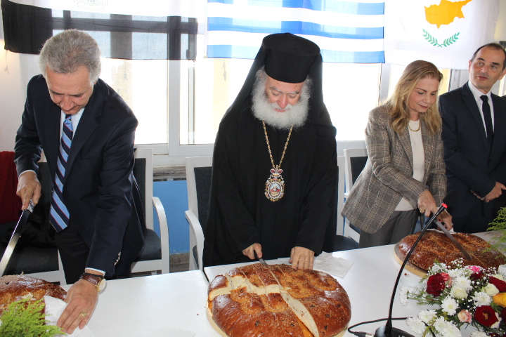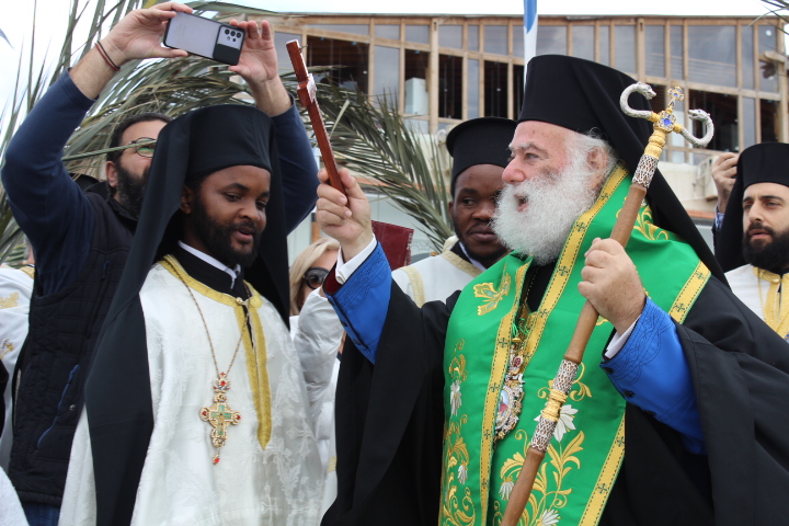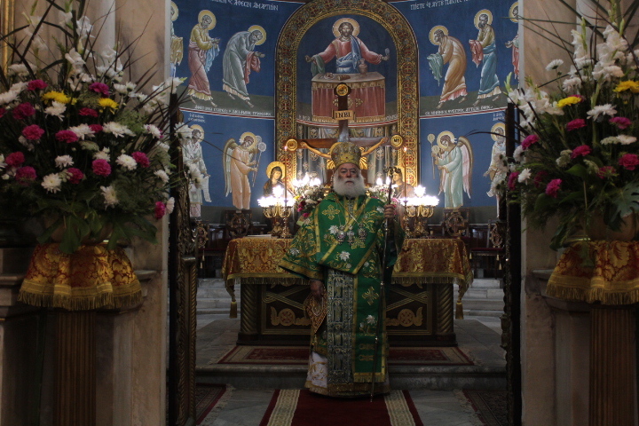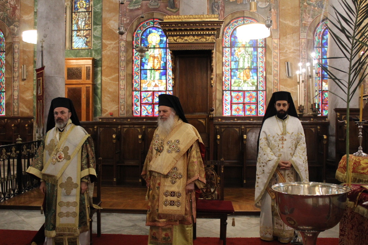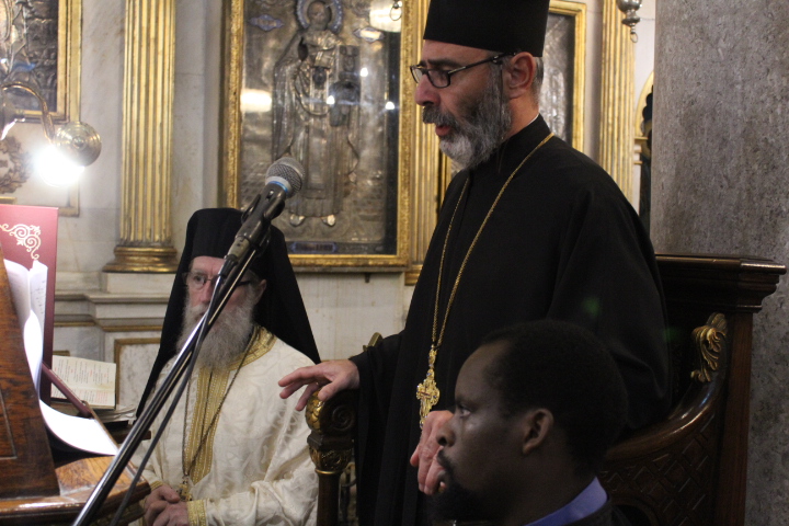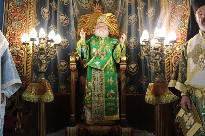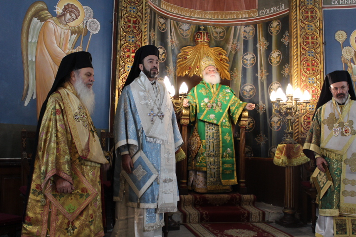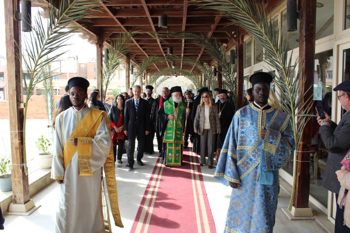 Στο πλευρό του Μακαριωτάτου, ο Σεβασμιότατος Ναυκράτιδος και Αρχιγραμματέας της Ιεράς Συνόδου κ. Παντελεήμων, ο Σεβασμιότατος Πηλουσίου και Πατριαρχικός Επίτροπος κ. Νάρκισσος, ο Σεβασμιότατος Ταμιάθεως κ. Γερμανός, ο Πανοσιολογιότατος Αρχιμανδρίτης και Σχολάρχης της Ιερατικής Σχολής κ. Ισαάκ, ο Πανοσιολογιότατος Αρχιμανδρίτης κ. Ελπιδοφόρος και οι μαθητές της Σχολής, ενώ έψαλλε ο Πρωτοπρεσβύτερος κ. Πάνος Γαζής.