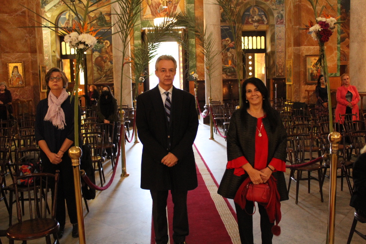 Το παρών έδωσαν ο Γενικός Πρόξενος κ. Αθανάσιος Κοτσιώνης μετά της συζύγου του Ιωάννας, ο Πλοίαρχος και Σύνδεσμος του Πολεμικού Ναυτικού κ. Κωνσταντίνος Βαρουξής μετά της επίσης Πλοιάρχου, συζύγου του Αγγελικής, ο Α΄ Αντιπρόεδρος της Ελληνικής Κοινότητας Αλεξανδρείας κ. Ανδρέας Βαφειάδης, η Πρόεδρος του Ελληνικού Ναυτικού Ομίλου Αλεξανδρείας και του Συλλόγου «Πτολεμαίος» κα. Λιλίκα Θλιβίτου, η Πρόεδρος του Λυκείου Ελληνίδων Αλεξανδρείας κα. Αλίκη Αντωνίου, η Πρόεδρος της Αδελφότητας Κυπρίων Αλεξανδρείας κα. Μαρία Φορμόζη, η Γραμματέας της Αδελφότητας Κυπρίων Αλεξανδρείας κα. Μαίρη Παυλίδου, η Διευθύντρια του Αβερώφειου Σχολείου κα. Πασχαλίνα Αγαπιάδου, η Γραμματέας των εκπαιδευτηρίων της Ελληνικής Κοινότητας κα. Μαίρη Μαυρίκου, και βέβαια μια όμορφη έκπληξη, η αγαπημένη αδελφή του Πατριάρχη κα. Ρούλα Μαχλά η οποία ταξίδεψε από το Ηράκλειο της Κρήτης για να βρεθεί στην Εορτή των Θεοφανείων.