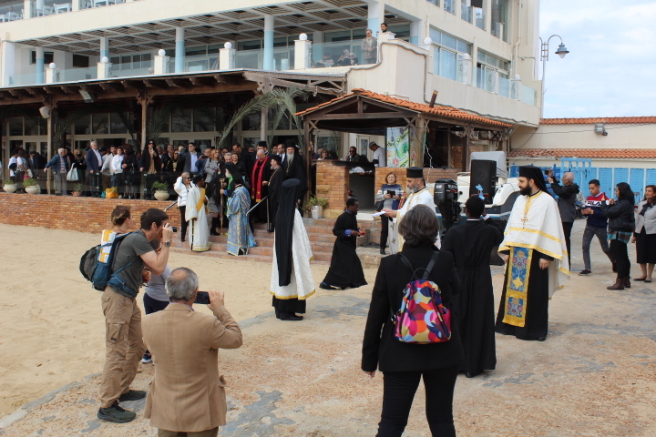 Μετά την Θεία Κοινωνία και το αντίδωρο που έλαβαν οι εκκλησιαζόμενοι Πάροικοι, κατευθύνθηκαν όλοι προς τον Ελληνικό Ναυτικό Όμιλο, για τον Αγιασμό των Υδάτων. Μια παράδοση που κρατά αιώνες στην ιστορική Πόλη της Αλεξάνδρειας.