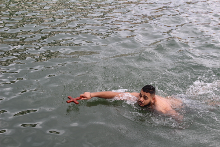 Τι ομορφιά να βλέπεις το πλήθος να τον ακολουθεί χαμογελαστό, αναμένοντας τη στιγμή που θα ρίξει τον Σταυρό στα γαλάζια αλεξανδρινά νερά, καθώς οι αθλητές του Ελληνικού Ναυτικού Ομίλου αναμένουν στη βάρκα να βουτήξουν με το σύνθημα του Μακαριότατου.