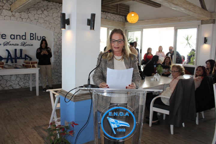 Μετά την τακτοποίηση όλων, η Πρόεδρος του ΕΝΟΑ κα Λιλίκα Θλιβίτου αρχίζει την ομιλία της. Λόγος εμπεριστατωμένος με ουσία και περιεχόμενο. Αναφέρεται στους στόχους του Ομίλου, στη δράση του και τις επιτυχίες των αθλητών του. Τονίζει την ανάγκη της σύσφιξης των σχέσεων μεταξύ των Αιγυπτιωτών και όχι μόνο και επαναλαμβάνει στα αραβικά την ομιλία της.