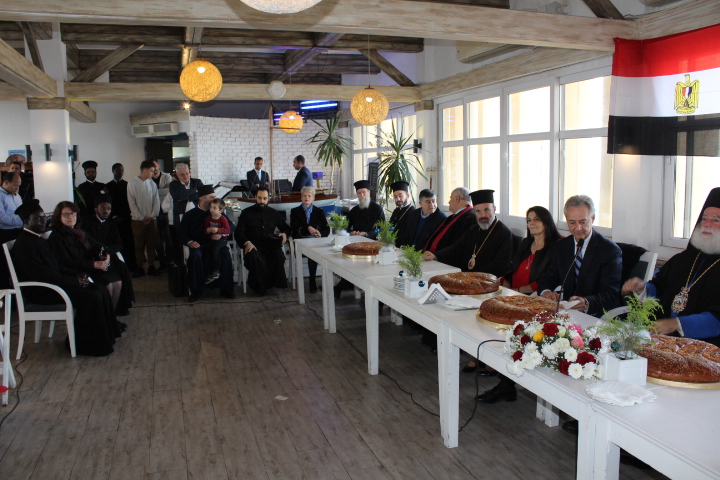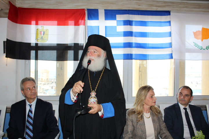 Ο Μακαριότατος δίνει το λόγο στον Πρέσβη – πλέον – κ. Αθανάσιο Κοτσιώνη, ο οποίος αποδίδει το στίγμα της ημέρας και αναφέρεται στην προσφορά της ιερής παράδοσης του Αγιασμού των Υδάτων. Ακολούθως καλεί τον Α΄ Αντιπρόεδρο της Ελληνικής Κοινότητας Αλεξανδρείας κ. Ανδρέα Βαφειάδη που με τη σειρά του κι αυτός, τονίζει την αξία της εορταστικής τελετής και της σημαντικής παρουσίας των Παροίκων στην καθιερωμένη σύναξη του ΕΝΟΑ μετά το τελετουργικό του Σταυρού στα νερά της Αλεξάνδρειας.