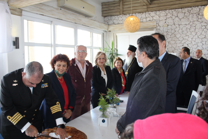 Πέντε Αγιοβασιλόπιτες κόβονται, η πρώτη απ τον Πατριάρχη, η δεύτερη απ’ τον Πρέσβη, η Τρίτη απ΄ την Πρόεδρο του Ναυτικού Ομίλου και οι άλλες δύο από σωματεία. Άπαντες λαμβάνουν το κομμάτι που τους αναλογεί ενώ οι αθλητές του Ομίλου τραγουδούν χτυπώντας τα τριγωνάκια τους, το «Αρχιμηνιά κι αρχιχρονιά».