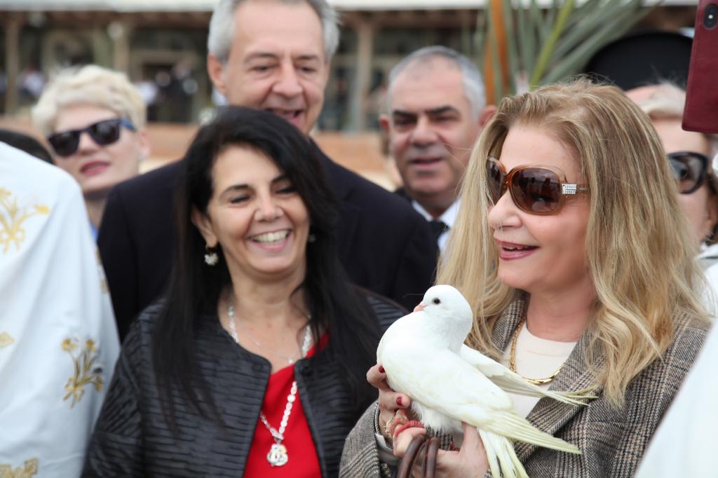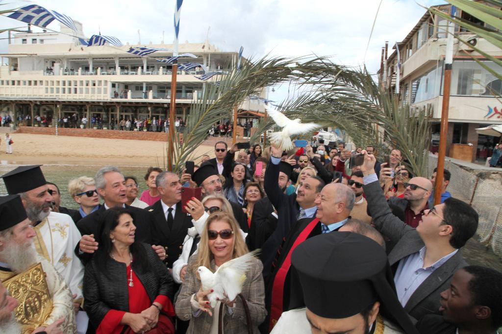 Και η πολυπόθητη κίνηση του Πατριάρχη πραγματώνεται. Τα νέα παιδιά κολυμπούν με την φλογερή επιθυμία να πιάσουν τον Σταυρό. Ο Μάξιμος πρώτος τον βρίσκει και με απλωτές φτάνει στον Ιεράρχη της Χριστιανοσύνης και τον δίνει στα χέρια του. Μα αυτός επαναλαμβάνει το σκηνικό. Τώρα ο Φίλιππος έρχεται πρώτος και ο Θεόδωρος Β΄ τον ξαναρίχνει στη θάλασσα. Αυτή τη φορά η Μαρία των μεταλλίων του παραδίδει το σύμβολο του χριστιανισμού. Όμως η τελετή του Αγιασμού των Υδάτων δεν έχει ολοκληρωθεί. Το περιστέρι απελευθερώνεται απ΄ τα χέρια του Πατριάρχη και η ομορφιά απλώνεται στην Αλεξάνδρεια. Η Πρόεδρος του ΕΝΟΑ πετά το δεύτερο περιστέρι. Άλλα δύο φεύγουν απ΄ τα χέρια των Παροίκων και σημειολογικά το Άγιο Πνεύμα ερμηνεύεται απ’ το ειρηνικό χρώμα της λευκότητας.