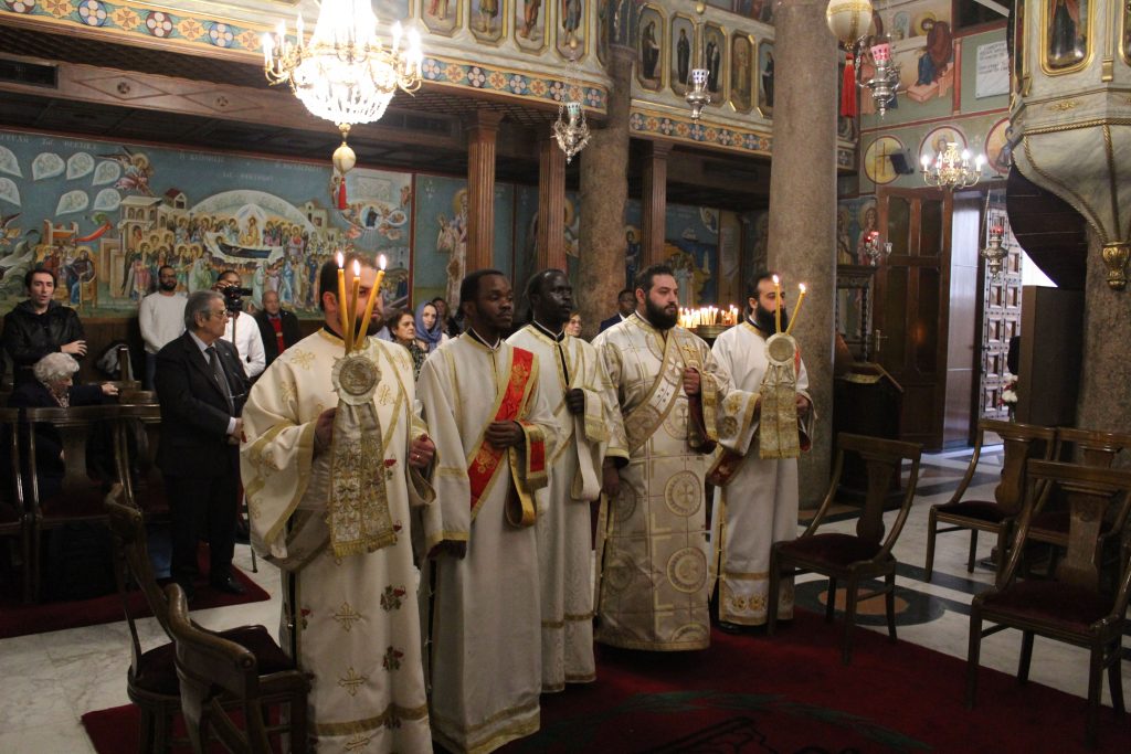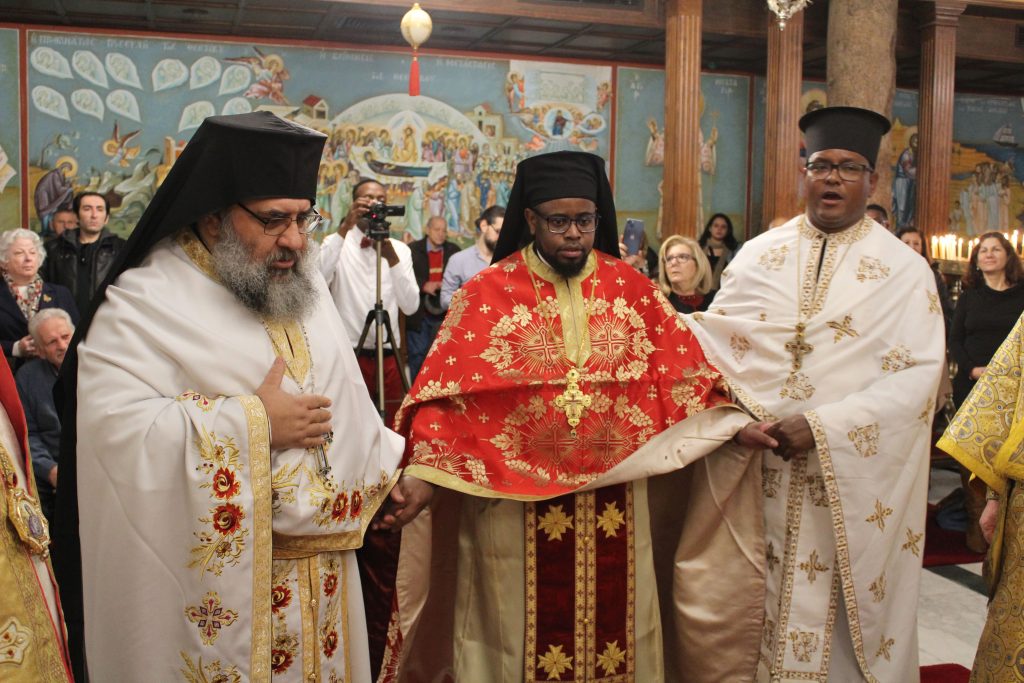 Πολλοί οι παρόντες και συμπροσευχόμενοι: Απ τους Συνοδικούς Αρχιερείς, ο Σεβασμιότατος Μητροπολίτης Ναυκράτιδος κ. Παντελεήμων, Αρχιγραμματέας της Ιεράς Συνόδου Πατριαρχείου Αλεξανδρείας, ο Σεβασμιότατος Μητροπολίτης Πηλουσίου κ. Νάρκισσος και Πατριαρχικός Επίτροπος, ο Σεβασμιότατος Μητροπολίτης Ταμιάθεως κ. Γερμανός, Προϊστάμενος της προειρημένης Ιεράς Μονής, ο Σεβασμιότατος Μητροπολίτης Ταμασσού και Ορεινής κ. Ησαΐας εκ Κύπρου, ο Θεοφιλέστατος Επαρχιούχος Επίσκοπος Ελντορέτ κ. Νεοφύτου και άλλοι ιερείς της Πατριαρχικής Αυλής και της Πατριαρχικής Σχολής. Έψαλαν ο Πρωτοπρεσβύτερος κ. Πάνος Γαζής, μαζί με τον Σχολάρχη και Αρχιμανδρίτη κ. Ισαάκ και μαθητές της ιερατικής Σχολής, αγγίζοντας με την καθάρια και υποβλητική φωνή τους, τις καρδιές των πιστών, συνεισφέροντας έτσι τα μέγιστα στην Θεία Λειτουργία και την Χειροτονία. Τον Πανιερώτατο συνόδευαν εκ μέρους της Βασιλικής και Σταυροπηγιακής Μονής Κύκκου, ο Έφορος της Μονής, Πανοσιολογιώτατος Αρχιμανδρίτης Αγαθόνικος Κυκκώτης, ο Πρωτοδιάκονος της Μητροπόλεως Κύκκου, π. Ιάκωβος Αλαγιούπ, ο Αρχιδιάκονος της Μητροπόλεως Ταμασού και Ορεινής, π. Ραφαήλ Μισιαούλης, ο Ιεροδιάκονος Βλάσιος, και μικρή ομάδα προσκυνητών.