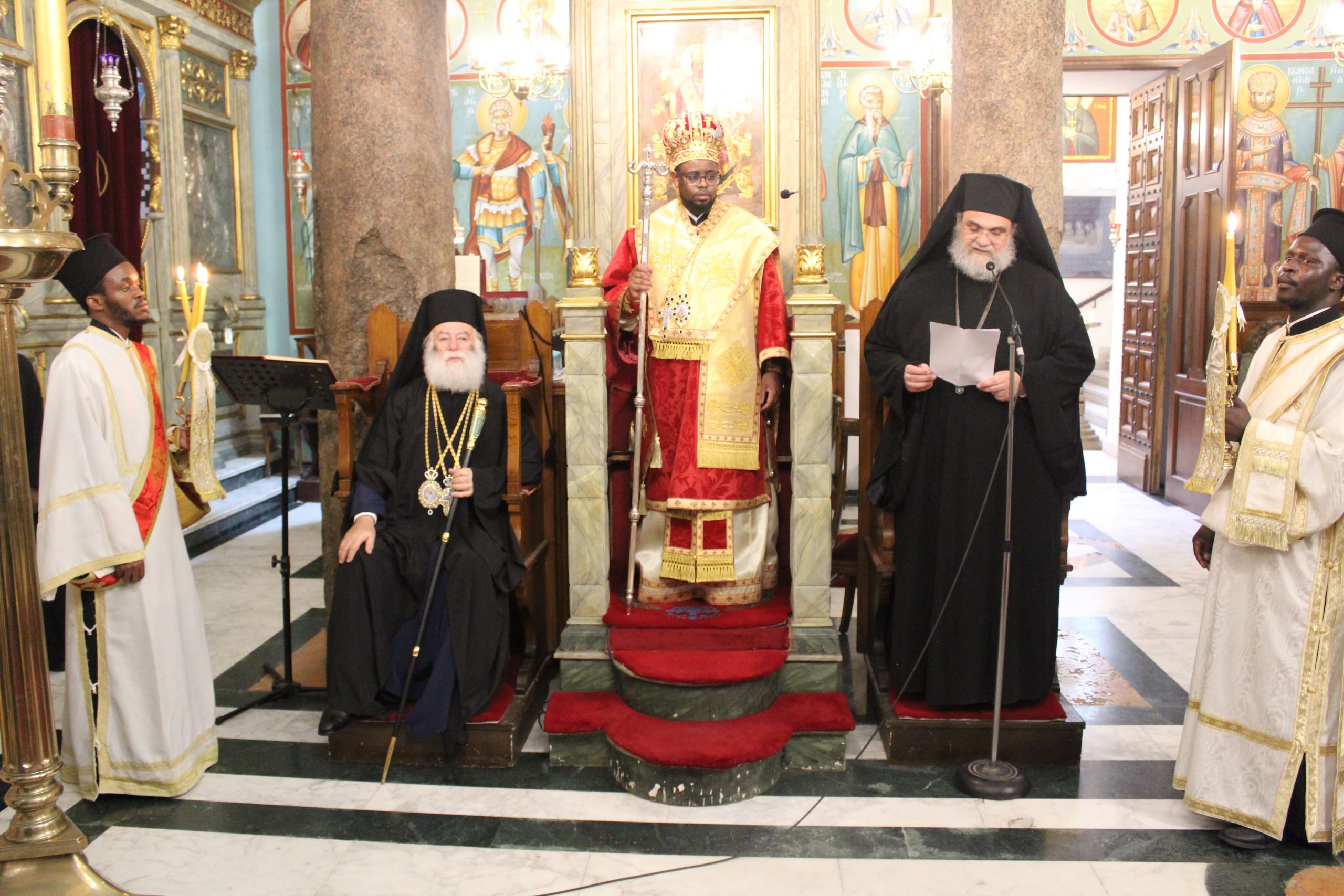 Με την απόλυτη επισημότητα και το πλήρες τελετουργικό που απαιτεί η ιερά παράδοση της Ορθόδοξης Εκκλησίας, ο Πάπας και Πατριάρχης Αλεξανδρείας και πάσης Αφρικής Θεόδωρος χοροστάτησε στην Κυριακάτικη Θεία Λειτουργία και στην τέλεση της ιερατικής αναβάθμισης, του χειροτονηθέντος Αρχιμανδρίτη Πανάρετου. Κατάνυξη, αισιοδοξία, ικανοποίηση, γαλήνη και ανάταση του ψυχισμού, τα συναισθήματα που υποδαύλιζε το πράο και καθαρό βλέμμα του Αρχιμανδρίτη κ. Πανάρετου.