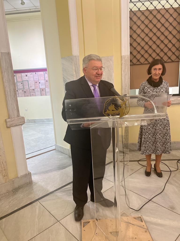 Ο Γενικός Γραμματέας Αποδήμου Ελληνισμού και Δημόσιας Διπλωματίας του Υπουργείου Εξωτερικών, Ιωάννης Χρυσουλάκης απηύθυνε χαιρετισμό στην εκδήλωση για την παρουσίαση του βιβλίου «Σμύρνη, Σεπτέμβρης ’22, Τόκεϊ Μαρού – Μύθος ή Πραγματικότητα;» του Κώστα Νίγδελη, η οποία διοργανώθηκε από την Πανελλήνια Ένωση Καππαδοκικών Σωματείων στη Δημοτική Πινακοθήκη Πειραιά. Η εκδήλωση είχε ως στόχο να τιμηθεί η αμιγώς ανθρωπιστική πράξη του πληρώματος του ιαπωνικού πλοίου στο λιμάνι της Σμύρνης το 1922, που επέλεξε να διασώσει από βέβαιο θάνατο κατατρεγμένους ανθρώπους, προτάσσοντας την ανθρώπινη ζωή έναντι του πολύτιμου φορτίου του. Η Γενική Γραμματεία Απόδημου Ελληνισμού και Δημόσιας Διπλωματίας στήριξε την έκδοση του βιβλίου, το οποίο προλογίζει ο Γενικός Γραμματέας και έθεσε την εκδήλωση υπό την αιγίδα της.